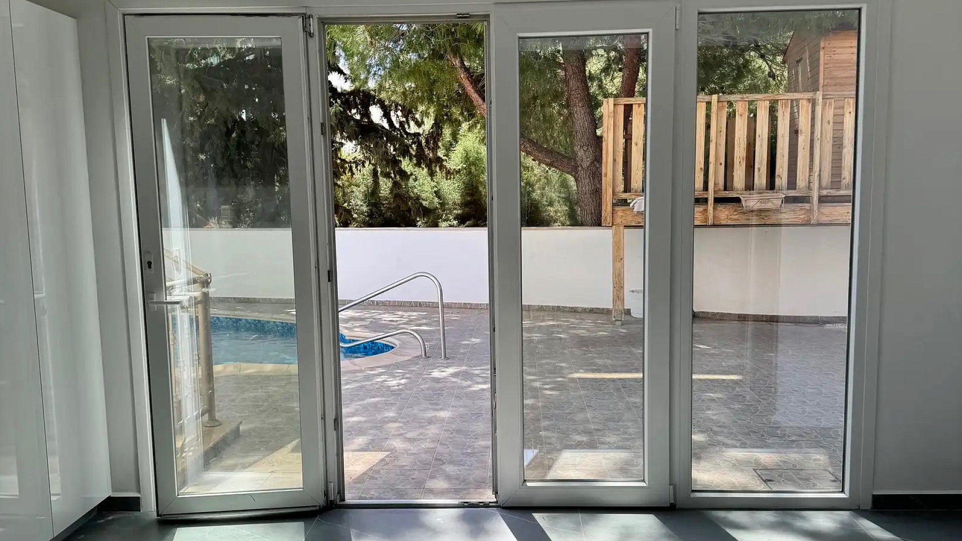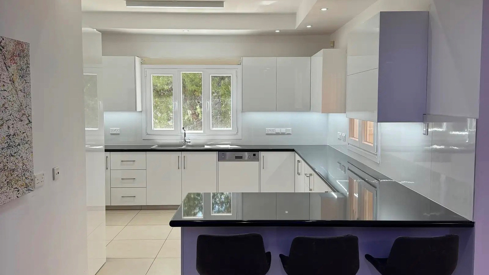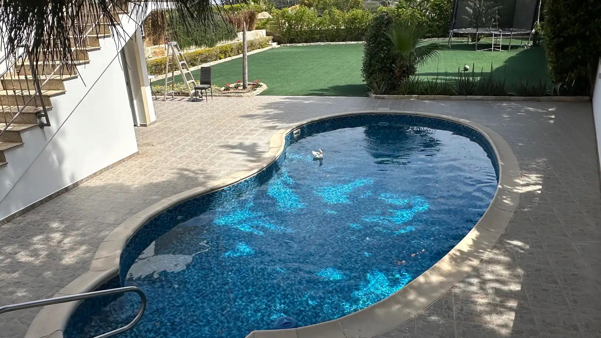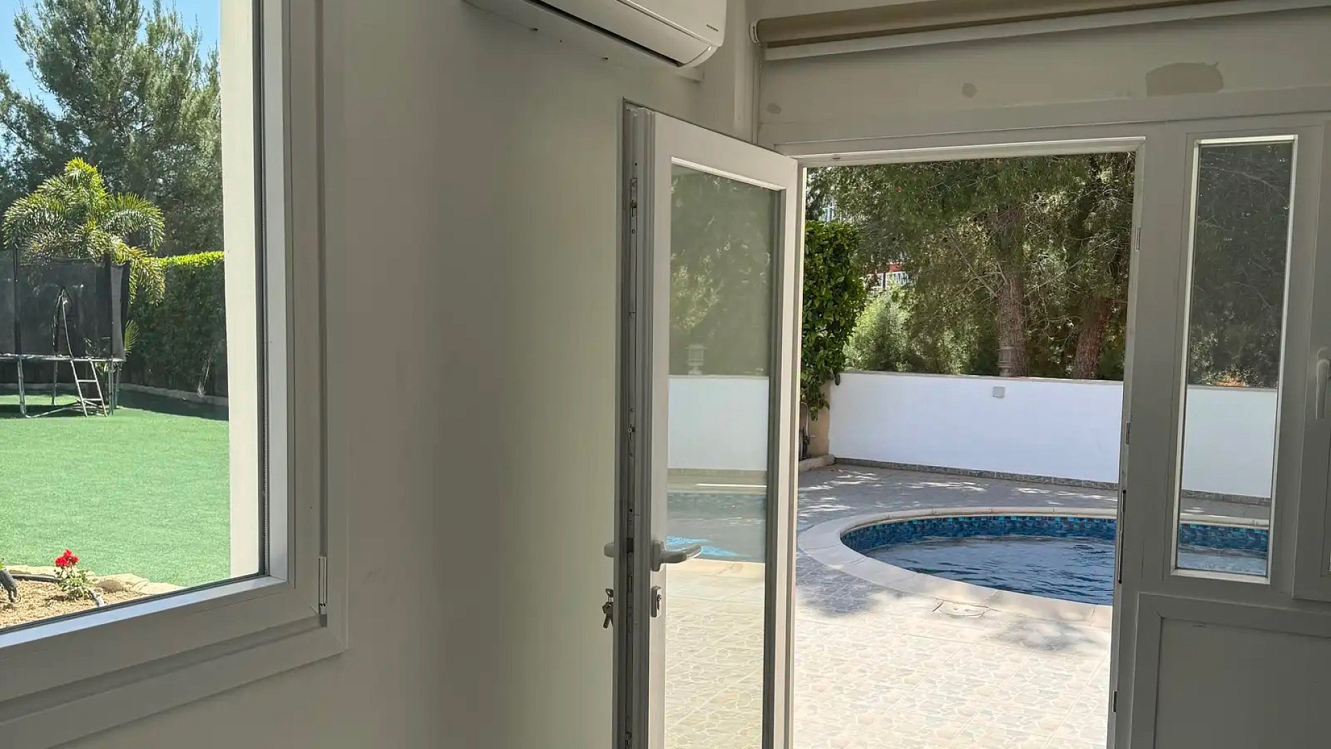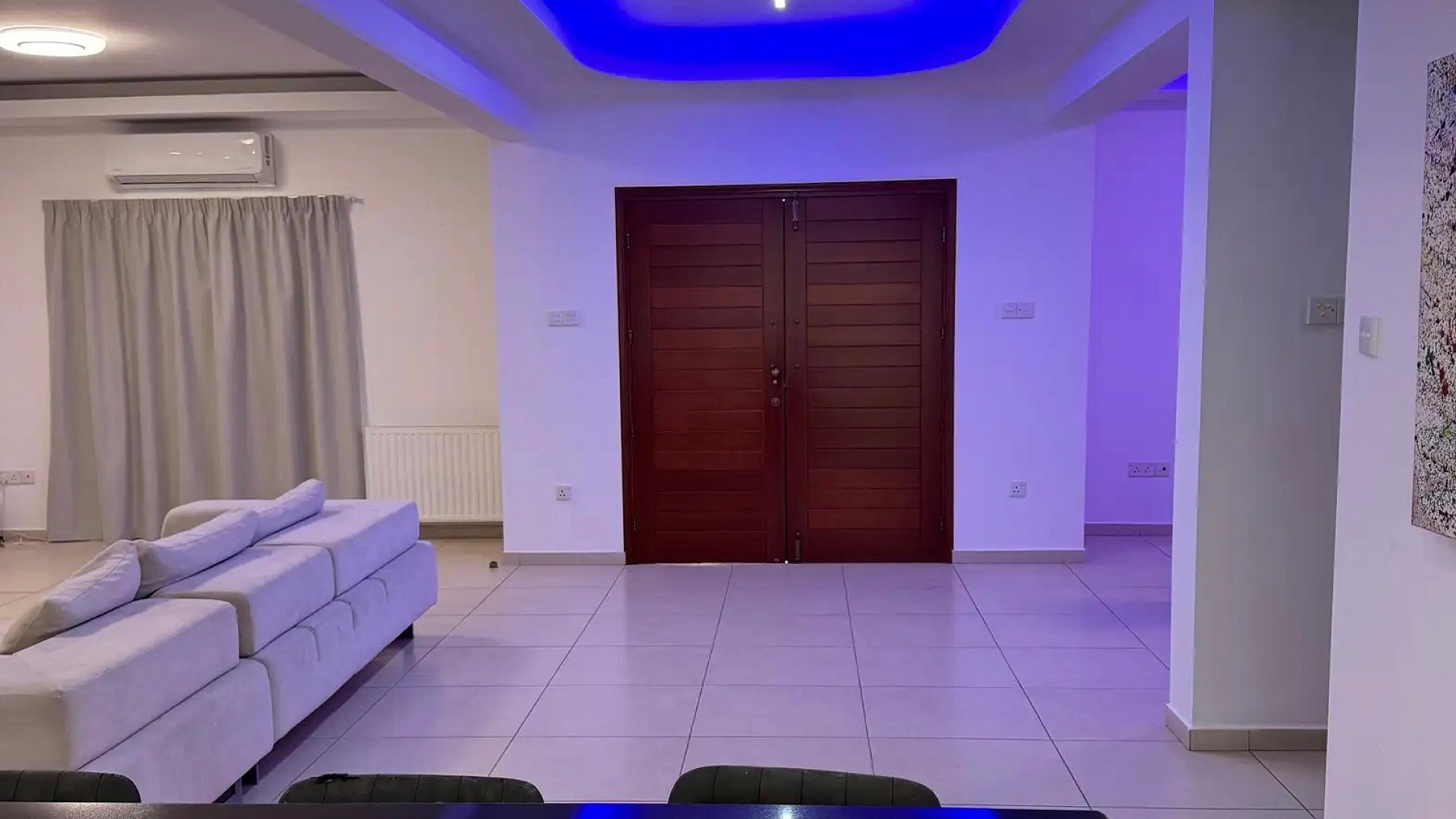 For rent a five-bedroom villa of 500 m2 on a plot of 1300 m2 in the prestigious area of Agios Tychonas, Limassol. The villa includes a spacious living room with a fireplace, a separate kitchen, 5 bedrooms, 5 bathrooms, a study, a game room, a pantry, and a guest apartment of 50 m2. The property is fully furnished and equipped with all necessary household appliances. Gas-fired central heating systems, a complete air conditioning system, water purification and softening, as well as 7.3 kW solar panels are installed. There is a swimming pool, a mature garden with fruit trees, a mini football and volleyball field, as well as four covered parking spaces with automatic gates. The villa is located in a secluded place without neighbors, just a three-minute drive from the sea.