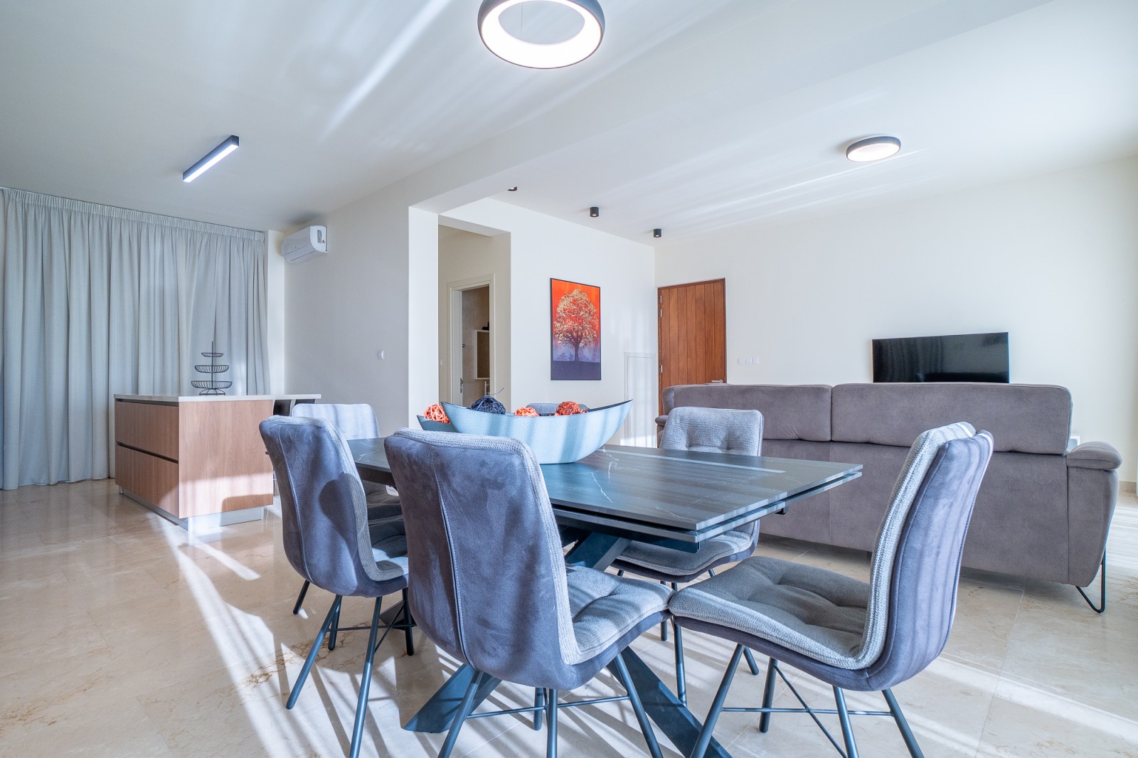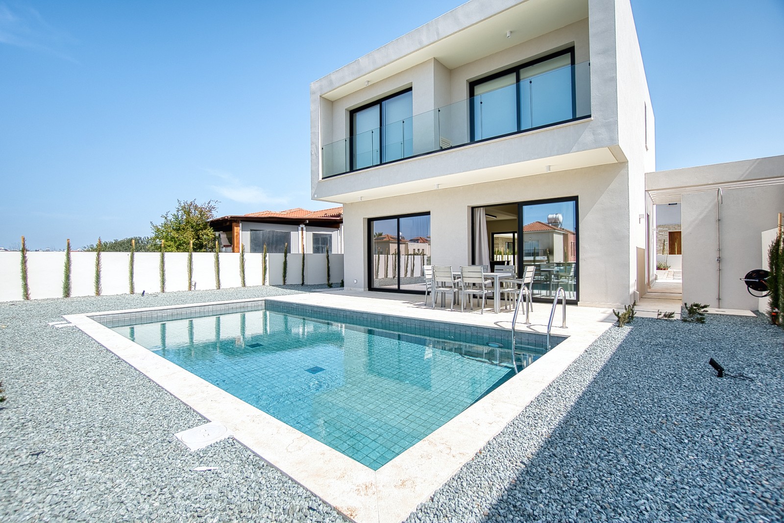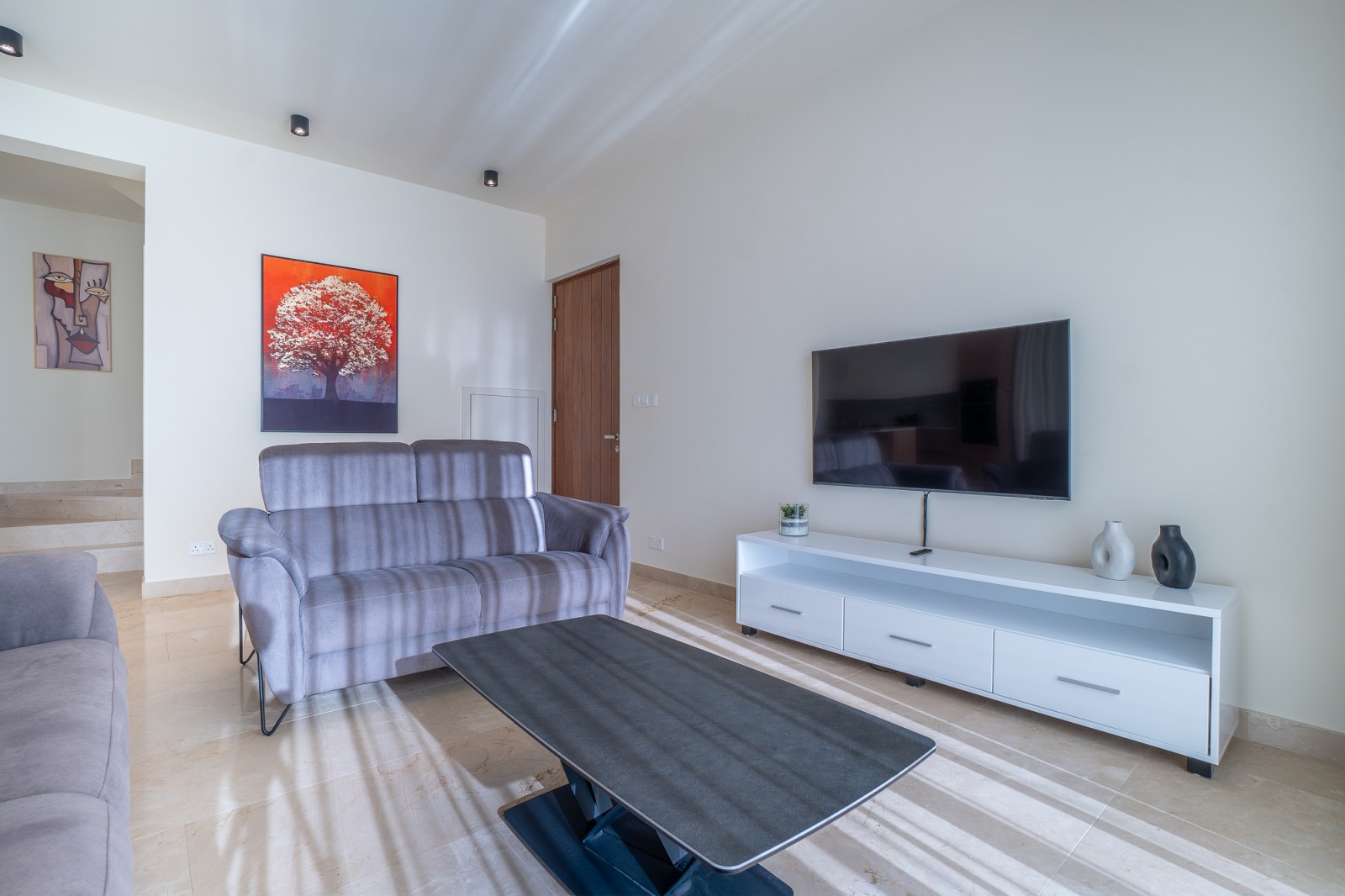 For rent a modern 3-bedroom villa of 167 m2 with a plot of 303 m2 in Emba area, Paphos. The villa includes a spacious open-plan living room and kitchen, three bright bedrooms, two bathrooms, a guest toilet and utility rooms. The property is fully furnished and equipped with new household appliances, air conditioning is installed in all rooms. The residents have access to a private swimming pool, barbecue area, private outdoor parking space and a cozy patio.