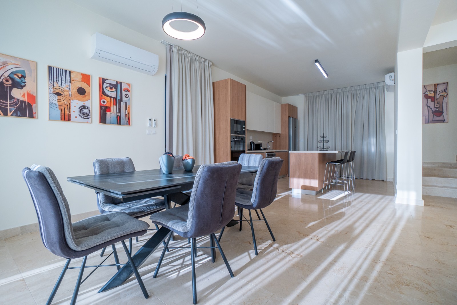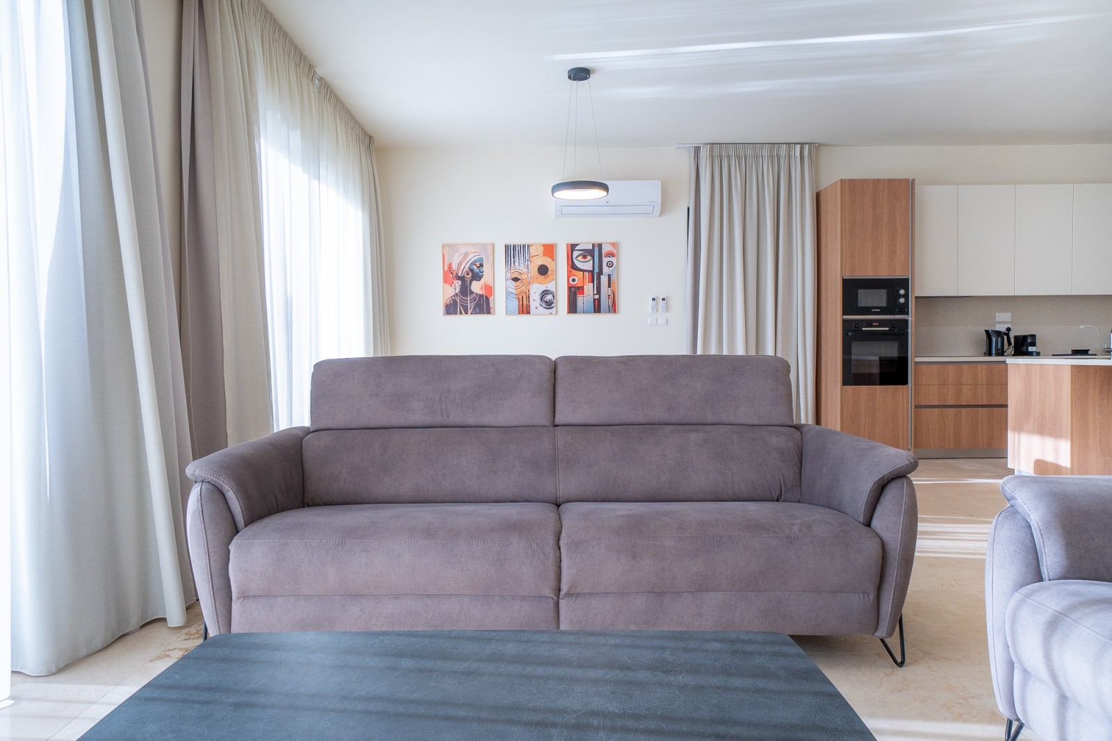 It is located in a secure gated complex built in 2024, which has a clubhouse, a large communal pool for adults and children, as well as well-maintained common areas. It is a 5—minute drive to the city, 10 minutes to the beach, and 15 minutes to the airport.