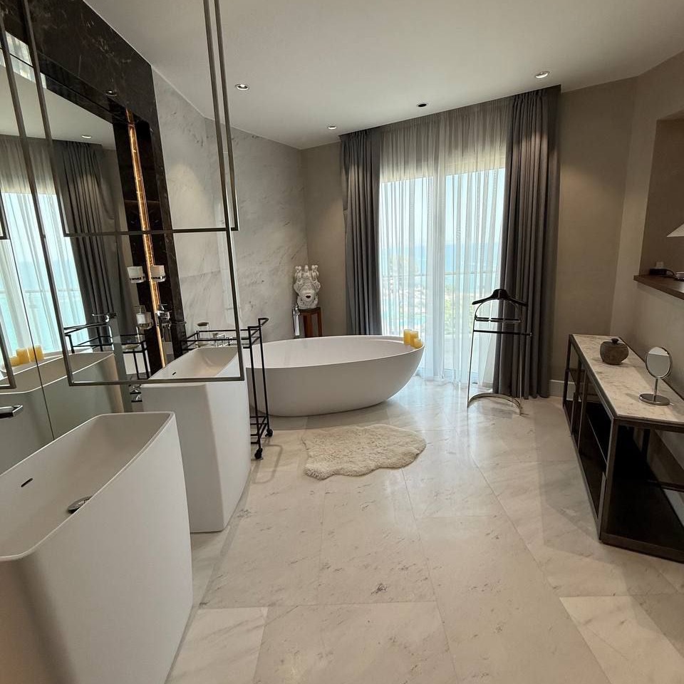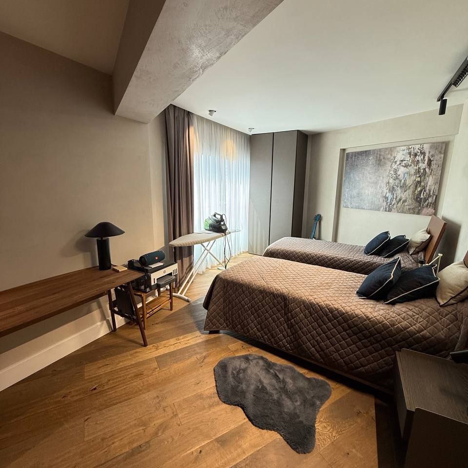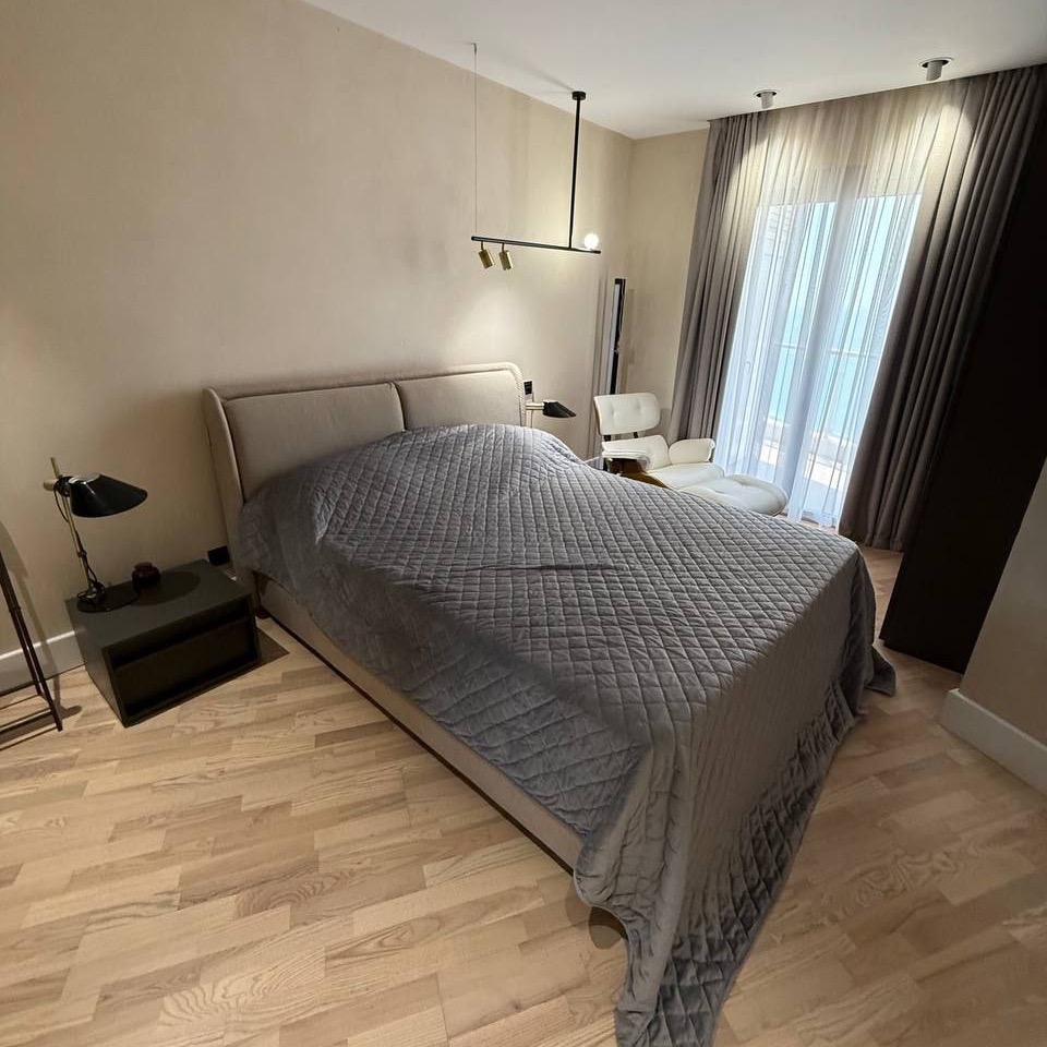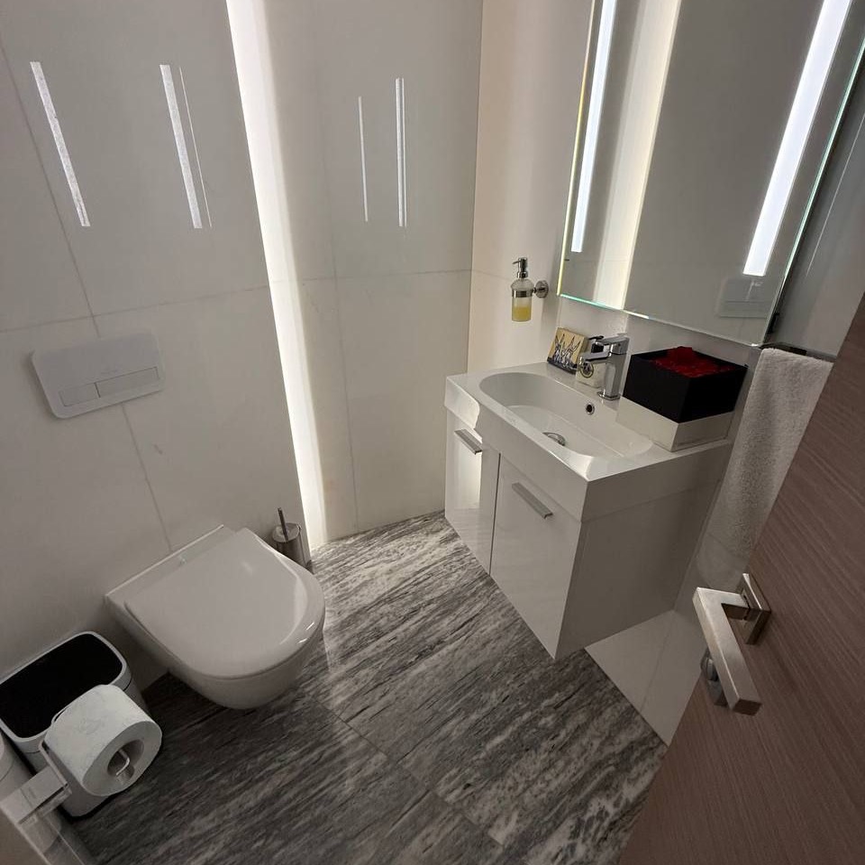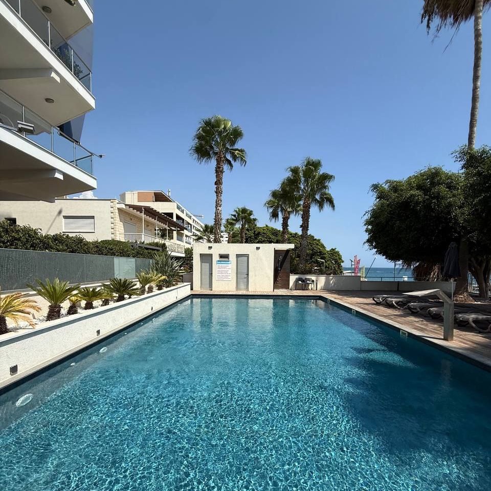 Luxurious 4-bedroom penthouse for rent next to the Royal Apollonia hotel, in the Germasogeia area with direct access to the sandy beach. 150 m² of internal space, 60 m² terrace and roof garden of 120 m² with panoramic sea views, kitchen and relaxation area. An additional room on the roof can be a bedroom, gym or office. Features: each bedroom has its own bathroom. Smart home and stylish design. Swimming pool in the complex, 2 parking spaces and a storage room, elevator, no neighbors on the floor. Small pets are welcome.