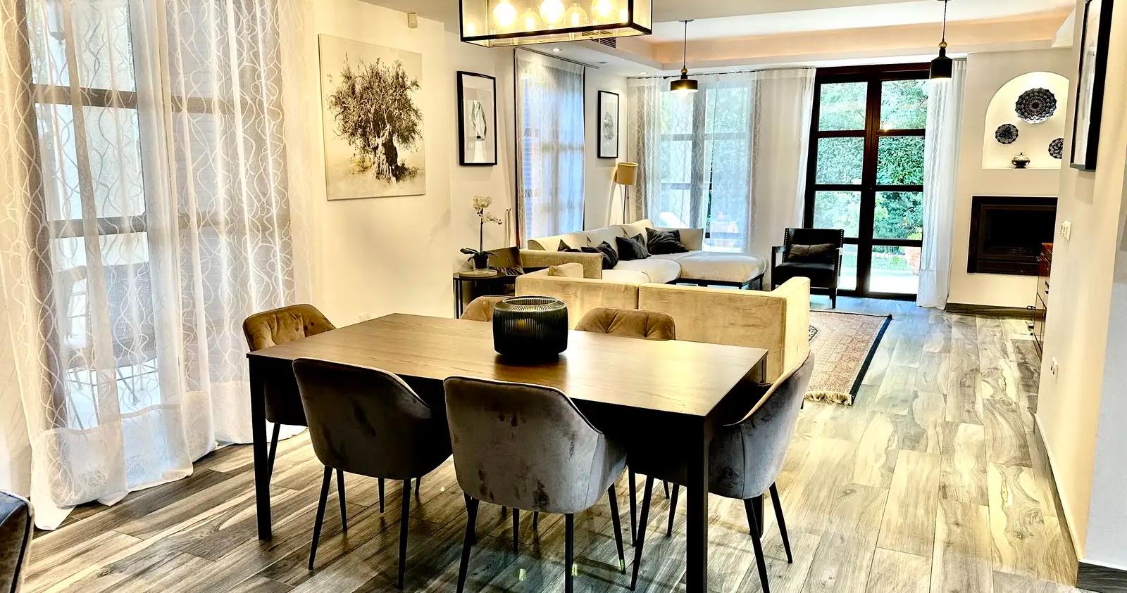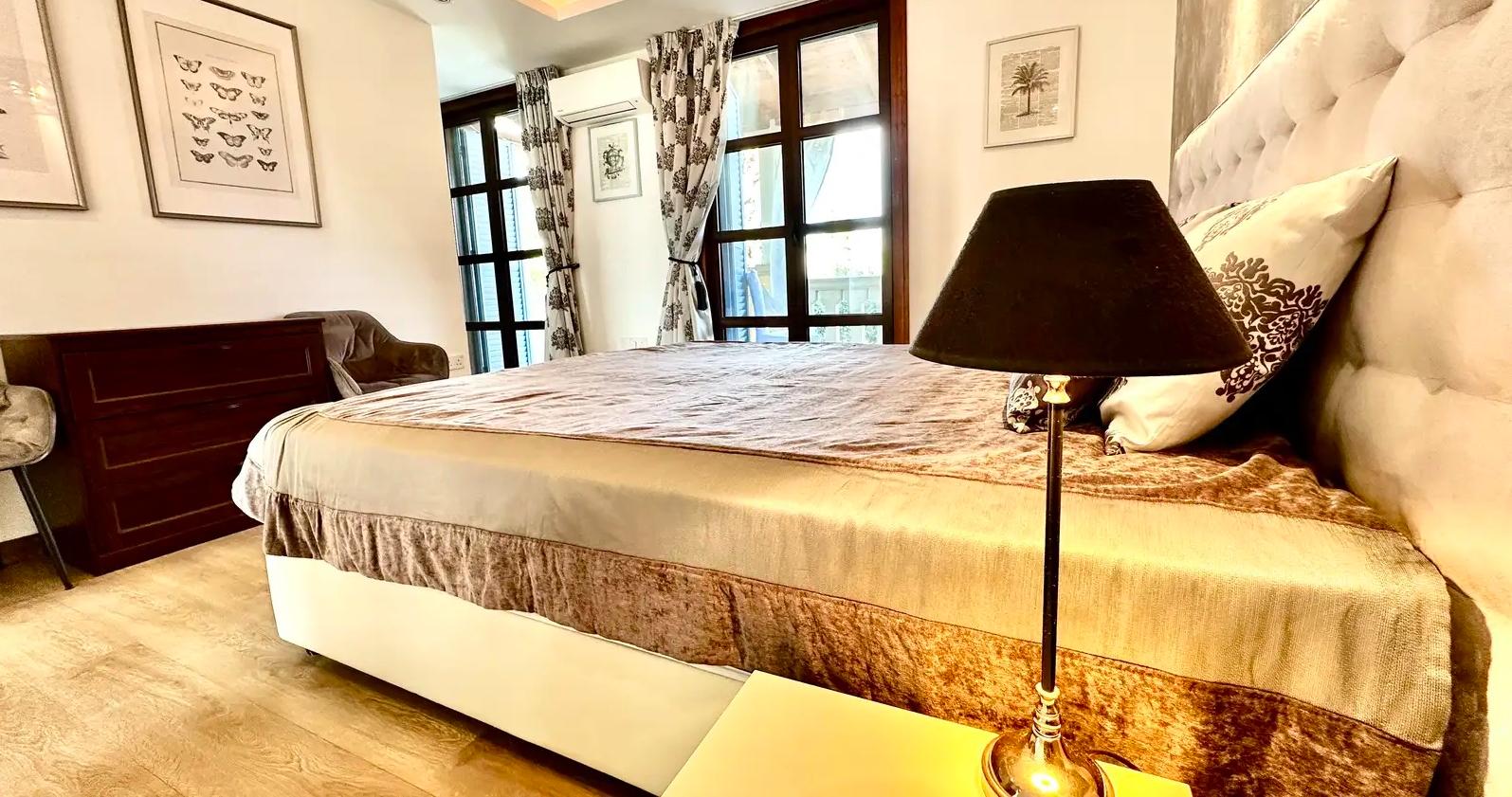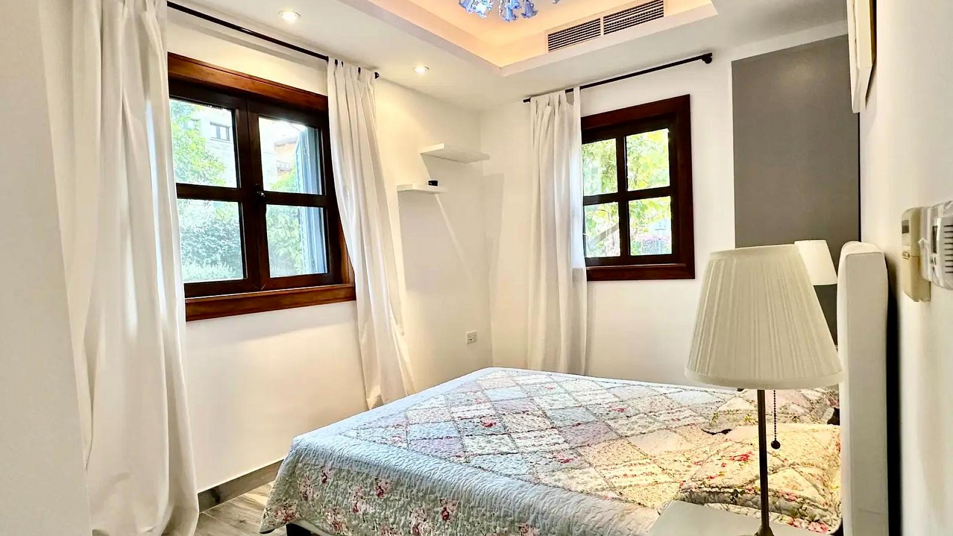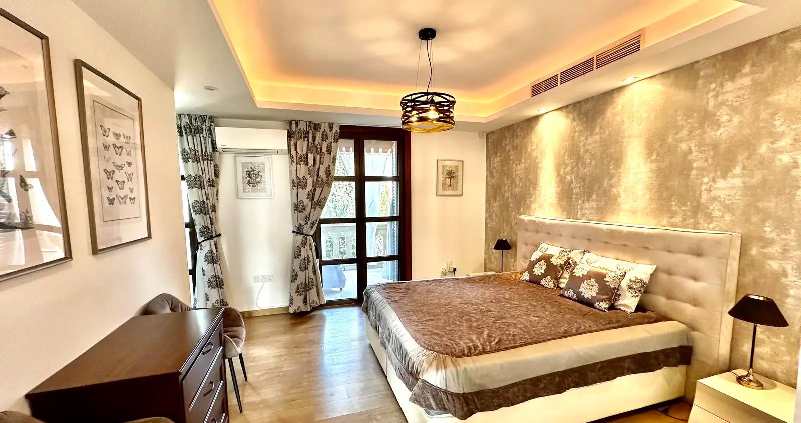 Four-bedroom villa of 185 m2 for rent in the prestigious area of Agios Tychonas, Limassol. The villa includes 4 bedrooms, a study, 3 bathrooms, a cozy living room with a fireplace, a modern kitchen and balconies with sea views. The plot has a small orchard, a swimming pool and a green recreation area. The villa is fully furnished and equipped with household appliances, air conditioning in all rooms and underfloor heating. The property is located on the first line of the sea in a gated gated community with a swimming pool, walking paths and a gym. It has energy efficiency class A. Pets are allowed.