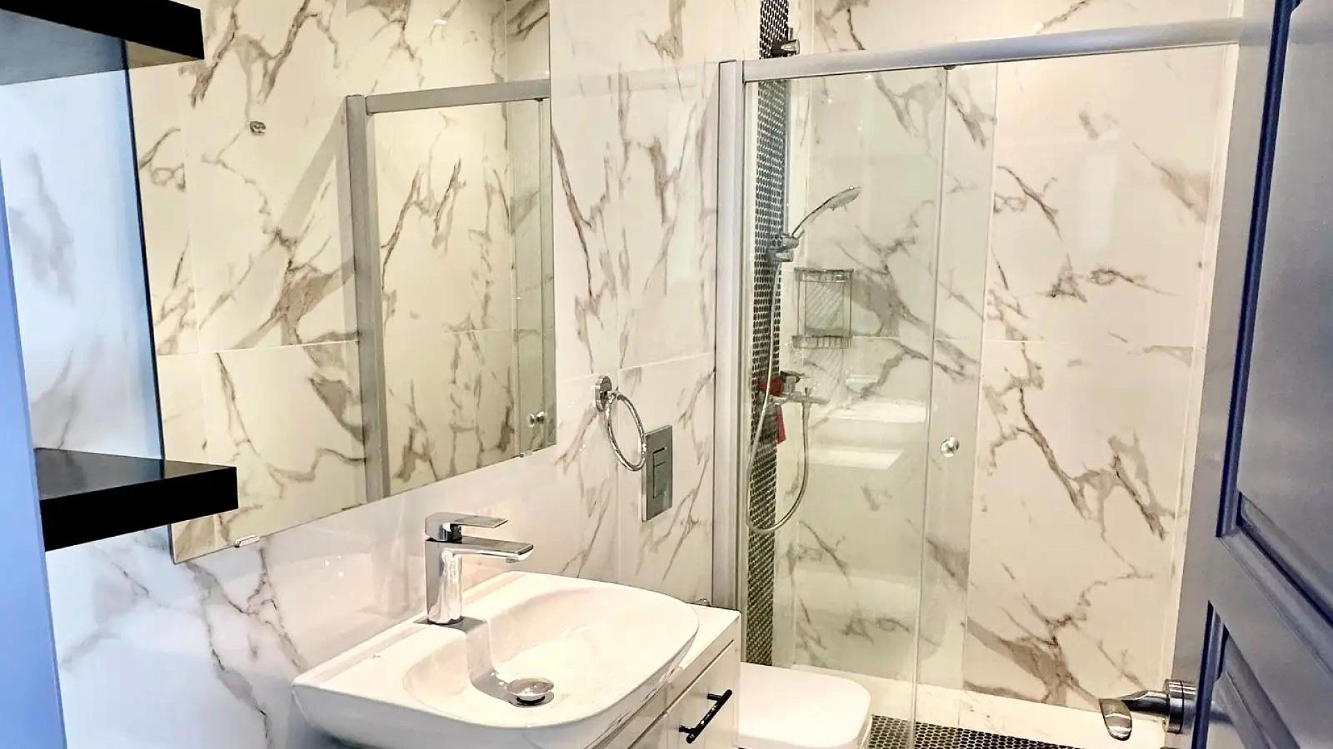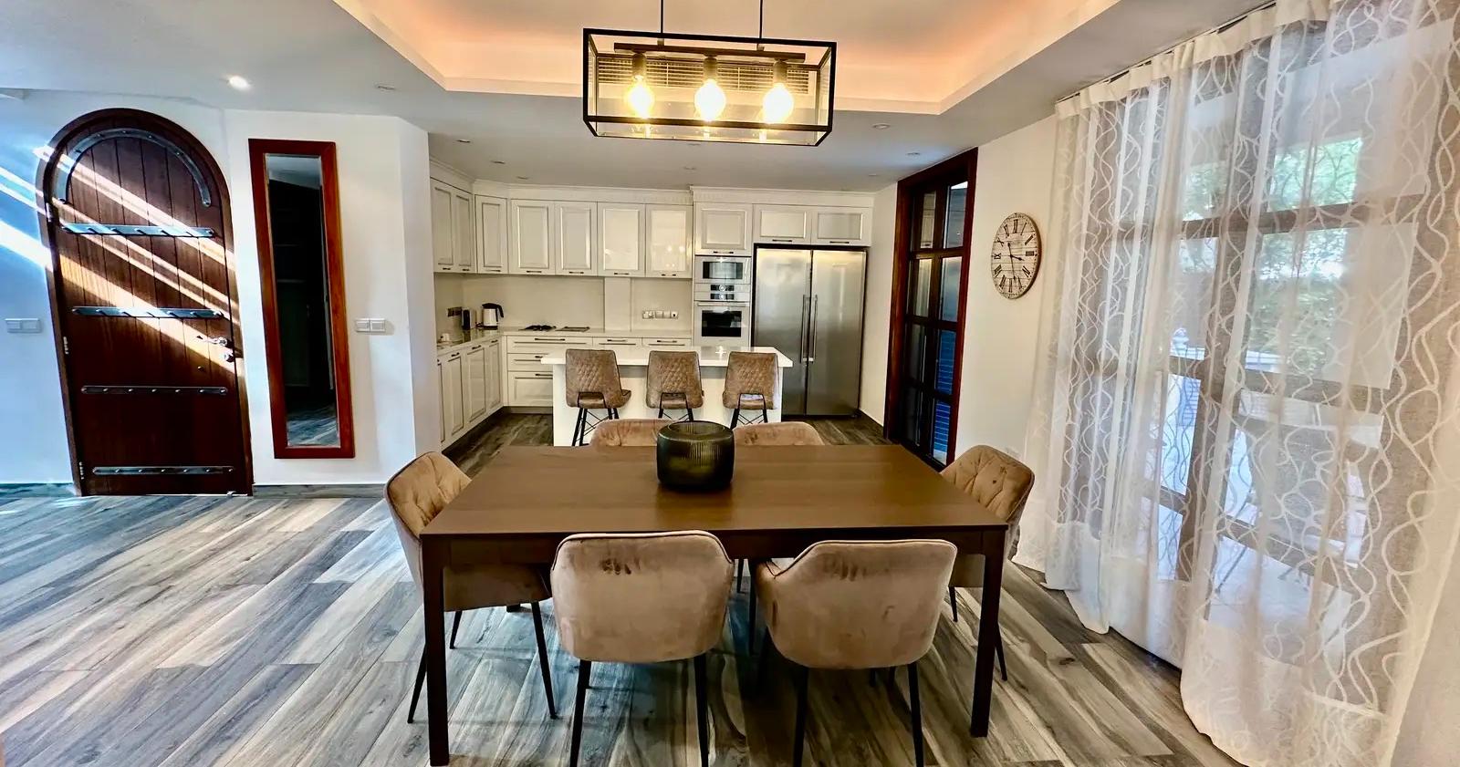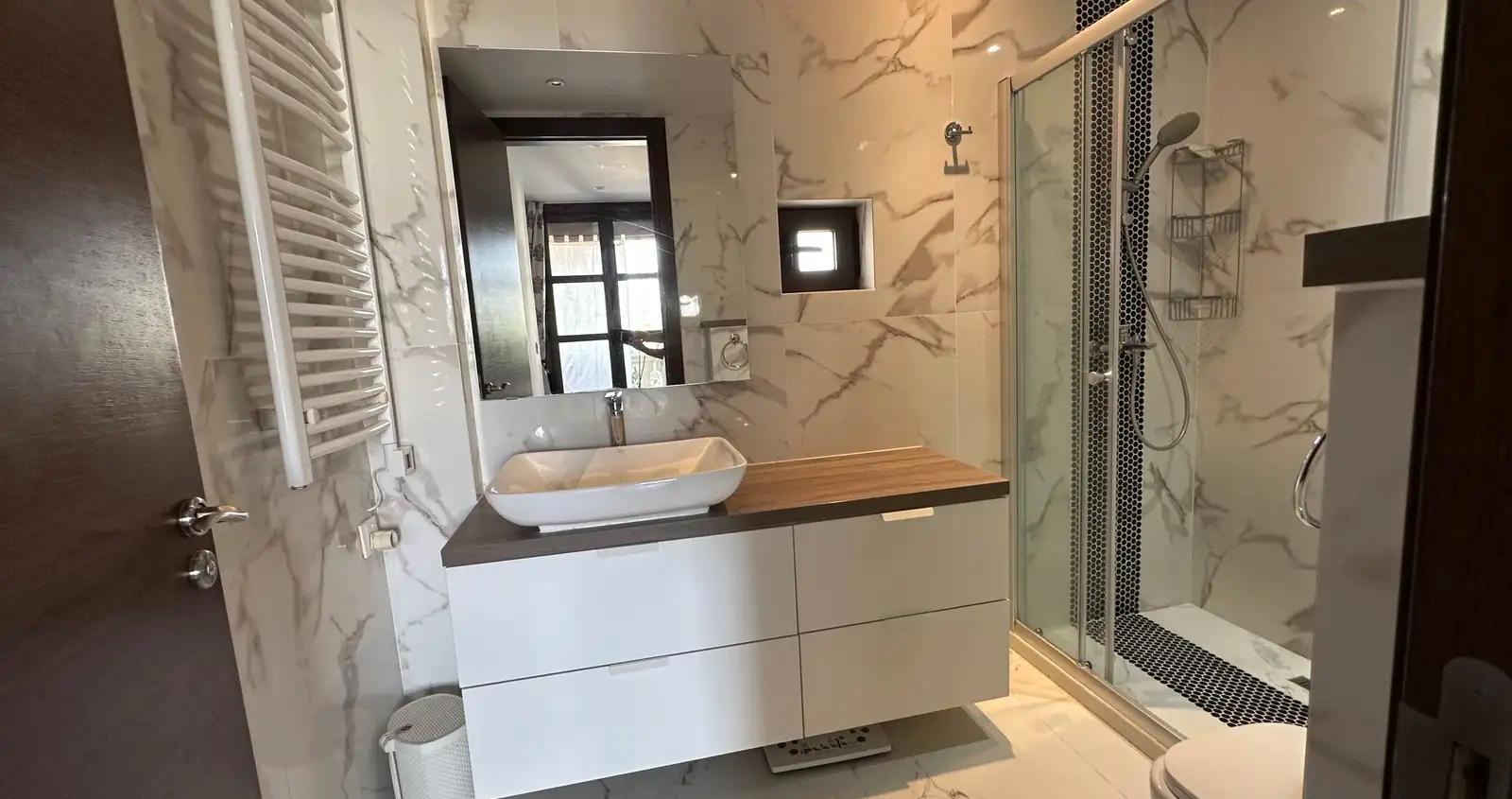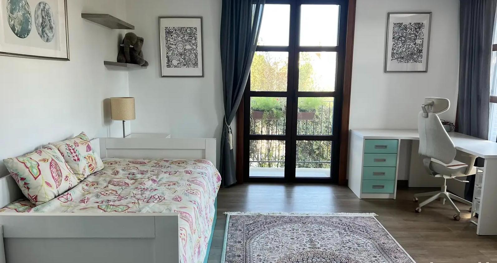 Four-bedroom villa of 185 m2 for rent in the prestigious area of Agios Tychonas, Limassol. The villa includes 4 bedrooms, a study, 3 bathrooms, a cozy living room with a fireplace, a modern kitchen and balconies with sea views. The plot has a small orchard, a swimming pool and a green recreation area. The villa is fully furnished and equipped with household appliances, air conditioning in all rooms and underfloor heating. The property is located on the first line of the sea in a gated gated community with a swimming pool, walking paths and a gym. It has energy efficiency class A. Pets are allowed.