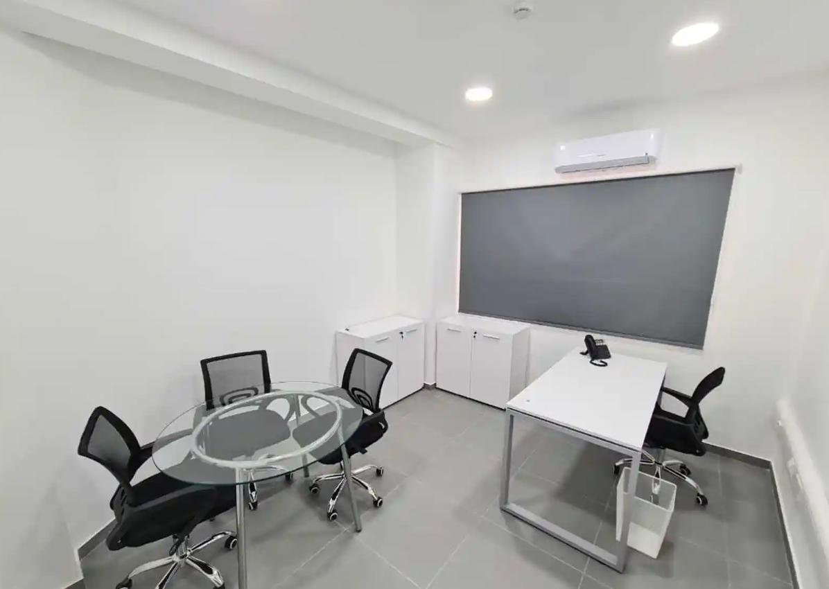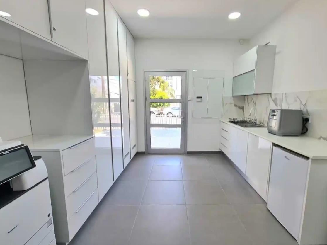 Office space for rent in the Egkomi Nicosia area of 180 m2, occupying the entire first floor of a separate building, completely renovated in 2024. The space includes five separate offices, a conference room area, a kitchen and two separate bathrooms. There is a private entrance, 24-hour access, and security cameras are installed. There are six parking spaces in front of the building, as well as a small garden. The offices are fully furnished with new furniture and equipped with all communications. The building is located on a convenient and quiet street close to all amenities.