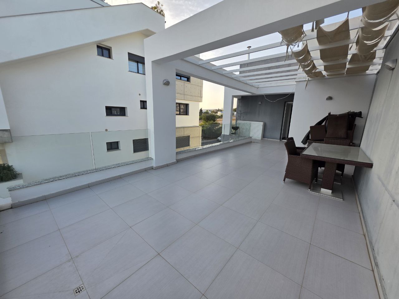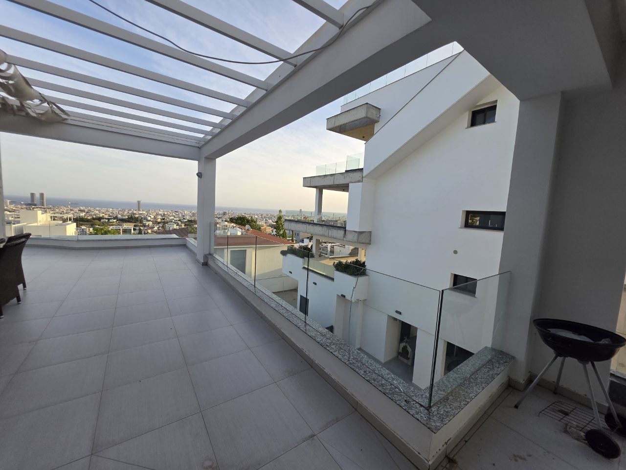 3 bedroom penthouse for rent with a rooftop garden in the Panthea area not far from the Grammar school with sea view. The apartment has 3 bedrooms, the master bedroom with its own bathroom and shower, a shower with a bathroom that is shared by two other bedrooms and a guest bathroom. A spacious living room that opens onto a veranda with a beautiful view of the sea. There is a parking space. There is a rooftop garden with a barbecue area.
