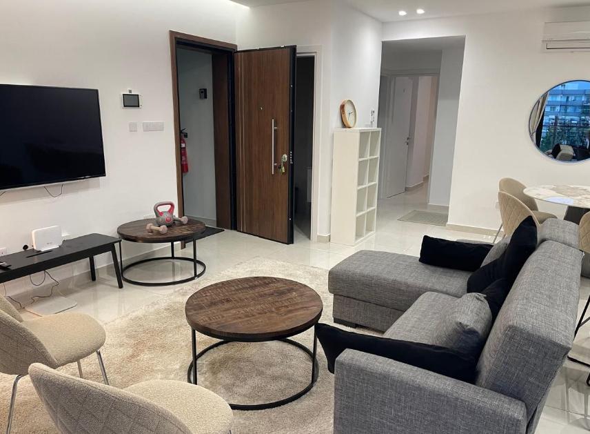 Three-bedroom apartment for rent in the area of Agios Nicolaos Limassol with a total area of 115 m2 with a balcony of 20 m2. The apartment is fully furnished and equipped with all necessary appliances, including an air conditioning system with heating and cooling mode and Wi-Fi. The layout includes a bathroom and toilet, as well as a guest bathroom. The complex is equipped with a covered parking with automatic gates and a storage room. The building was built in 2022.