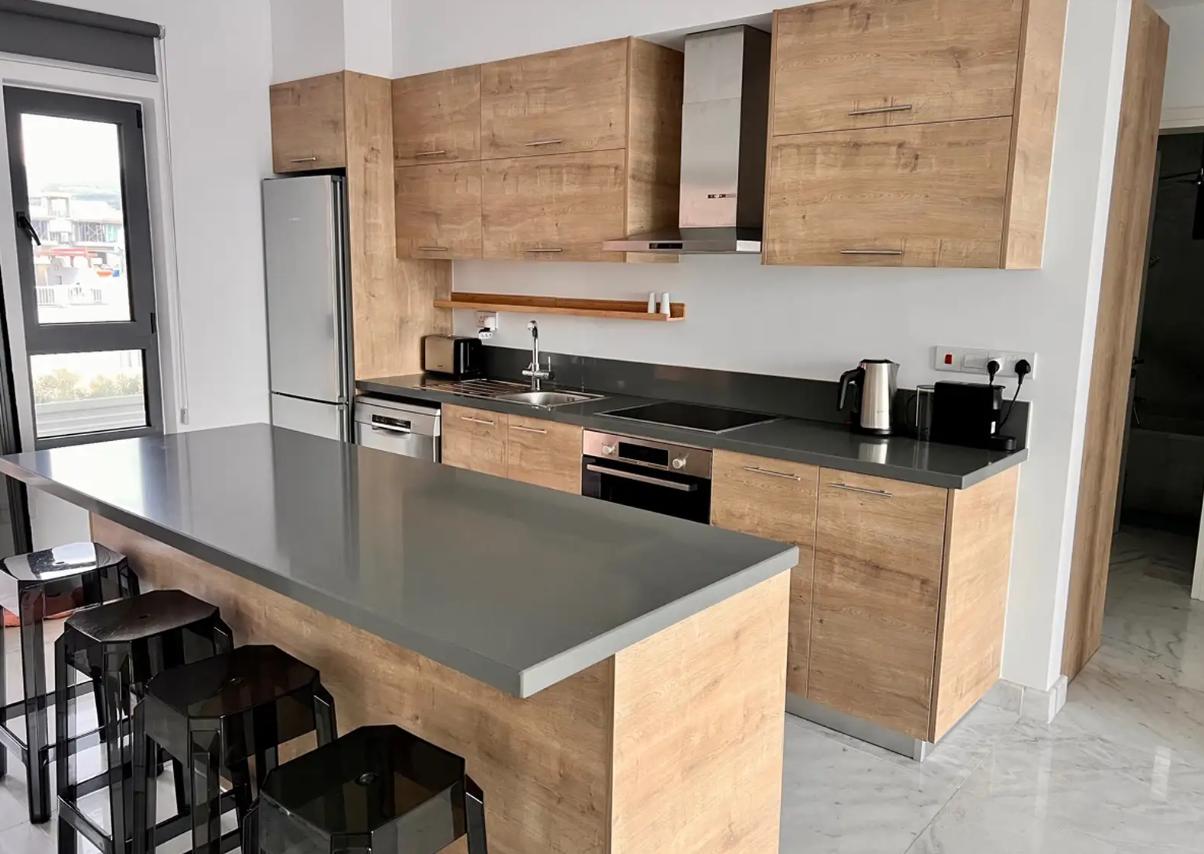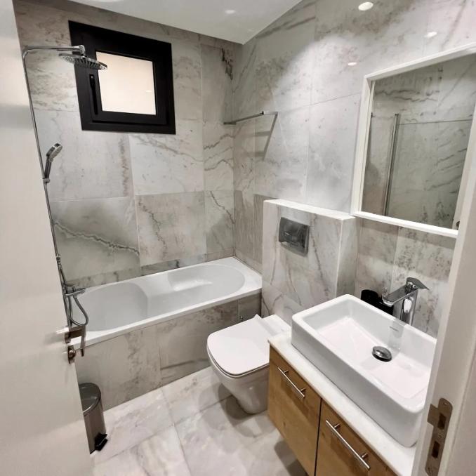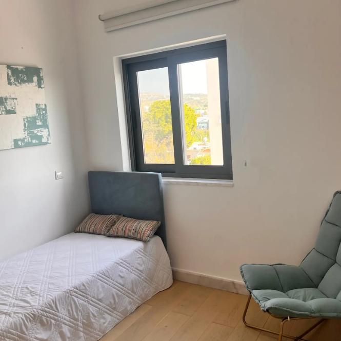 2-bedroom apartment for rent in Universal Paphos, Paphos, with an area of 85 m2, located on the third floor of a modern building built in 2022. The apartment is newly renovated, fully furnished and equipped with all necessary appliances and air conditioners in all rooms. The residents have at their disposal a spacious veranda with a lounge area, a storage room and a covered parking space. There are two swimming pools on the roof of the complex. The house has excellent heat and sound insulation, the apartment is comfortable both in winter and in summer.
