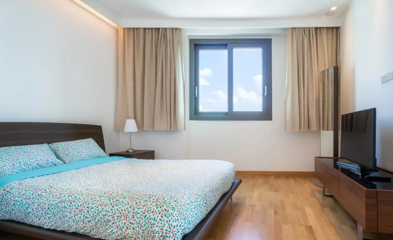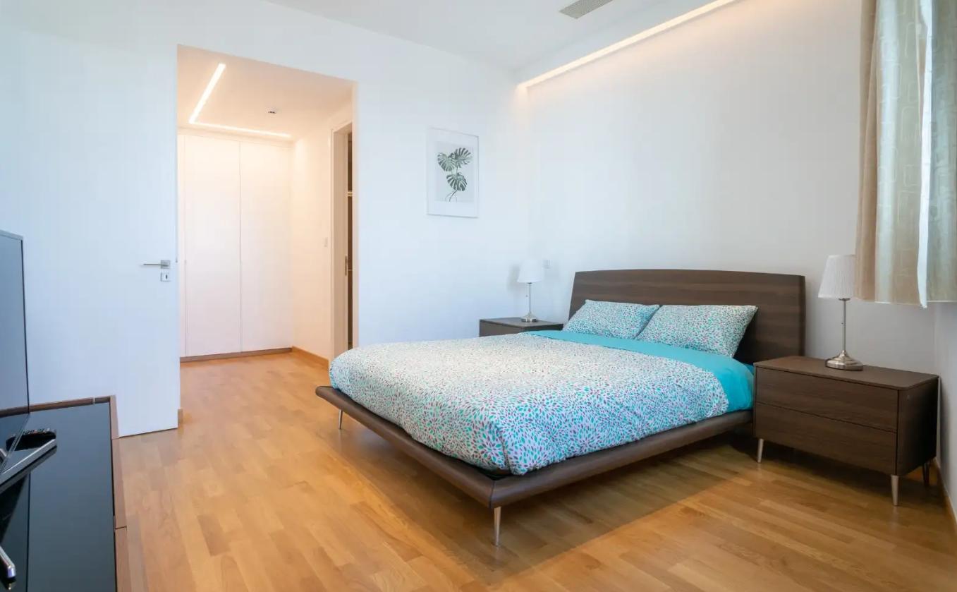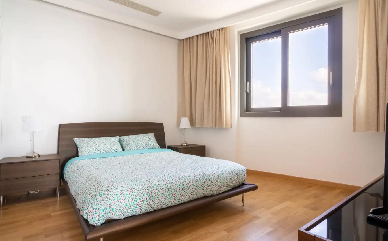 Two-bedroom apartment for rent in Mouttagiaka Tourist Area, Limassol, on the 4th floor of a building built in 2018. The area of the apartment is 100 m2 plus a covered veranda of 18 m2. The apartment is fully furnished and equipped with all necessary appliances, with two bathrooms, air conditioning in all rooms, a kitchen, a balcony and a pantry. Covered parking is available. The complex is equipped with a swimming pool, garden, elevator, gym, sauna and steam bath. Excellent location close to the waterfront, shops, cafes and all necessary infrastructure.