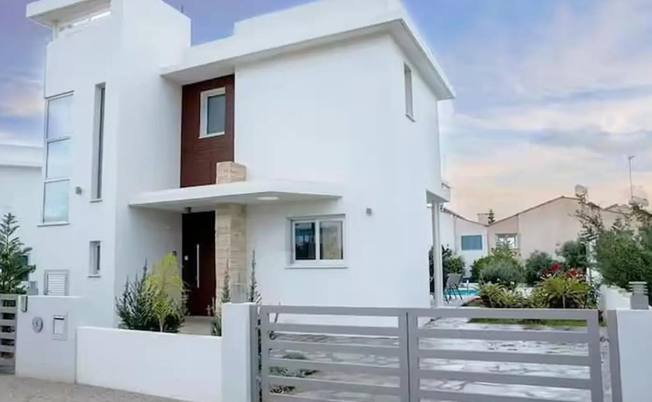 Two-bedroom villa of 130 m2 for rent in Cape Greko, Famagusta. The villa is fully furnished and includes two bedrooms, two bathrooms, a spacious living room with an open-plan kitchen, a balcony and a garden. The property has a private swimming pool and outdoor parking. The house has air conditioners in all rooms, as well as a high energy efficiency class A. The windows and the terrace offer a beautiful view of the sea. Pets are allowed.