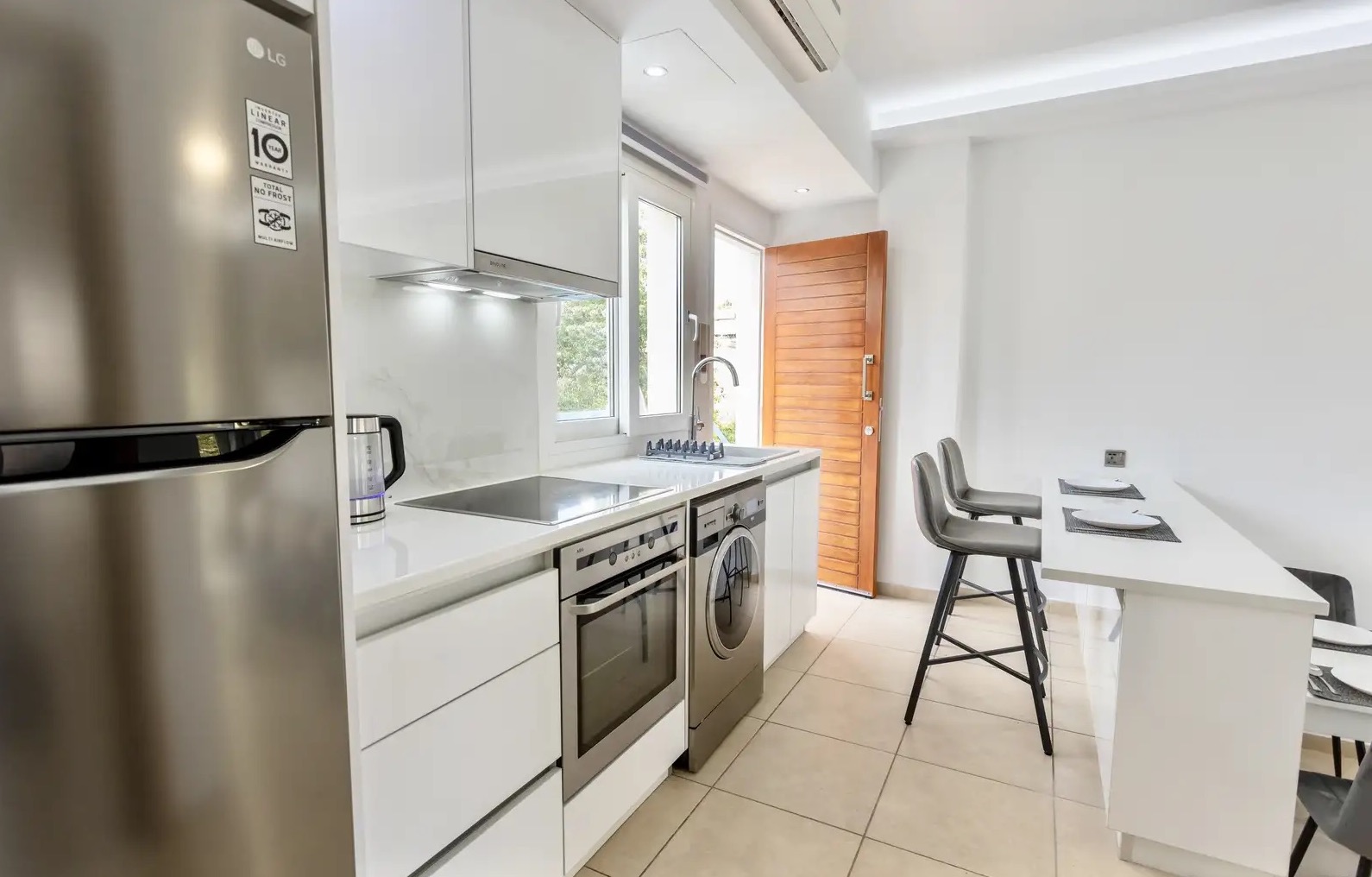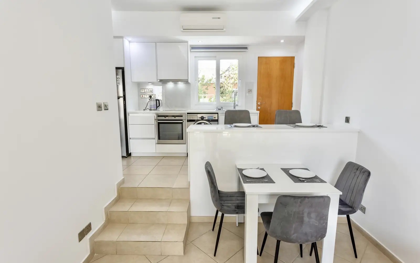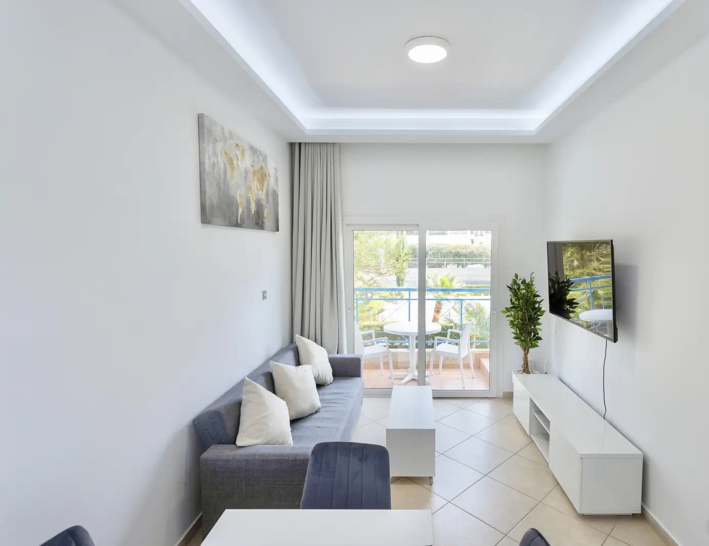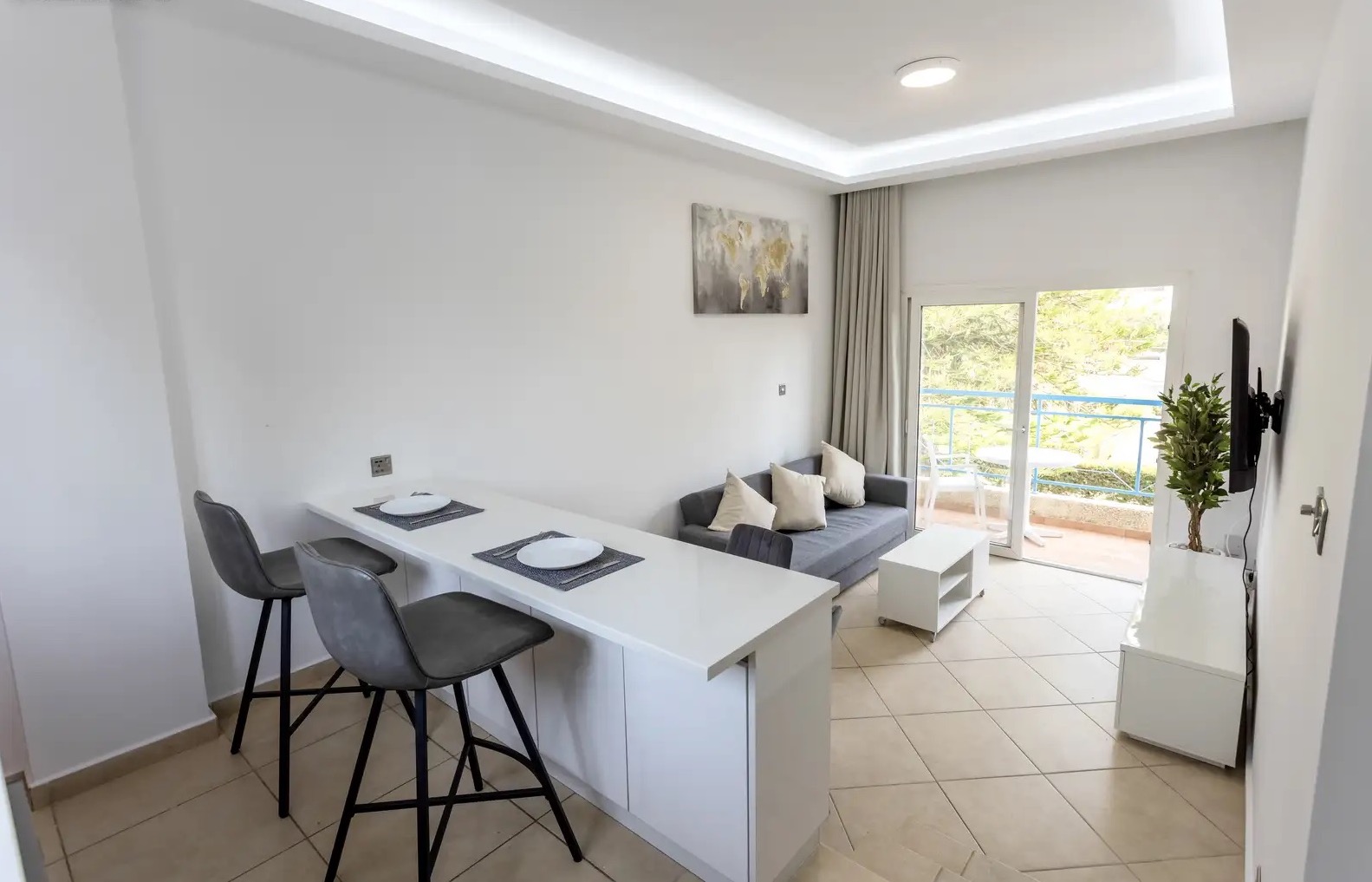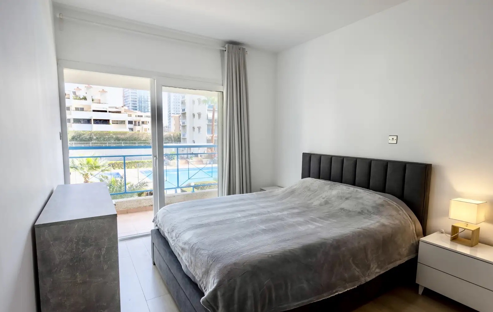 One-bedroom apartment of 51 m2 for rent in Potamos Germasogeias area, Limassol city. The apartments include one bedroom, one bathroom, an open-plan kitchen, a living room and a balcony overlooking the manicured garden. The apartment is fully furnished and equipped with household appliances, including modern kitchen appliances, a 55" Smart TV, air conditioning in all rooms and high-speed Internet. The property is located in a gated community with two swimming pools, a tennis court, a barbecue area and greenery. Nearby there is a Metro supermarket, Del Mar and Sky Tower skyscrapers, pharmacies, restaurants, bars and other infrastructure facilities. The price includes a parking space.