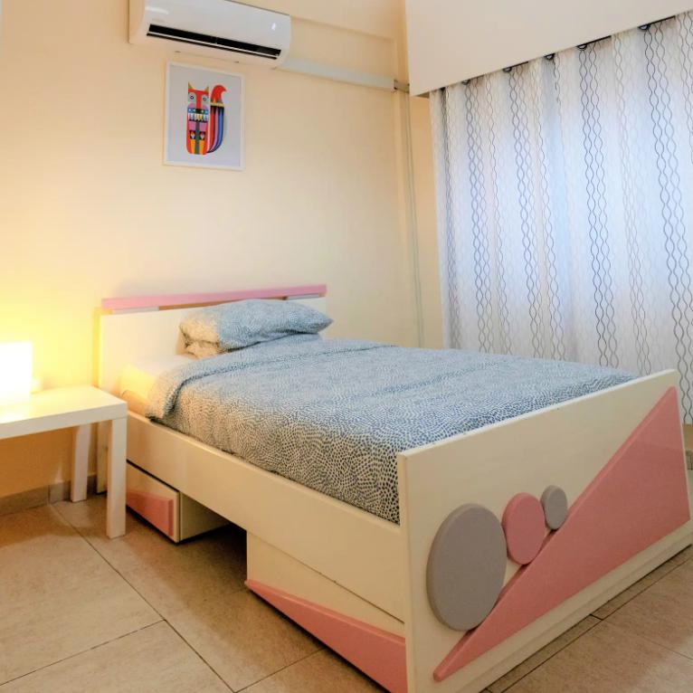 Three bedroom apartment for rent in Agios Tychon Tourist Area, Limassol, located just three minutes walk from the sea. The total area is 128 m2. The apartment is fully furnished and includes three bedrooms, two bathrooms, a separate fully equipped kitchen, two spacious verandas and a private patio. There is a covered parking, air conditioning in all rooms and an elevator. The area is quiet and safe, with bus stops, supermarkets, bars, and restaurants nearby.