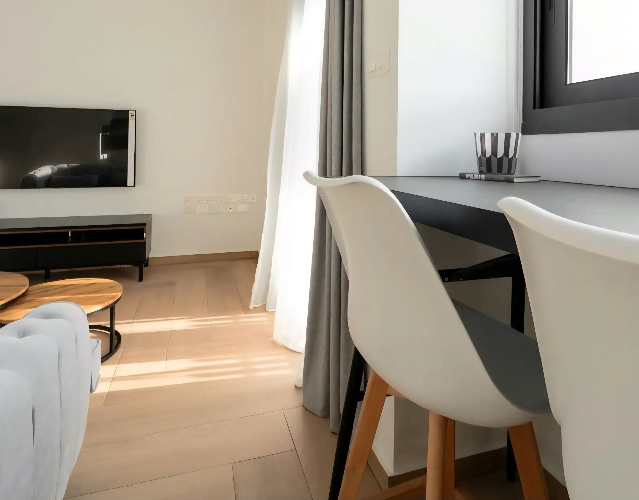 For rent a two-bedroom apartment with a total area of 126 m2, of which the living area is 76 m2, in a new building in the area of Agios Ioannis, Limassol. The apartment is located on the 4th floor of a four-storey building and includes two bedrooms, one bathroom, an open-plan kitchen, a living room and a spacious veranda of 50 m2. The apartment is fully furnished and equipped with household appliances, including air conditioners. There is a storage room, an elevator and a parking space. The Energy efficiency Class A building is located in a peaceful and well-maintained area with shops, schools, parks and supermarkets nearby. Pets are allowed.