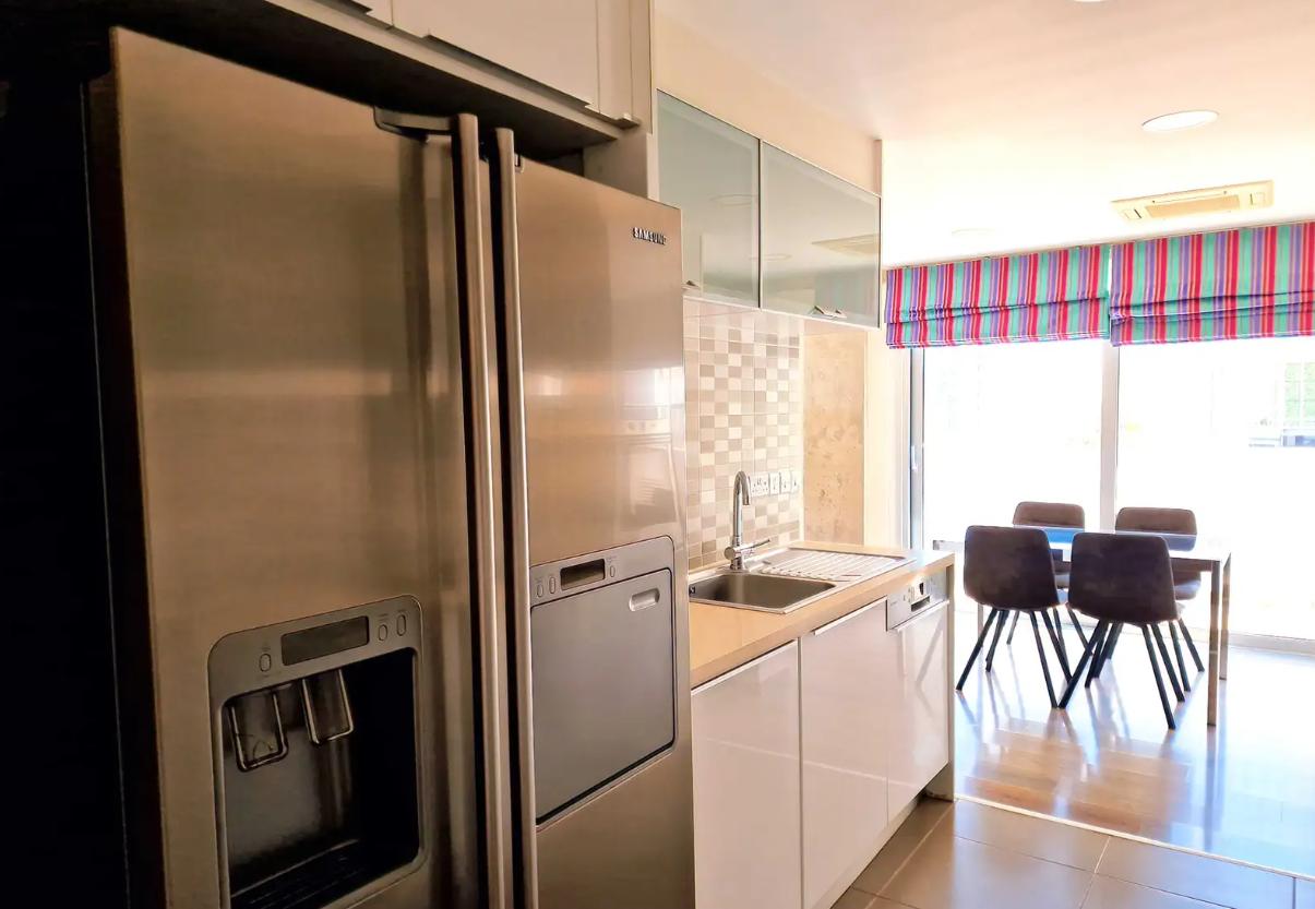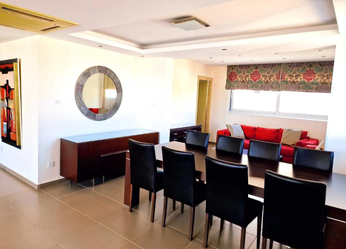 Three-bedroom penthouse for rent in the area of Drosia, Larnaca. The penthouse has an area of 150 m2, it occupies the entire fourth floor of a building built in 2015 and is fully furnished with air conditioning in all rooms. The penthouse has three bedrooms, including one with its own bathroom, two bathrooms, a balcony, a storage room and one covered parking space. Secured with a security door. The apartment is in excellent condition and is located just a five-minute drive from the Metropolis Mall and the center of Larnaca, near pharmacies, bakeries, cafes, restaurants, kiosks and the Cineplex cinema. The penthouse is available for occupancy from November 1, .