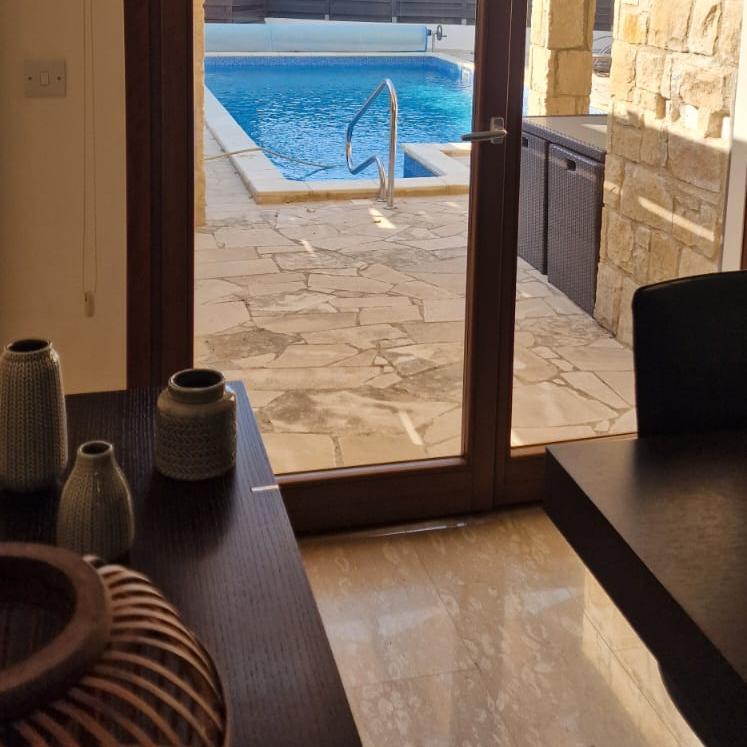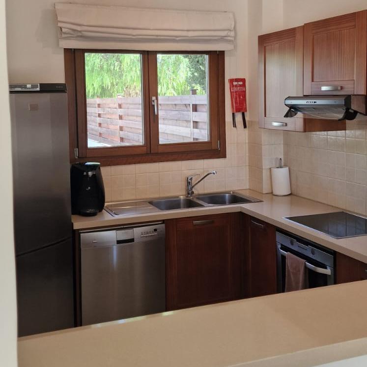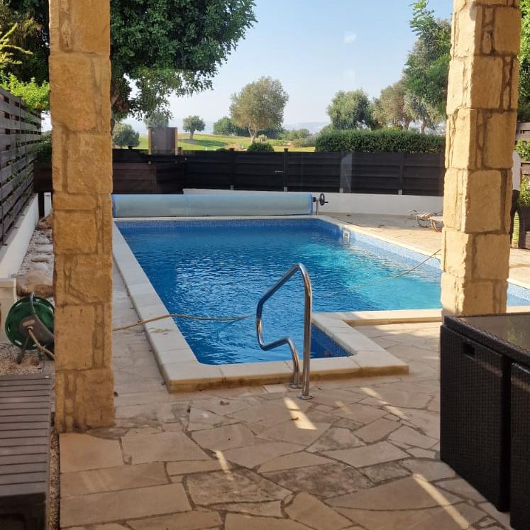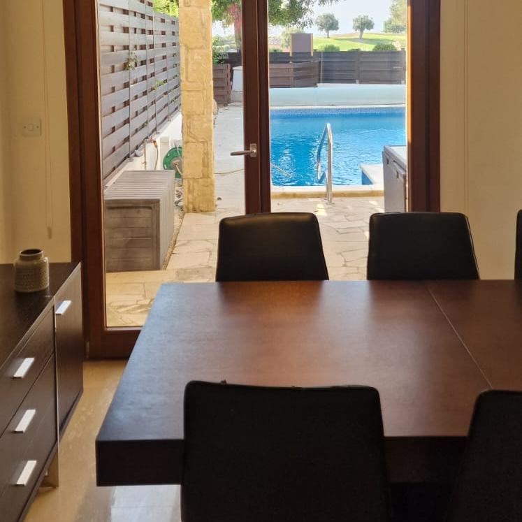 Two bedroom villa for rent in Aphrodite Hills, Paphos. The villa has been recently renovated, with a living area of 120 m2 and a total area of 140 m2. A house with a private pool and two bathrooms. It is located just 150 meters from the golf clubhouse and the central square of Aphrodite Hills complex.