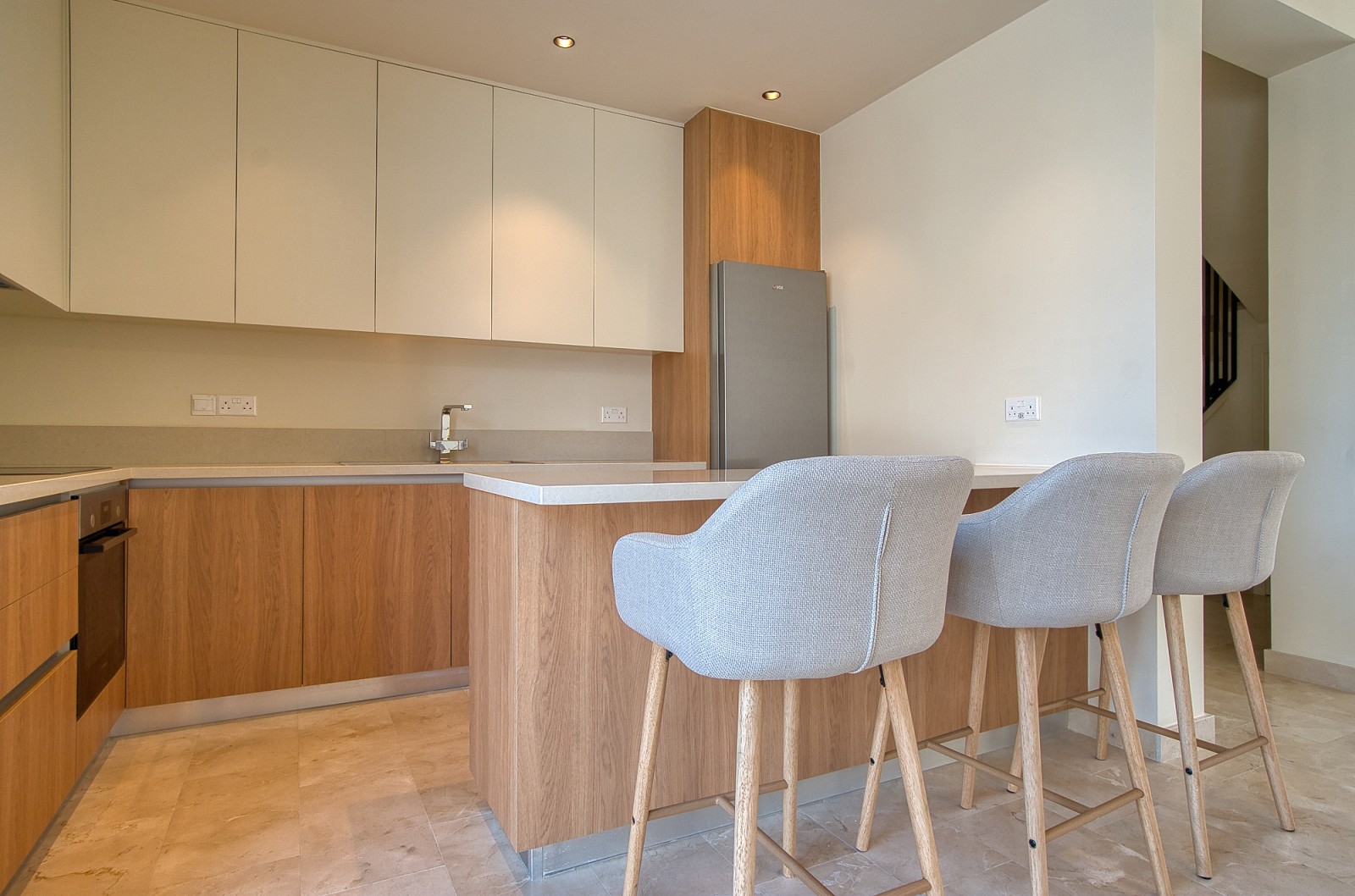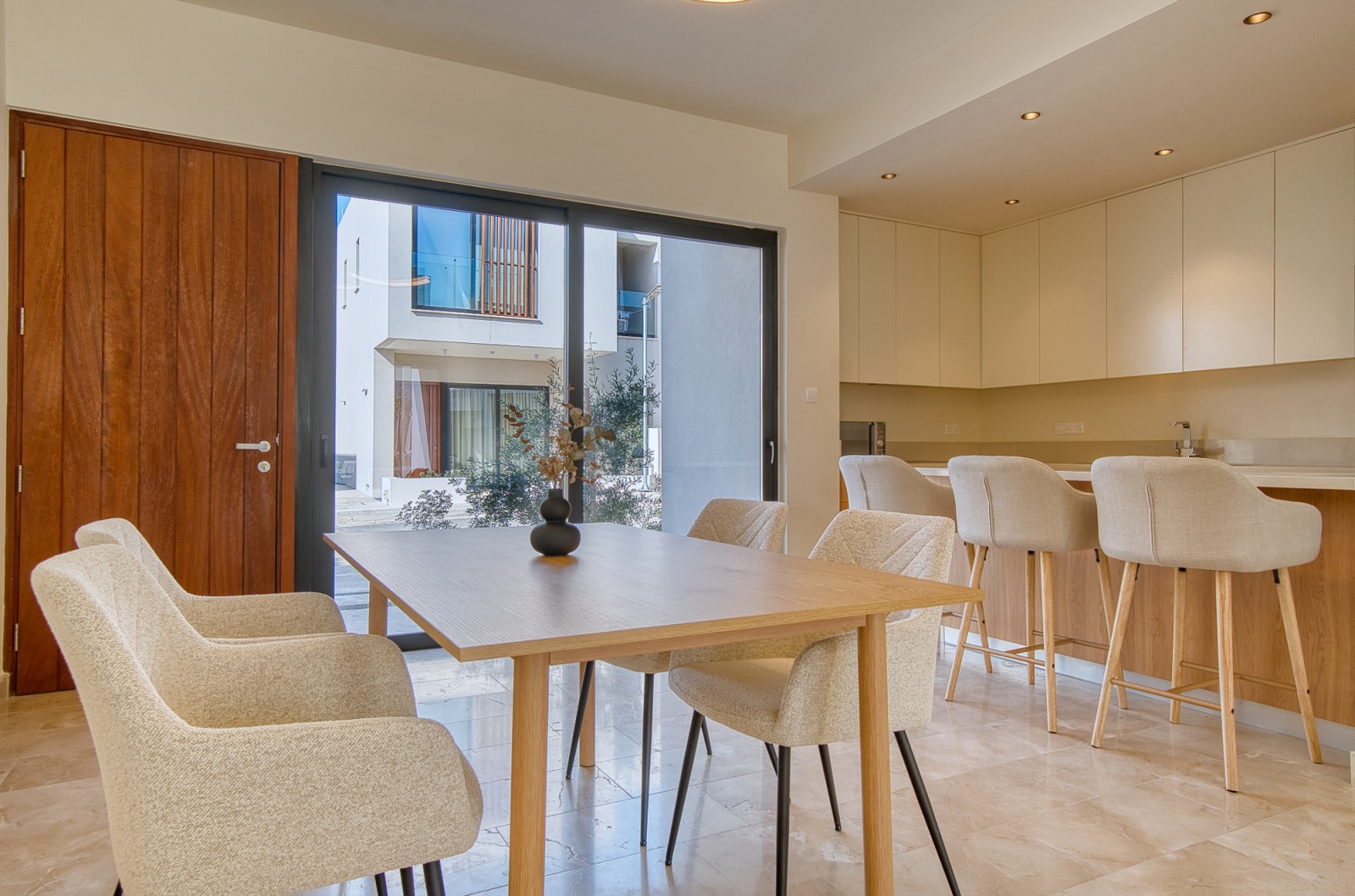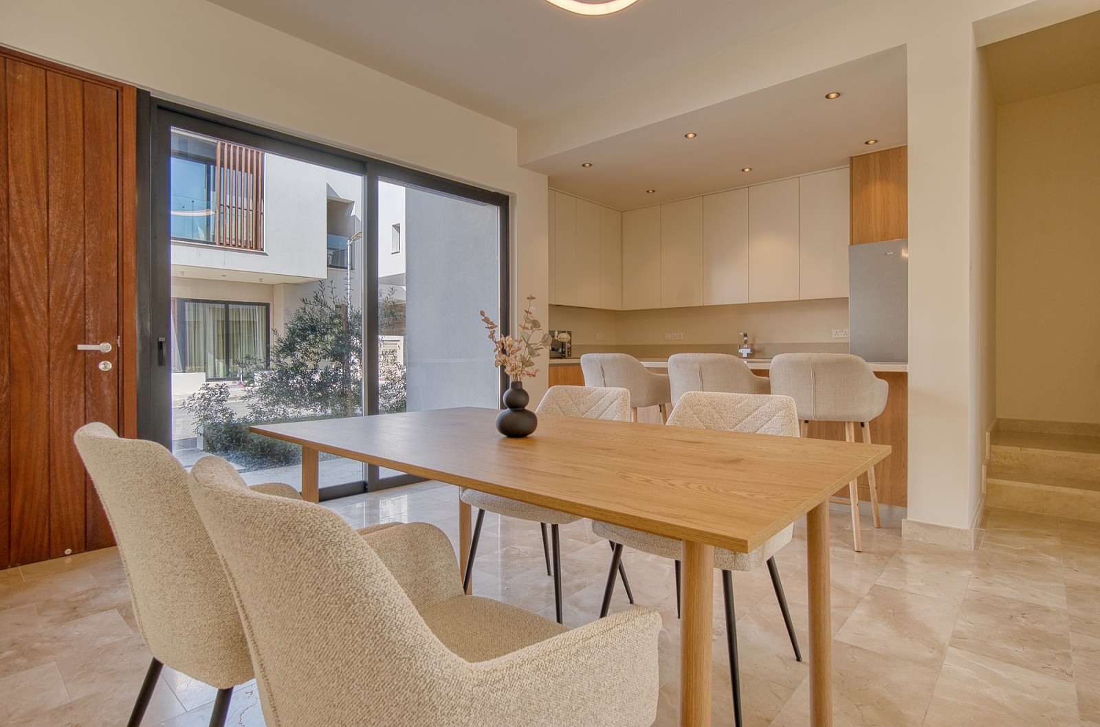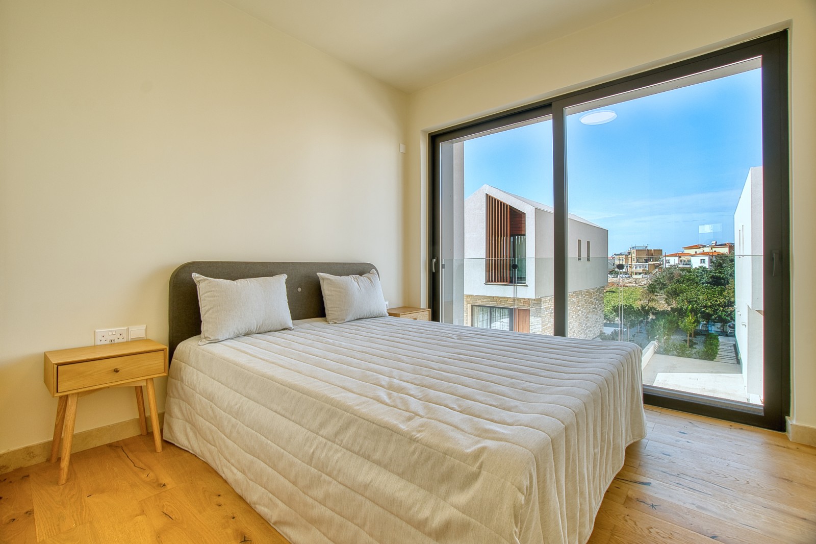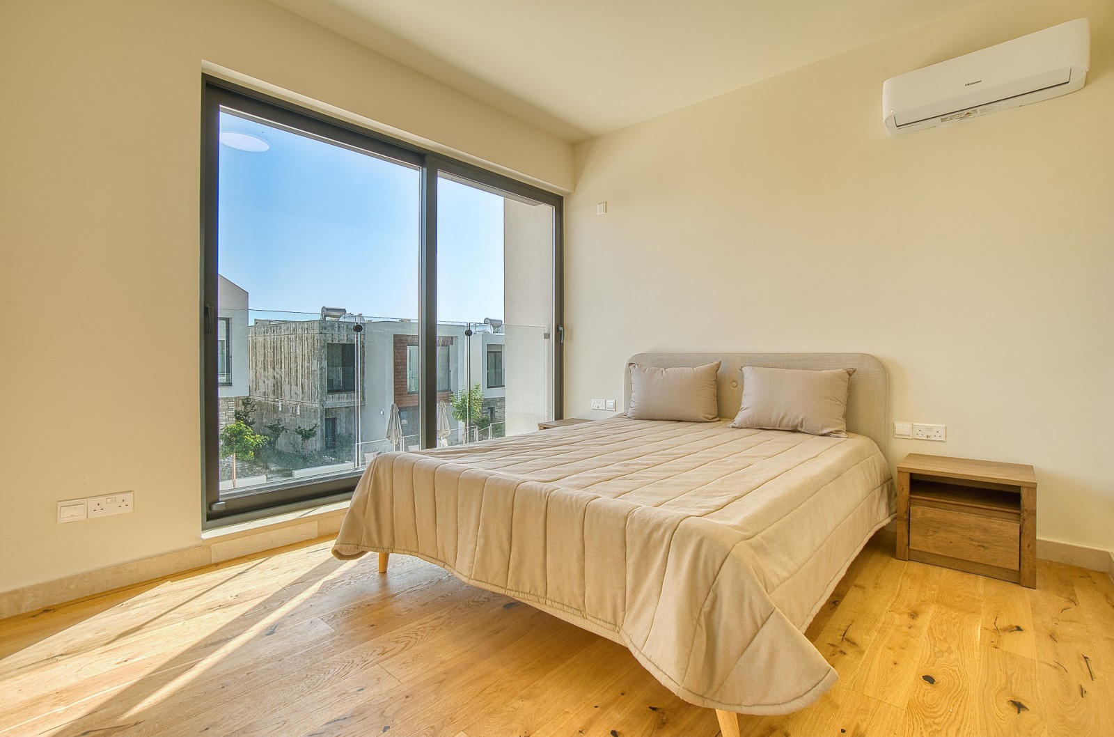 Three bedroom villa for rent in the area of Empa, Paphos. A brand new villa of 159 m2 is located on a plot of 170 m2 in a gated complex built in 2024. The villa is fully furnished and equipped with new appliances, includes three spacious bedrooms, two bathrooms, a guest toilet, an open kitchen and a bright living room with modern finishes. All rooms are equipped with air conditioning, as well as underfloor heating on both levels. There is a private swimming pool, a relaxation area and private outdoor parking. The complex provides a high level of security and offers a clubhouse, a large communal pool for adults and children, and a relaxed family atmosphere. The location is convenient — just a 5-minute drive to the center of Paphos, 10 minutes to the beach and 15 minutes to the airport.