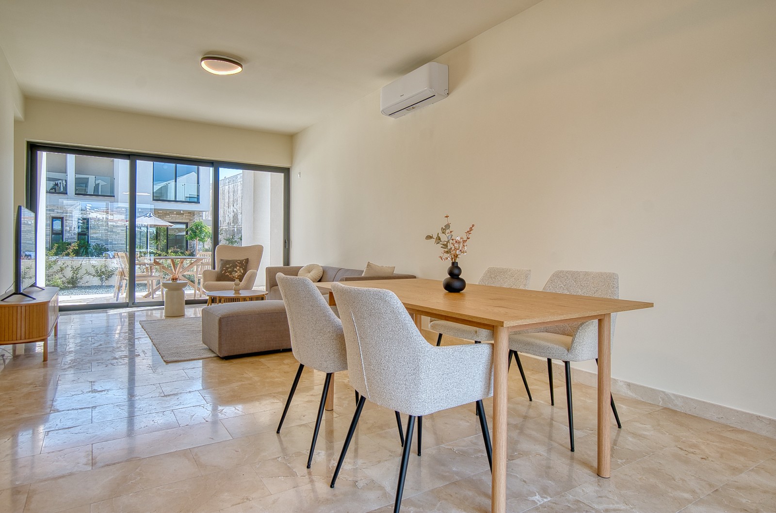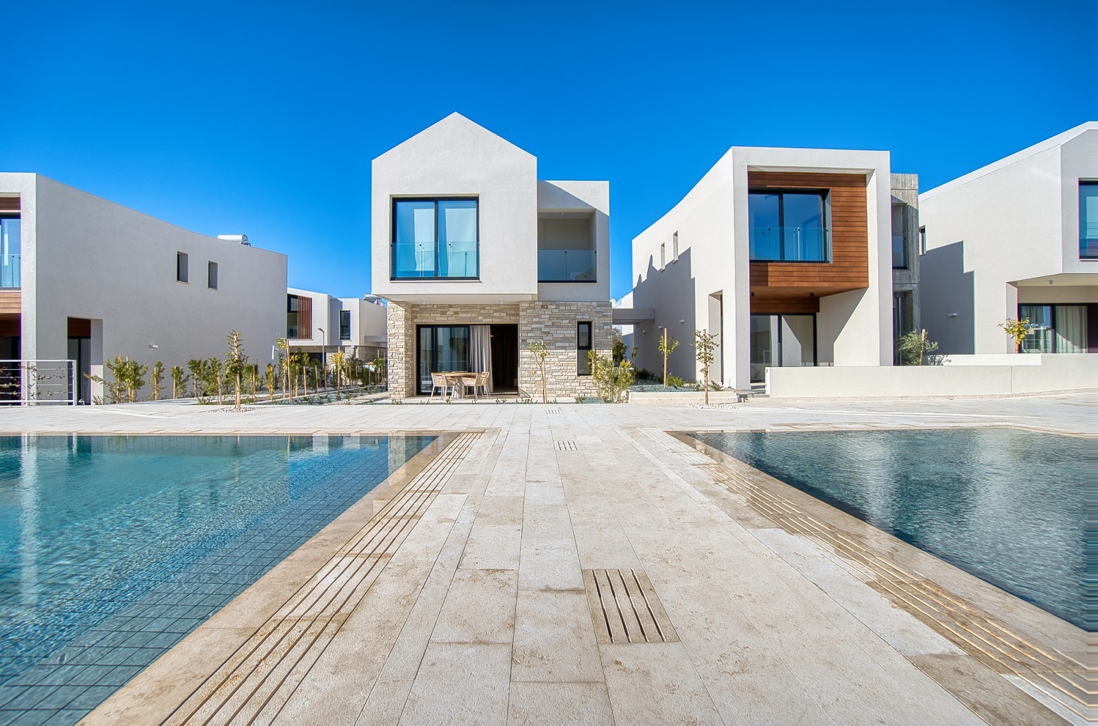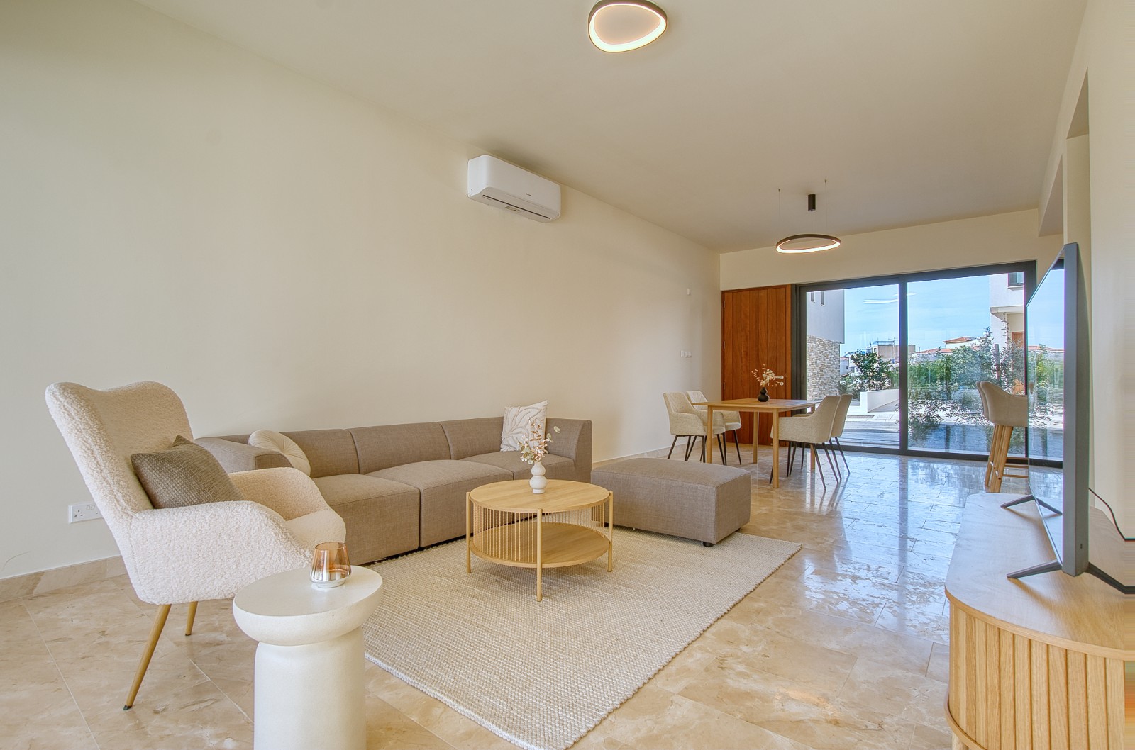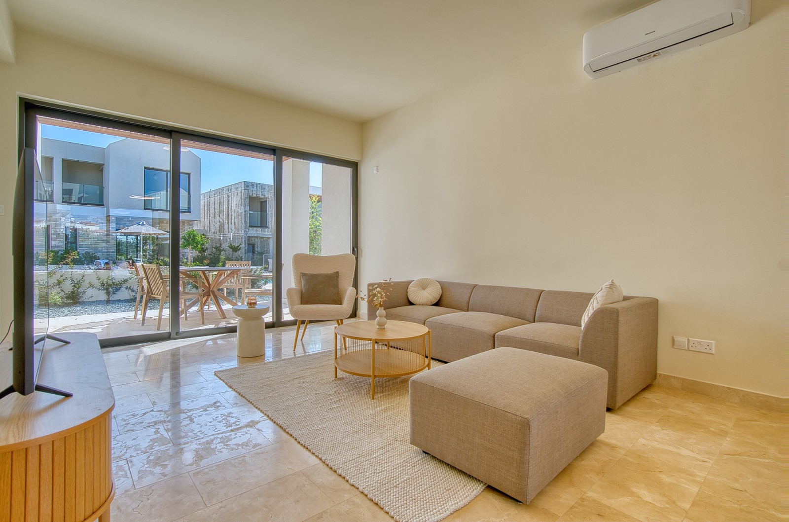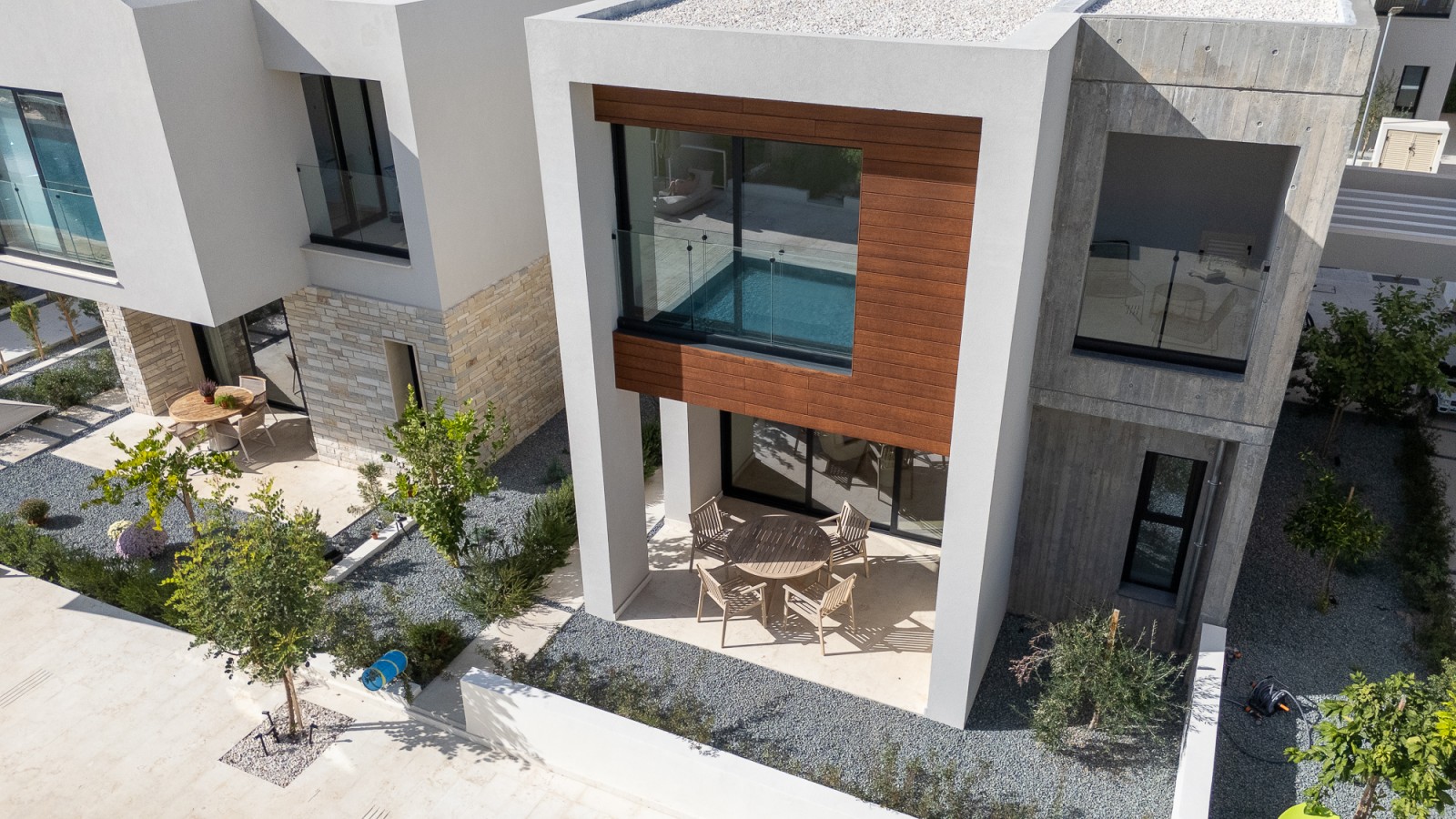 Three bedroom villa for rent in the area of Empa, Paphos. A brand new villa of 159 m2 is located on a plot of 170 m2 in a gated complex built in 2024. The villa is fully furnished and equipped with new appliances, includes three spacious bedrooms, two bathrooms, a guest toilet, an open kitchen and a bright living room with modern finishes. All rooms are equipped with air conditioning, as well as underfloor heating on both levels. There is a private swimming pool, a relaxation area and private outdoor parking. The complex provides a high level of security and offers a clubhouse, a large communal pool for adults and children, and a relaxed family atmosphere. The location is convenient — just a 5-minute drive to the center of Paphos, 10 minutes to the beach and 15 minutes to the airport.