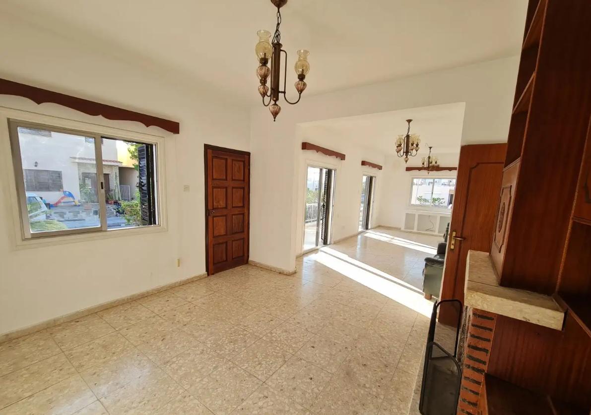 Three bedroom house for rent in the area of Anavar, Paphos. The spacious and bright 400 m2 house is located in a quiet area. The house has three bedrooms, two bathrooms, one enclosed garage, one indoor and two outdoor parking spaces. There is a garden with swings, an oven, a barbecue and a storage room. Air conditioners are installed in all rooms. The house is unfurnished .