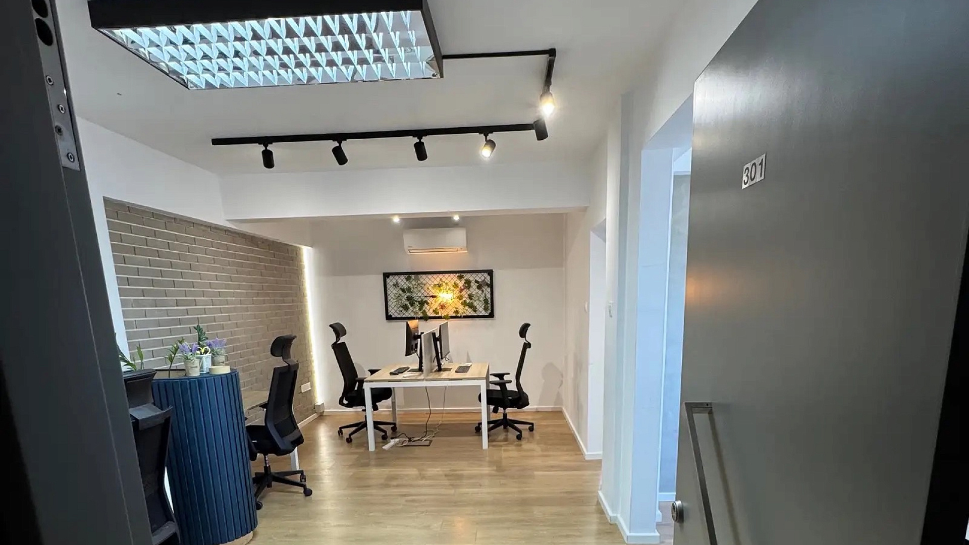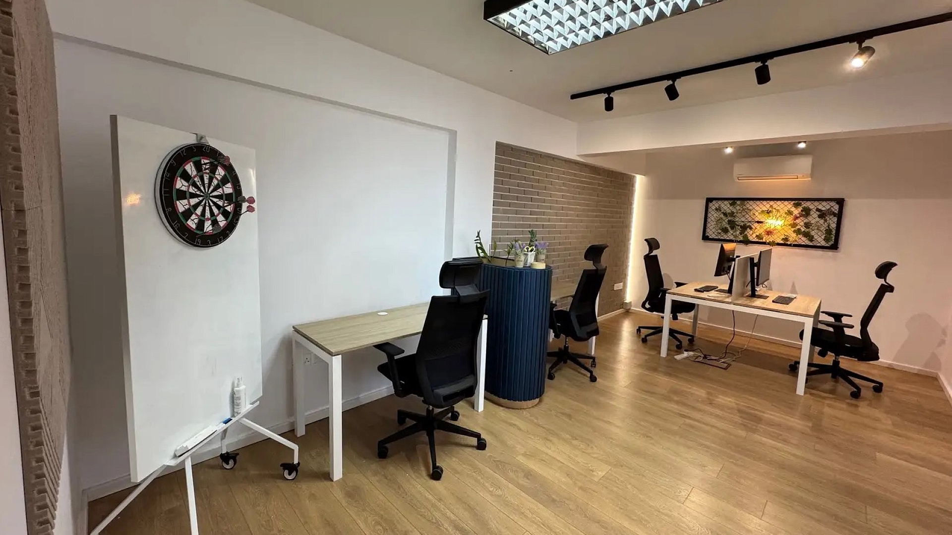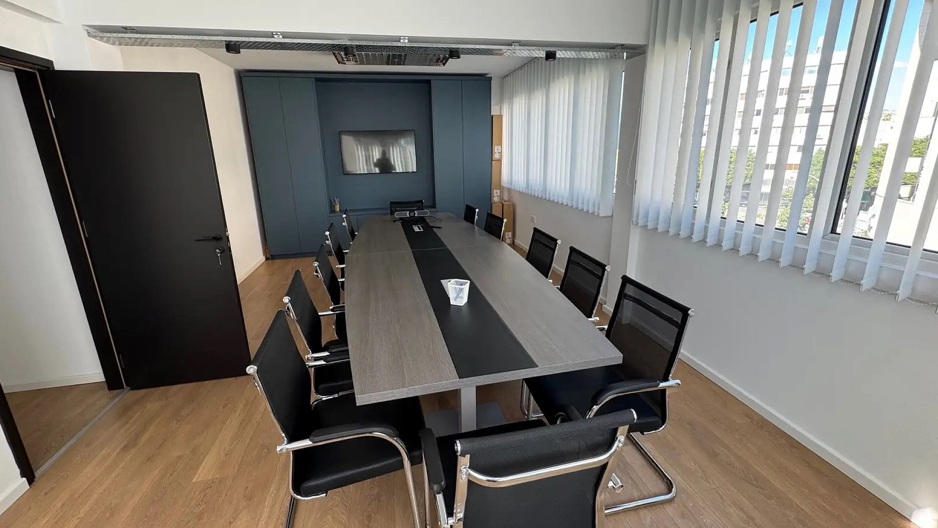 For rent two fully furnished offices with a total area of 120 m2 in Agia Zoni, Limassol. The offices are located in a modern building with an elevator, parking and an alarm system, and have a high energy efficiency class A. The first office (No. 301) with an area of 81 m2 can accommodate 8 employees and includes 8 spacious workstations with ergonomic chairs, 2 conference tables for 8-10 people, a separate kitchen and 1 bathroom. The second office (No. 302) with an area of 38 m2 accommodates 6 people, is equipped with 6 desks with chairs, a high table with stools, 3 cabinets, a kitchen and 1 bathroom. Both rooms are fully furnished and ready for use, decorated in a modern style with large windows and natural light, creating a comfortable working atmosphere. The offices are ideal for companies looking for a flexible professional space in the center of Limassol, close to urban infrastructure and major business areas.