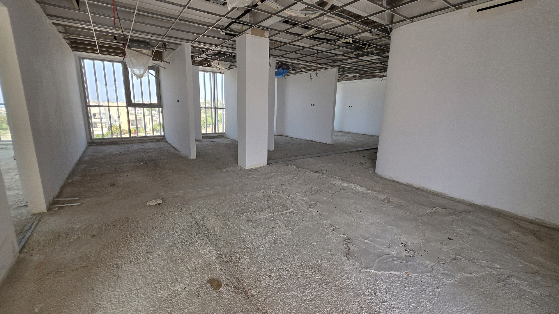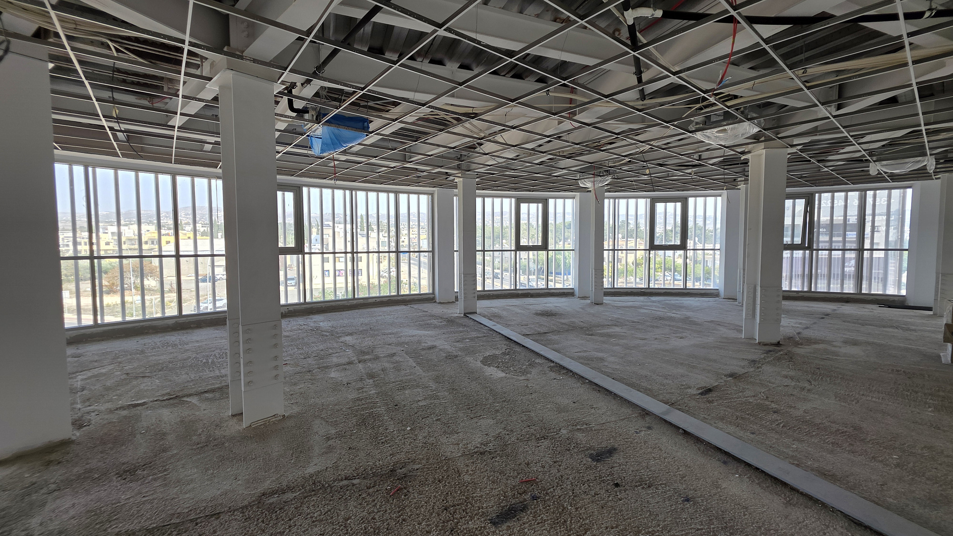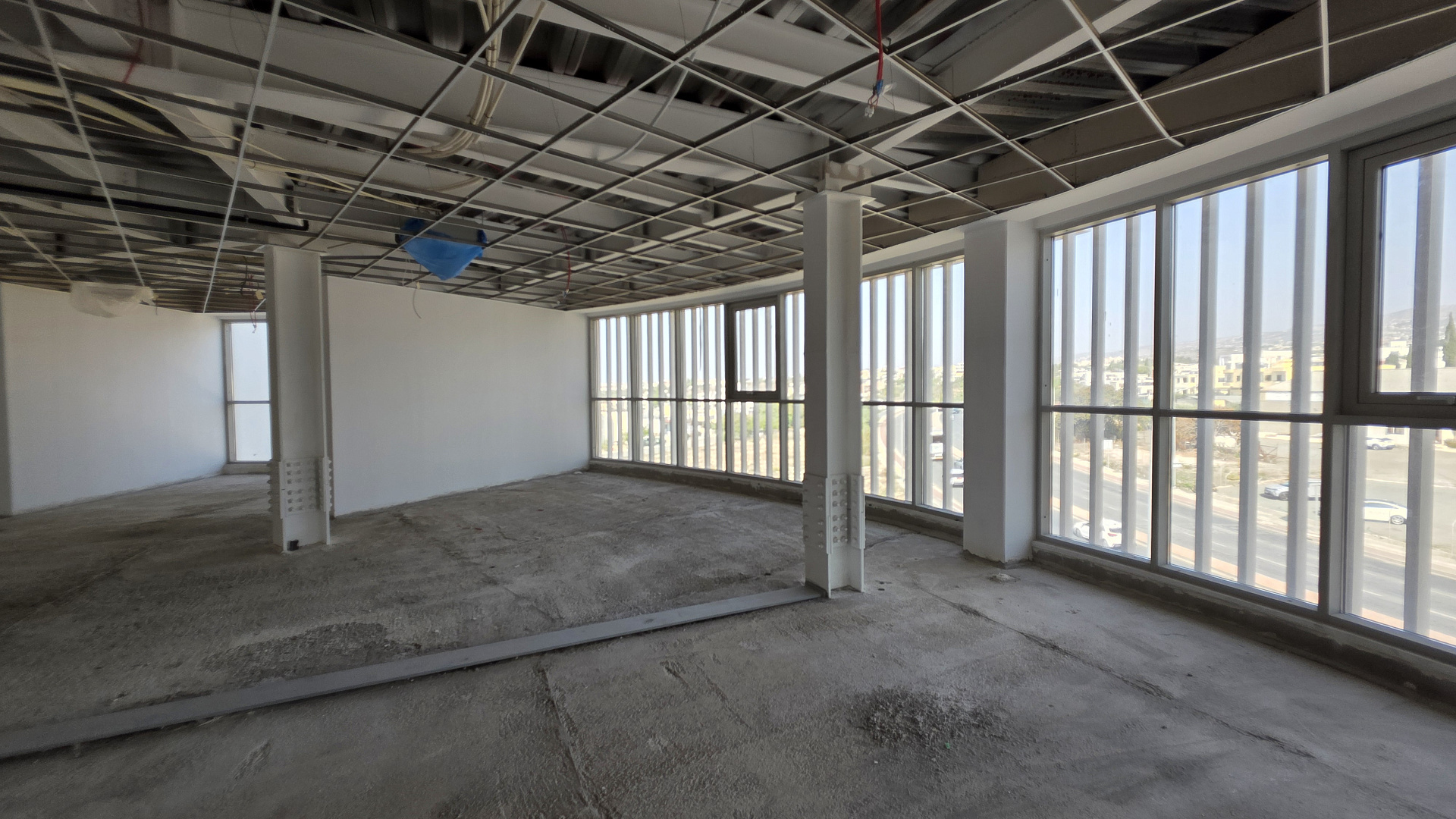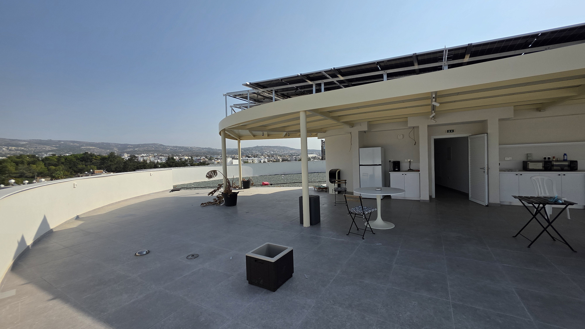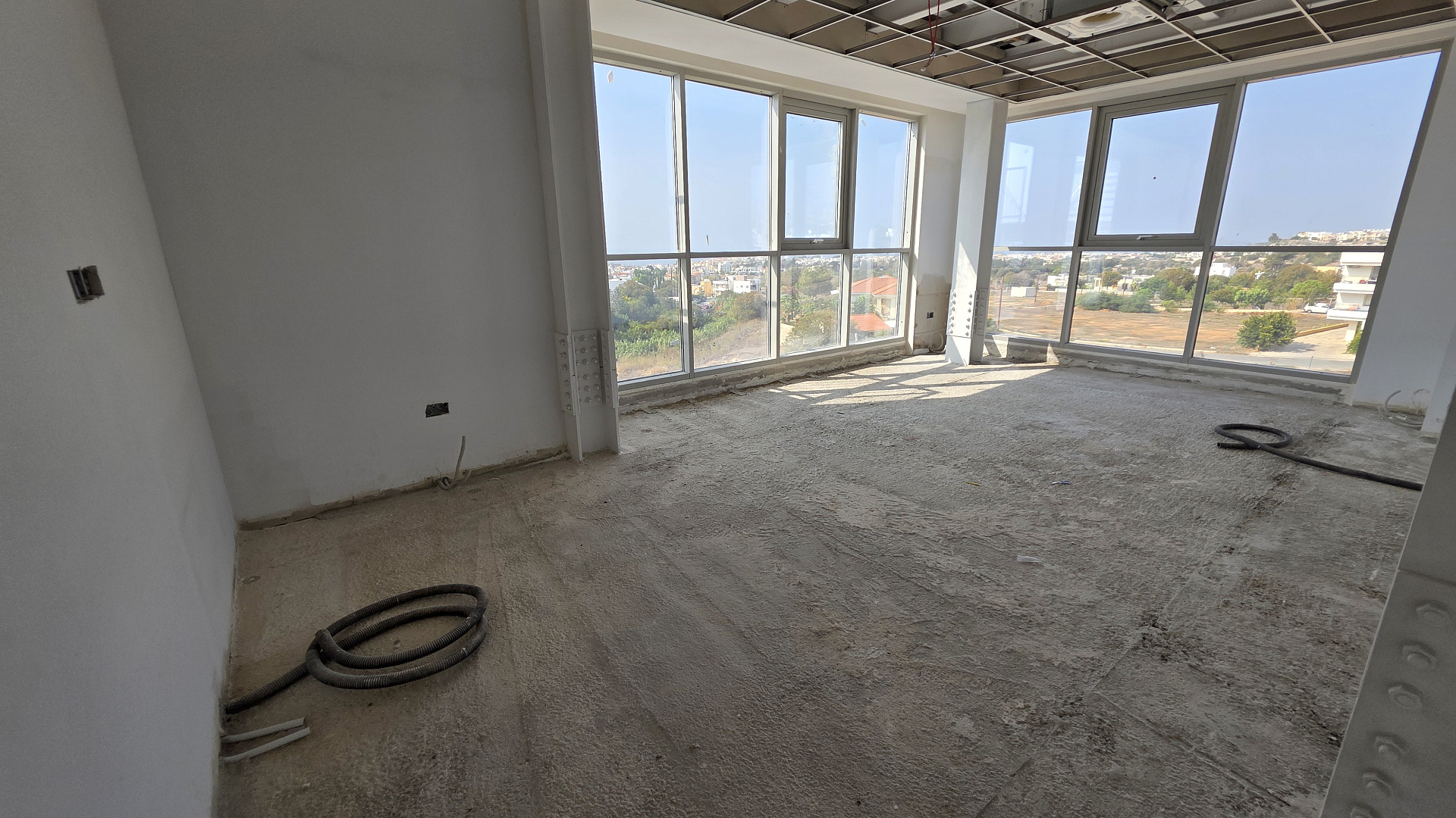 For rent the 3th floor of an office building with an area of 600 m2 in the area of Anavar, Paphos. The room is located in a modern new five-storey business center, designed in an up-to-date architectural style with panoramic windows and a high level of energy efficiency). The office floor includes spacious open-plan rooms, offices with partitions, a conference room, a kitchen area and a lounge area. The rooms are characterized by excellent natural lighting, modern engineering systems and raised floors for convenient wiring of communications. The tenants have at their disposal a covered parking for 10 cars and access to the roof of the building, where there is a relaxation area with barbecue and panoramic views of the city. The building is located at the Lidl traffic light, next to the general hospital, schools, post office and highway. Just 2 minutes to the center of Paphos, close to public transport and the main commercial areas. Due to its angular location, the facility has high visibility and convenient access for employees and customers.