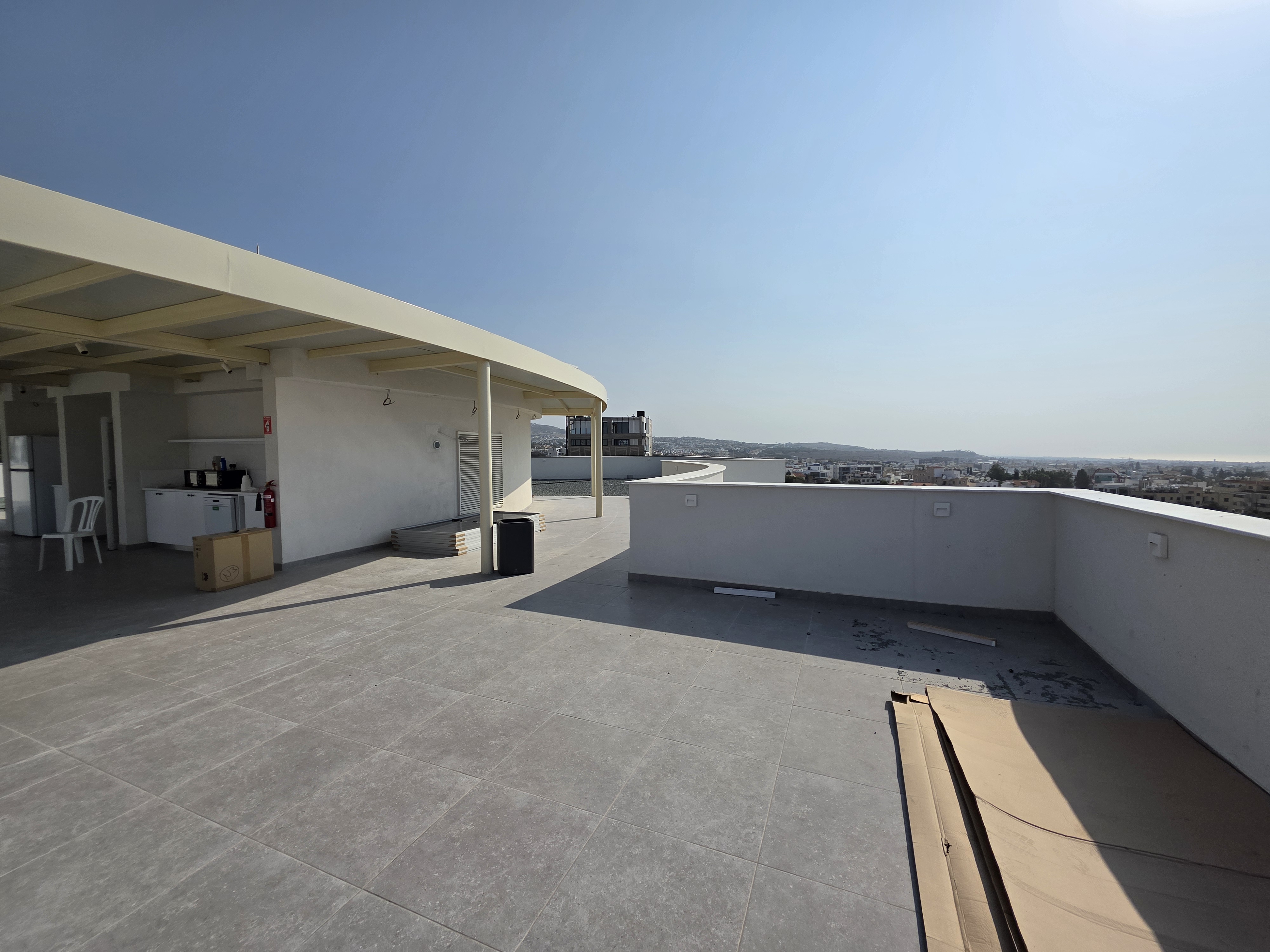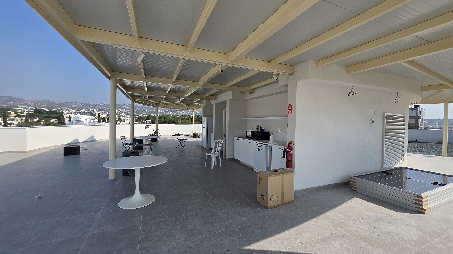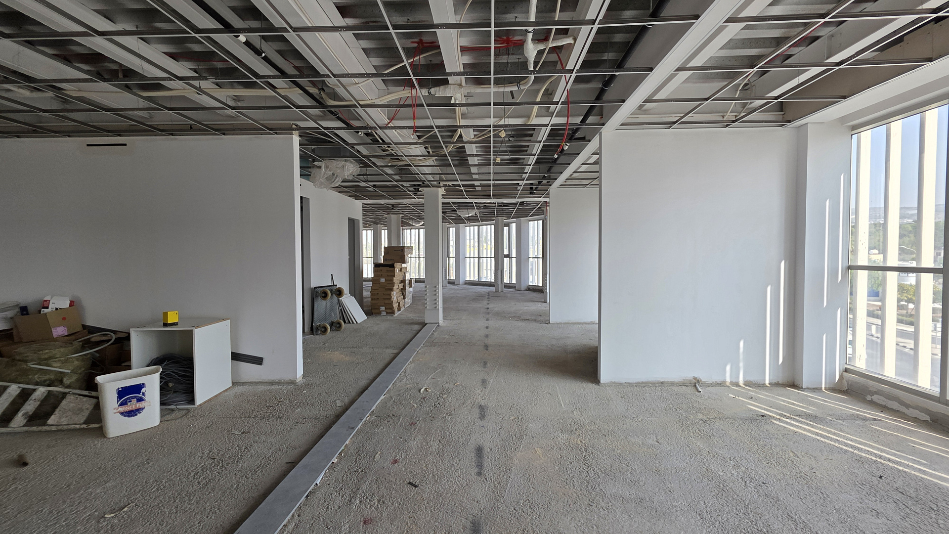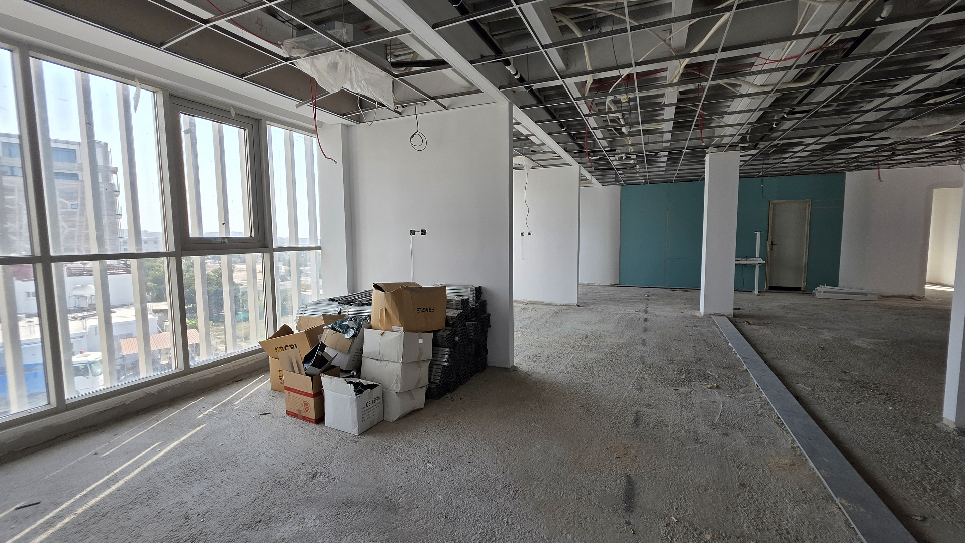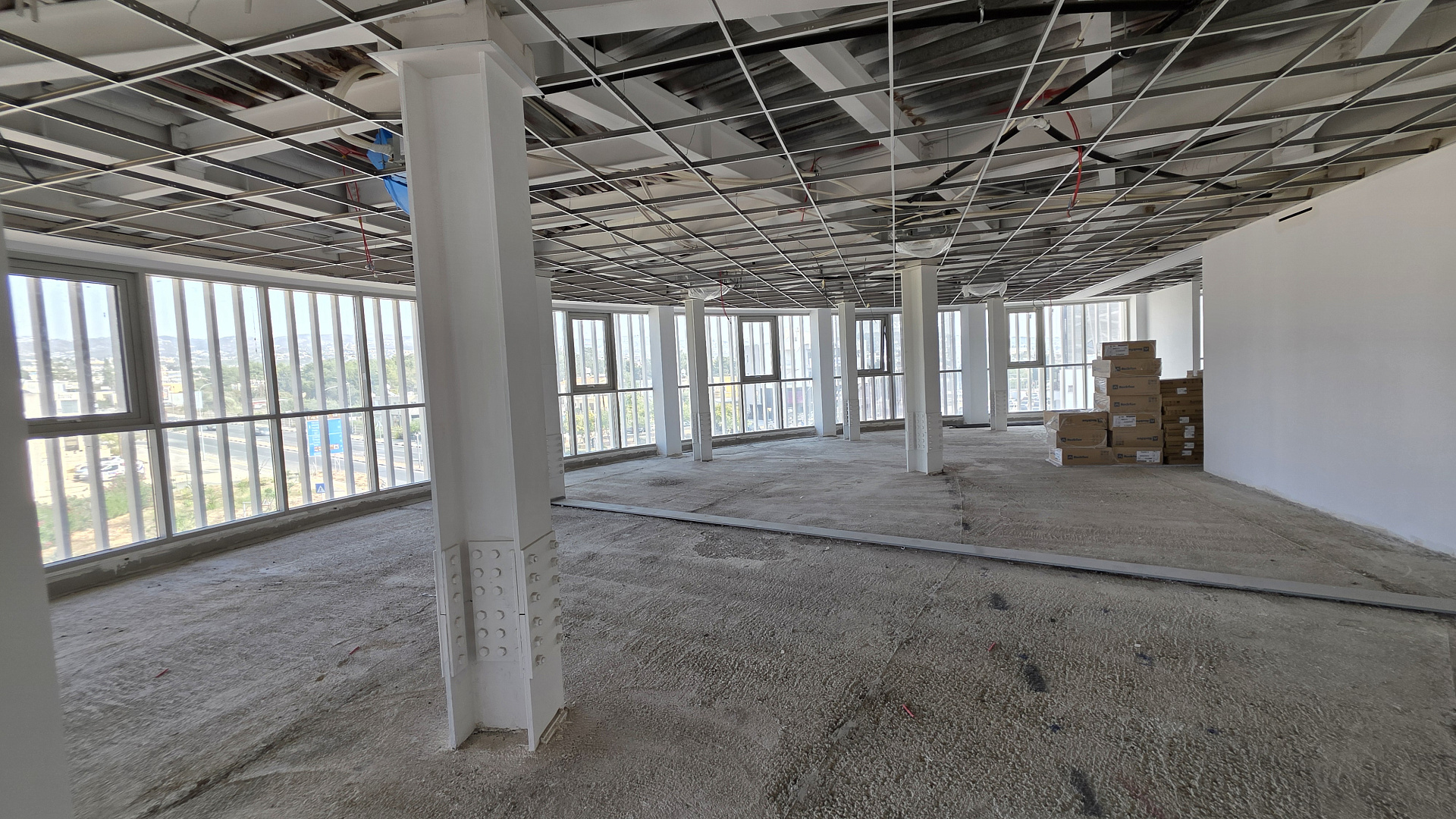 For rent the 3th floor of an office building with an area of 600 m2 in the area of Anavar, Paphos. The room is located in a modern new five-storey business center, designed in an up-to-date architectural style with panoramic windows and a high level of energy efficiency). The office floor includes spacious open-plan rooms, offices with partitions, a conference room, a kitchen area and a lounge area. The rooms are characterized by excellent natural lighting, modern engineering systems and raised floors for convenient wiring of communications. The tenants have at their disposal a covered parking for 10 cars and access to the roof of the building, where there is a relaxation area with barbecue and panoramic views of the city. The building is located at the Lidl traffic light, next to the general hospital, schools, post office and highway. Just 2 minutes to the center of Paphos, close to public transport and the main commercial areas. Due to its angular location, the facility has high visibility and convenient access for employees and customers.