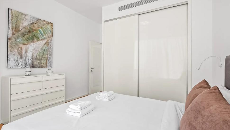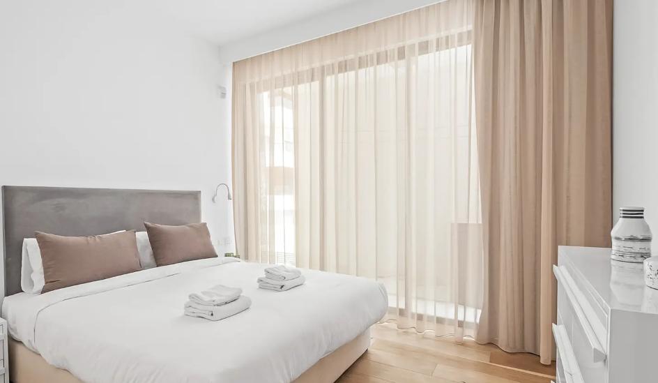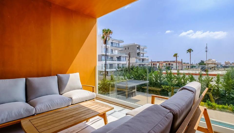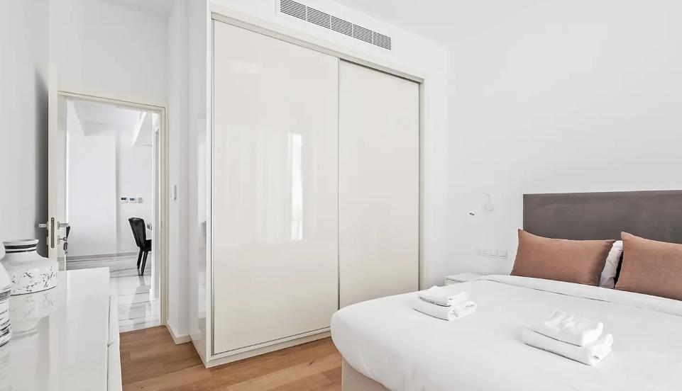 Two-bedroom apartment of 79 m2 for rent in the area of Kato Paphos, Paphos city. The apartments include two bedrooms, two bathrooms, a modern kitchen, a spacious living room and a private balcony with views of the city and the sea. The apartment is fully furnished and equipped with all necessary appliances: Marshall speaker, Smart TV, air conditioners, heating system, dishwasher, refrigerator, oven, hob, extractor hood, microwave, Nespresso coffee machine, electric kettle, washing machine, iron, vacuum cleaner, hair dryer, as well as a full set of dishes, towels and bedding underwear. An alarm system and high-speed Wi-Fi are installed. Residents can use the communal pool, elevator, 24-hour access to the building, as well as private parking and a storage room.