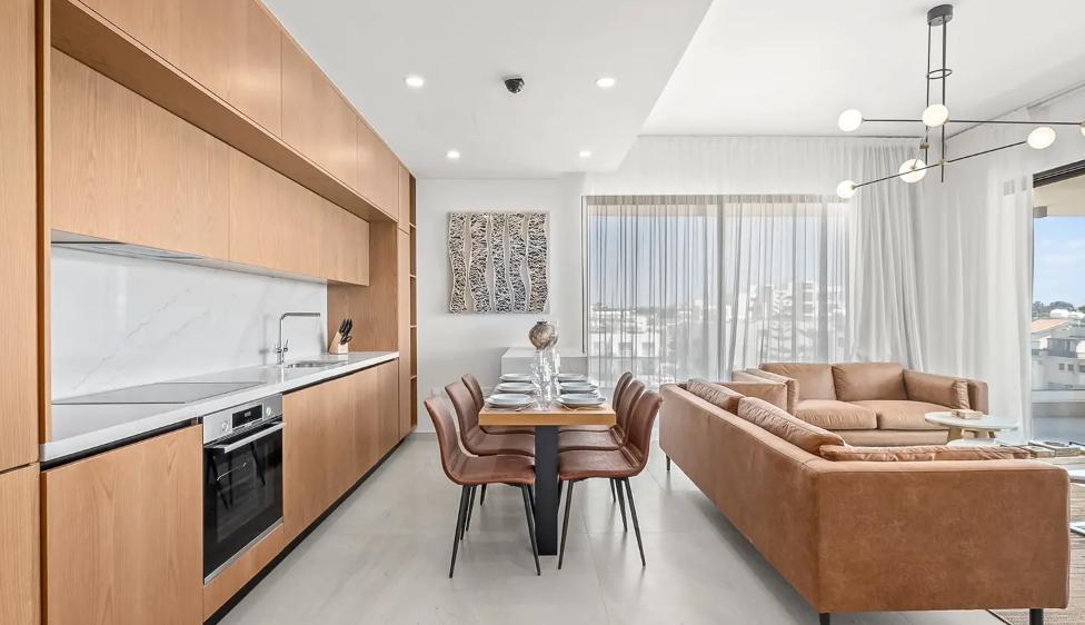 Three-bedroom apartment for rent in a residential complex in the area of Kato Paphos, in the city of Paphos. The apartment has an area of 110 m2, it is fully furnished and equipped with all necessary appliances, including air conditioners, a smart TV, a Marshall system, a Nespresso coffee machine and a dishwasher. The apartment has three bedrooms, two bathrooms, a kitchen, a living room and a balcony overlooking the city. The complex is equipped with an elevator, a swimming pool and a sun terrace, as well as parking. Located in a prestigious area close to shops, cafes and the Paphos business center.
