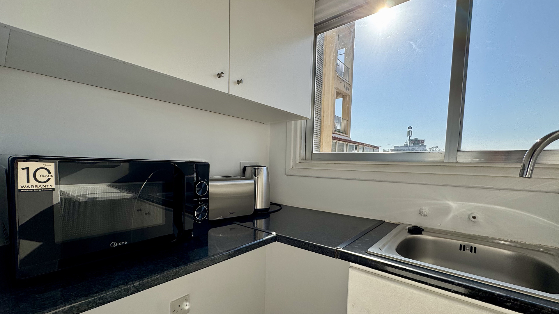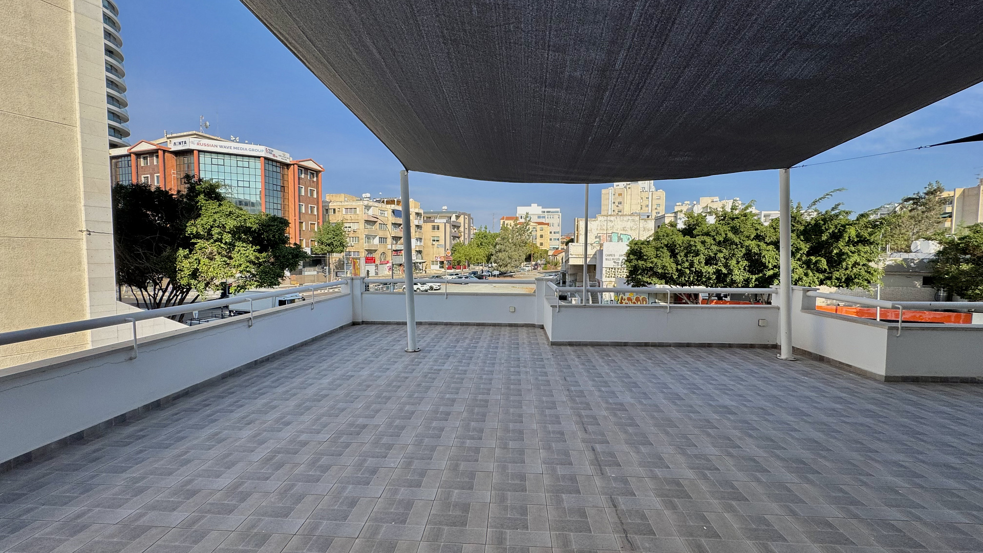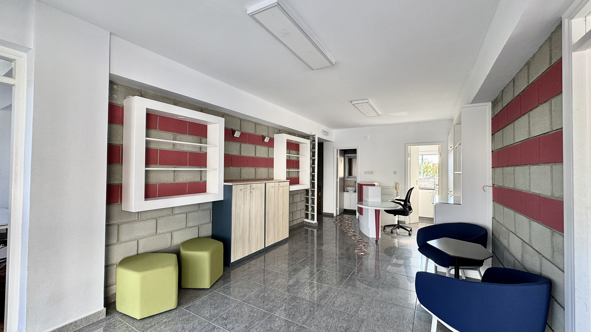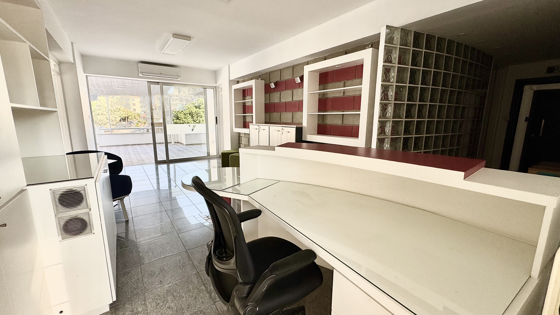 Office for rent with an area of 103 m2 with a veranda of 30 m2, located in the area of Agia Zoni, Limassol. The office space includes a reception area, four separate offices, a kitchen and a toilet. All rooms are equipped with air conditioning and a security alarm. The spacious veranda offers a wonderful view of the city. The office is fully furnished, and the furnishings can be changed at the request of the tenant. Located on the 1st floor of the building, one parking space is included in the rent, and there is also a private parking next to the office.