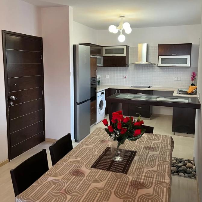 Three-bedroom apartment for rent in the area of Agios Theodoros, Paphos, with a total area of 100 m2. The apartment is located on the third floor, fully furnished and equipped with all appliances, including a dishwasher. There is air conditioning in all rooms, covered parking, elevator and balcony. The location is central, close to all necessary amenities.