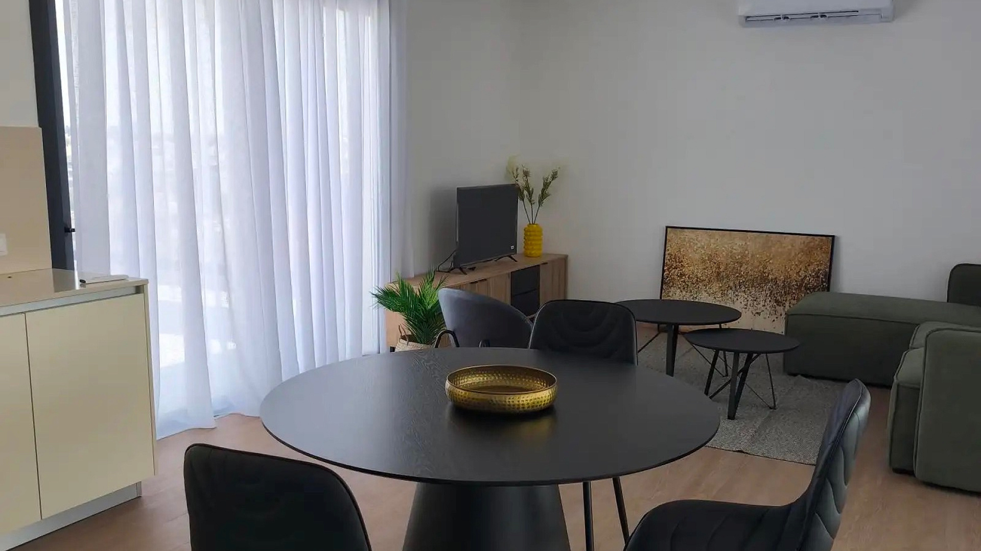 Two-bedroom penthouse of 180 m2 for rent in Egkomi area, Nicosia. The penthouse is located on the fourth floor and includes a spacious living room with an open kitchen, two bedrooms, including the main one with a bathroom, a second bathroom, as well as north and south verandas with a total area of 110 m2. The apartments are fully furnished and equipped with all household appliances, each room has air conditioning. There are two covered parking spaces and a storage room in the underground floor, the building is equipped with an elevator. The penthouse is located in a prestigious area and has magnificent panoramic views of the Troodos and Pentadaktylos mountains, creating an atmosphere of comfort and privacy.