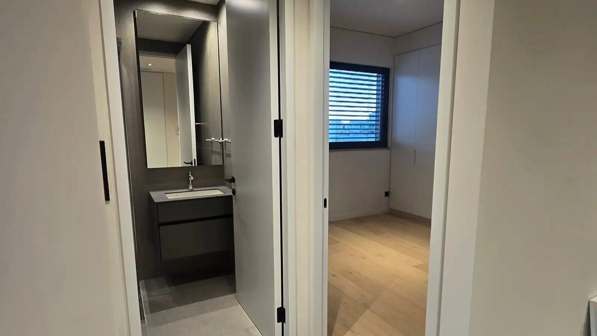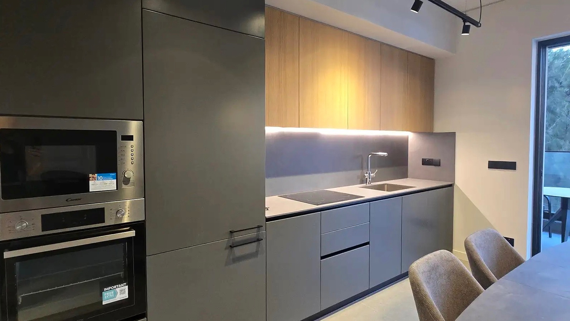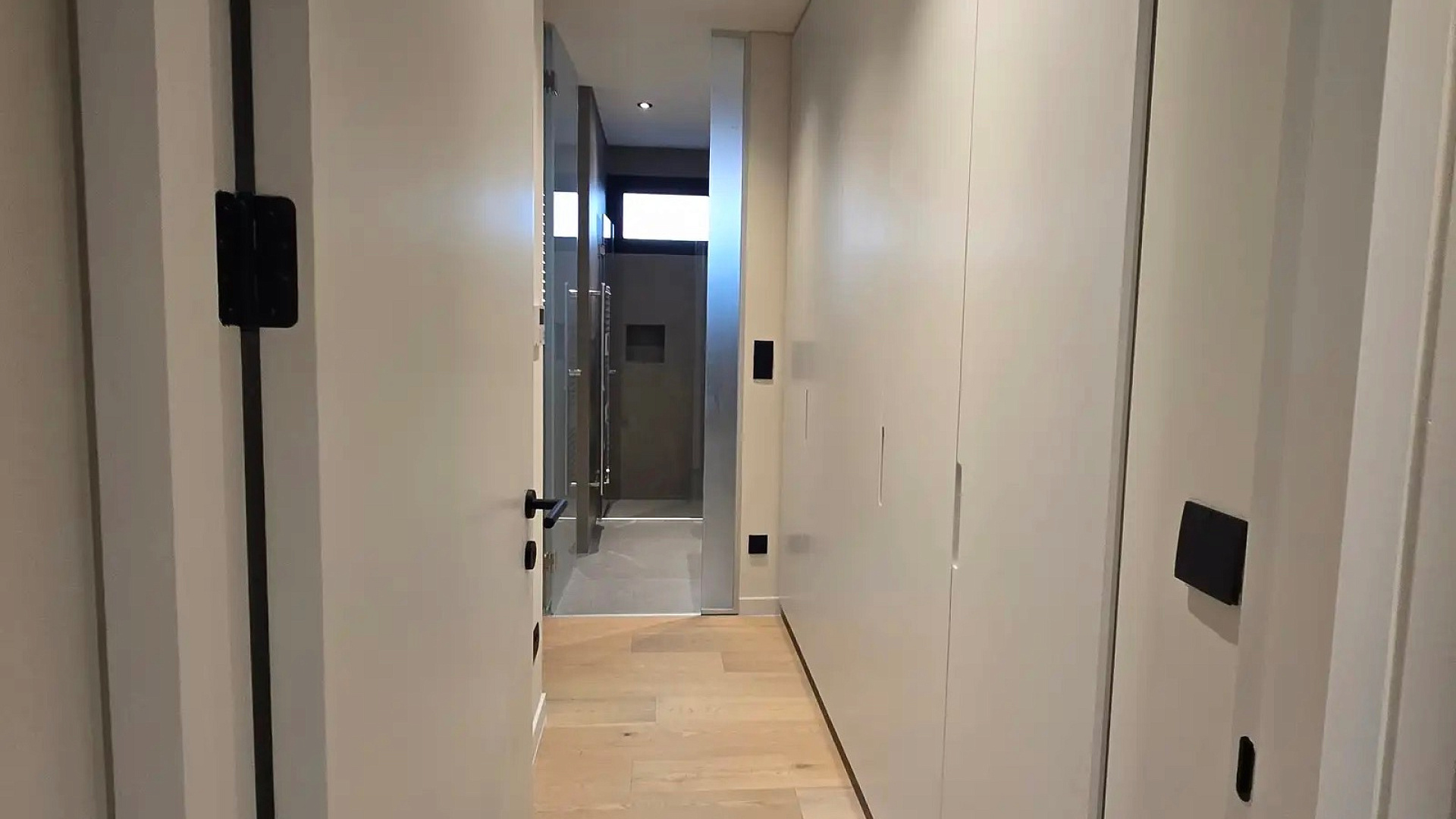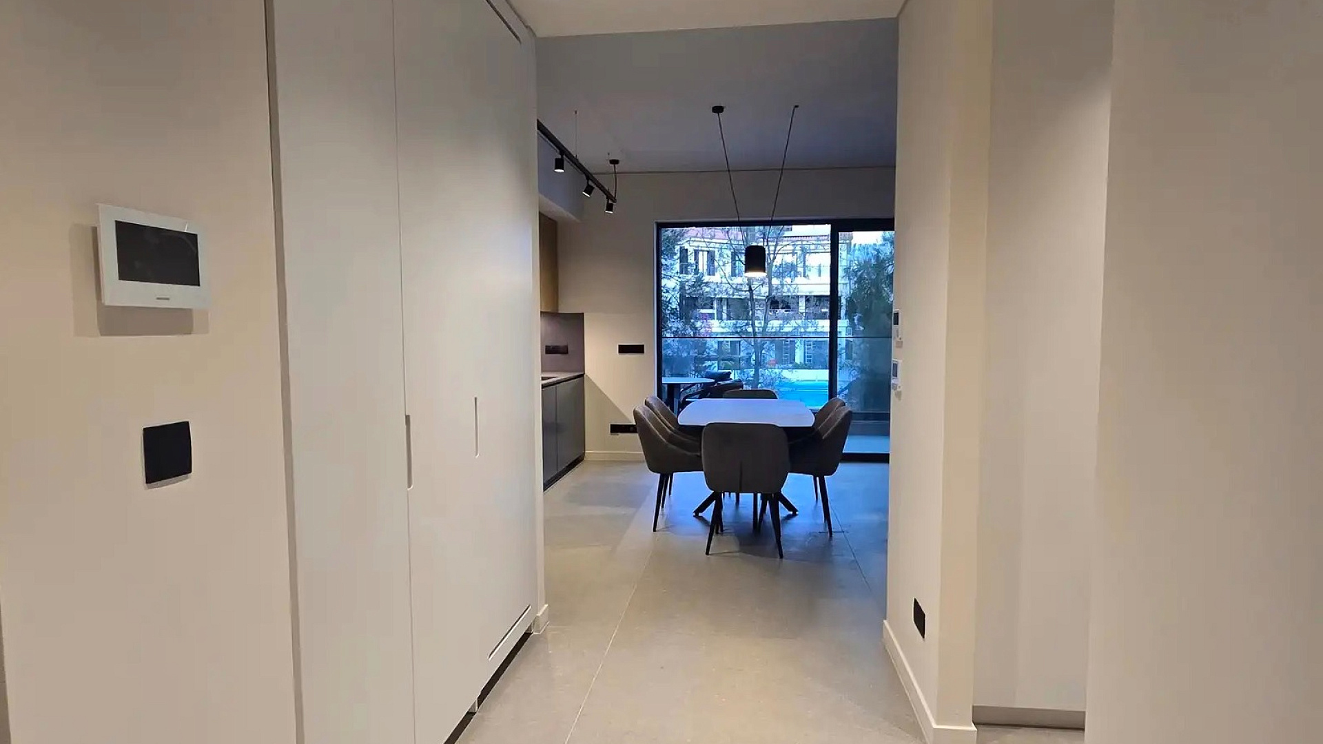 Two-bedroom apartment of 87 m2 for rent in Strovolos – Chryseleousa, Nicosia. The apartment is located on the second floor of a modern building built in 2025 and includes a living room combined with a kitchen and dining area, two bedrooms, two bathrooms, as well as a spacious front balcony of 17 m2 and a side balcony of 3 m2. The apartment is fully furnished and equipped with new appliances: refrigerator with freezer, induction hob, oven, microwave, dishwasher and washer dryer. Air conditioning is installed in all rooms, underfloor heating, double glazing and electric shutters. The complex has an elevator, access control system, covered parking with electronic key access and a spacious storage room. The property is located in a convenient location with quick access to the main roads Athalassas and Strovolou, just a 10-minute drive from the center of Nicosia and the highway to Larnaca/Limassol. Bakeries, pharmacies, cafes, restaurants, gyms, El Greco Medical Center, Makario Hospital, The English School and The Junior School, Pernera Elementary School, Agios Dimitrios and Pedieos Linear Park parks are within walking distance.