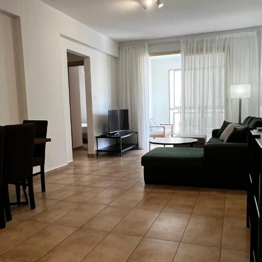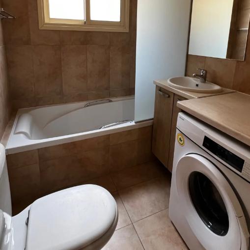 Fully furnished two-bedroom apartment with a total area of 85 m2 for rent in a quiet residential area of Germasogeia, Limassol. The apartment has a spacious living room with an open-plan kitchen, bedrooms, a bathroom, a balcony with a seating area, a storage room and a covered parking. Residents of the complex can use the communal pool and garden.