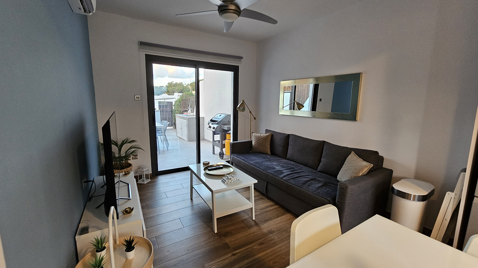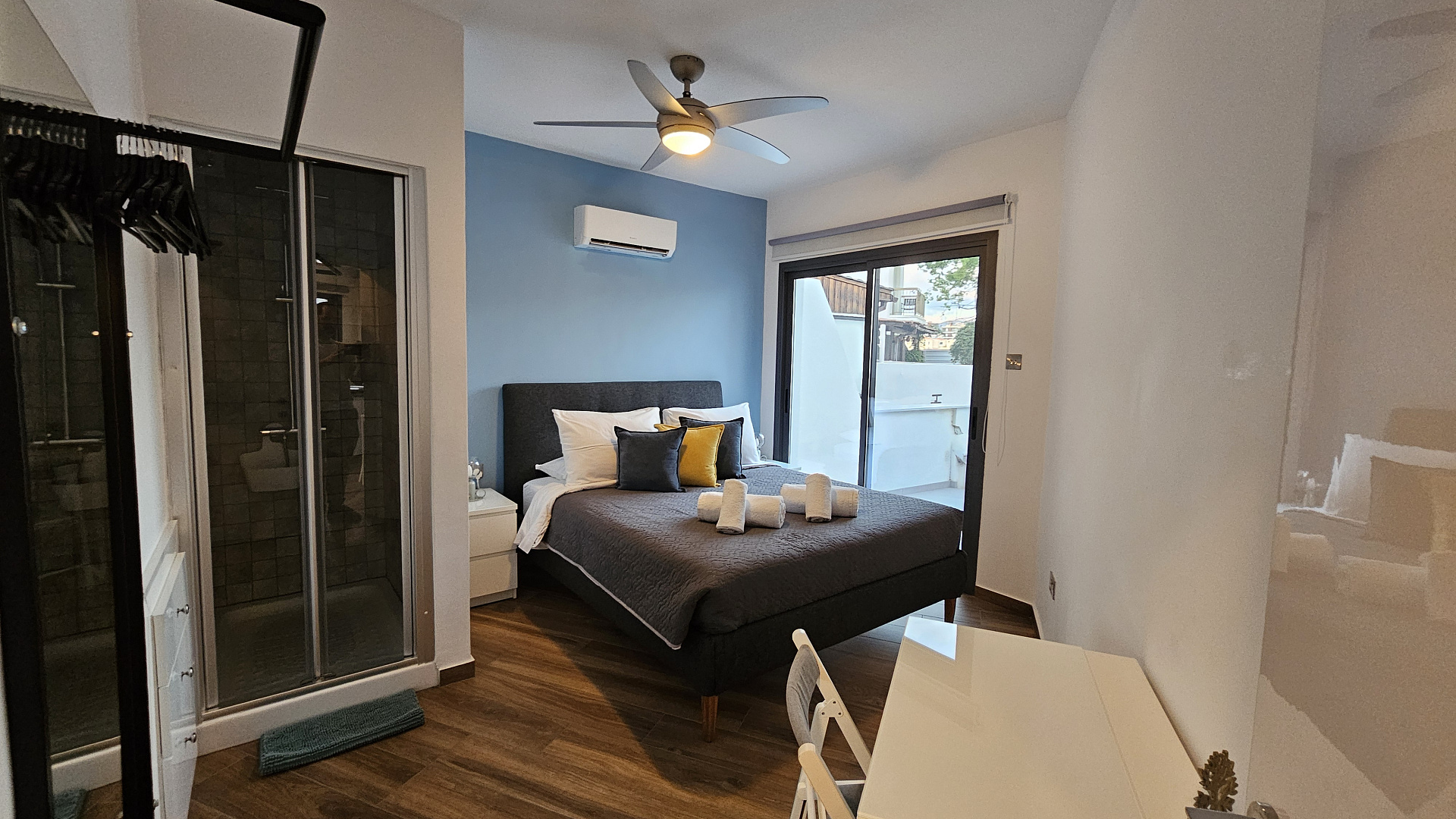 For rent a three-bedroom apartment of 170 m2 in the area of Kato Paphos, Paphos city. The apartment includes three spacious bedrooms, two bathrooms, a kitchen, a living room and a balcony overlooking the garden. The apartment is fully furnished, equipped with all necessary household appliances and an air conditioning system in all rooms. There is access to a communal swimming pool and a well-kept garden, Wi-Fi (Cyta) is provided. The property is located just 150 meters from the sea, next to the Anemi Hotel, within walking distance from the beach and all necessary infrastructure.