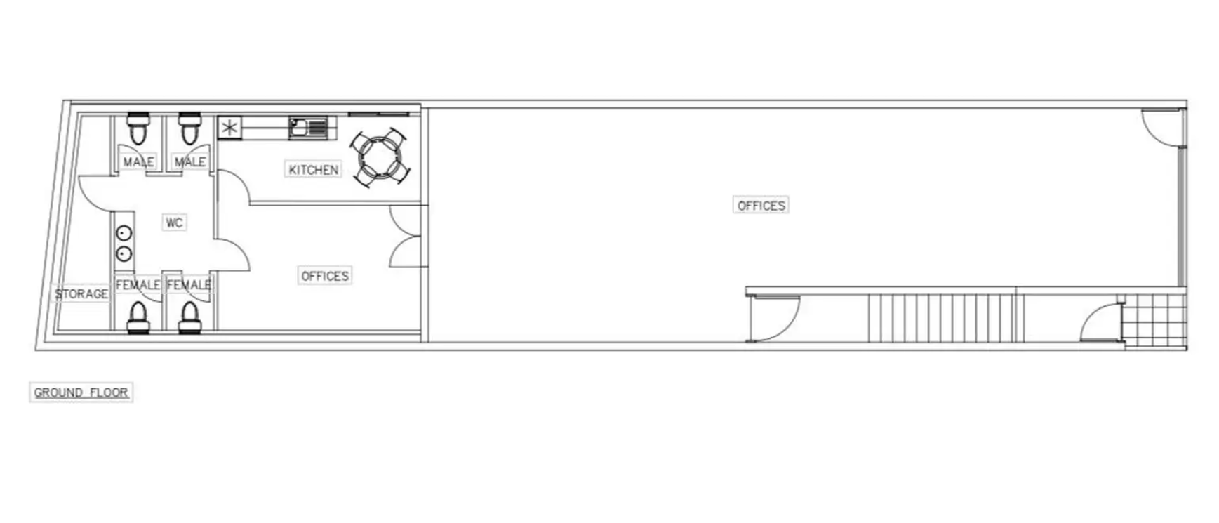 Fully renovated office for rent in the Historical Center area, Limassol, with a total area of 150 m2 on the ground floor. The office is equipped with an air conditioning system throughout the room, a kitchen and 4 bathrooms. There is a sufficient number of public parking spaces in the area. Energy efficiency of building B.