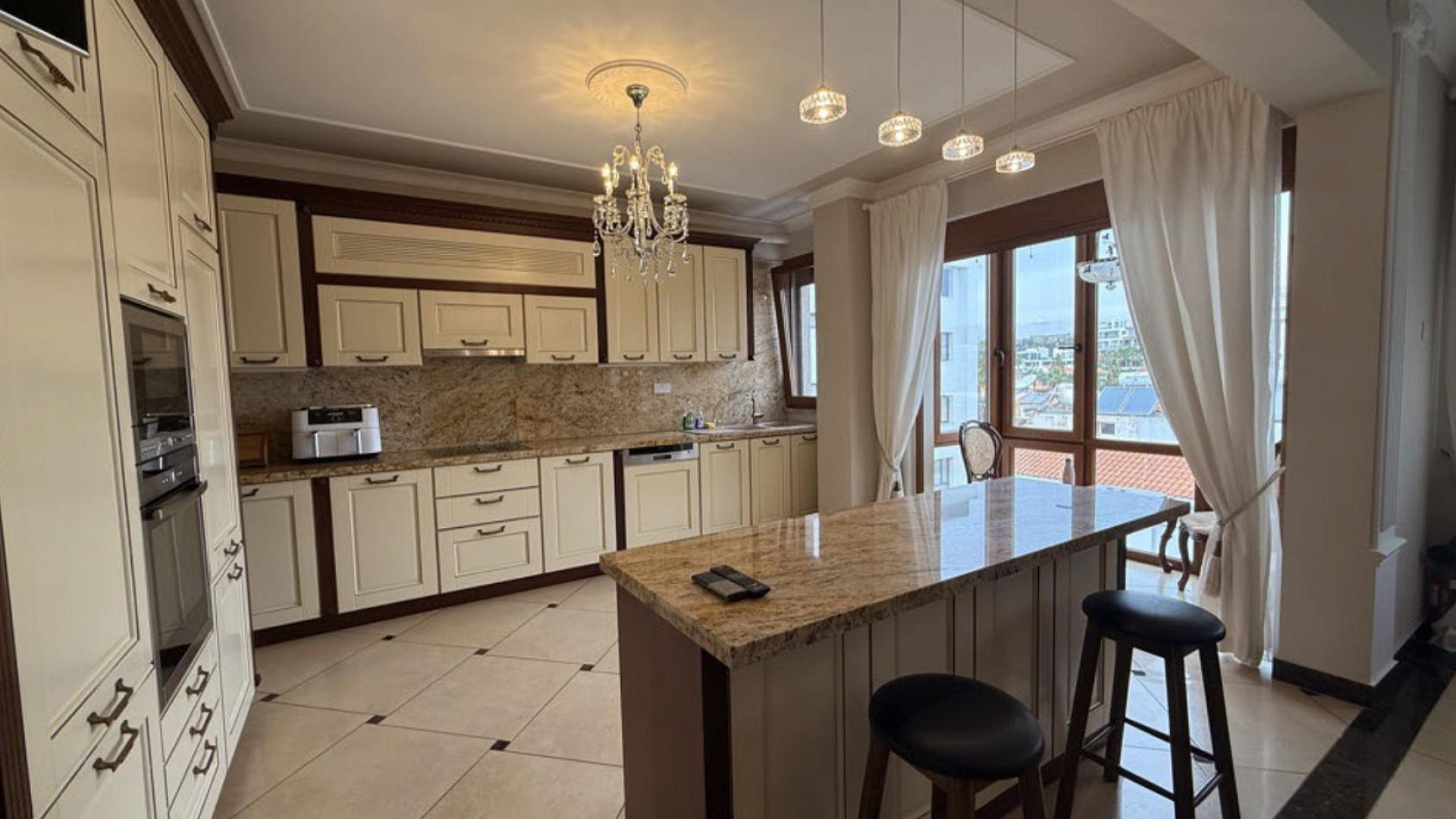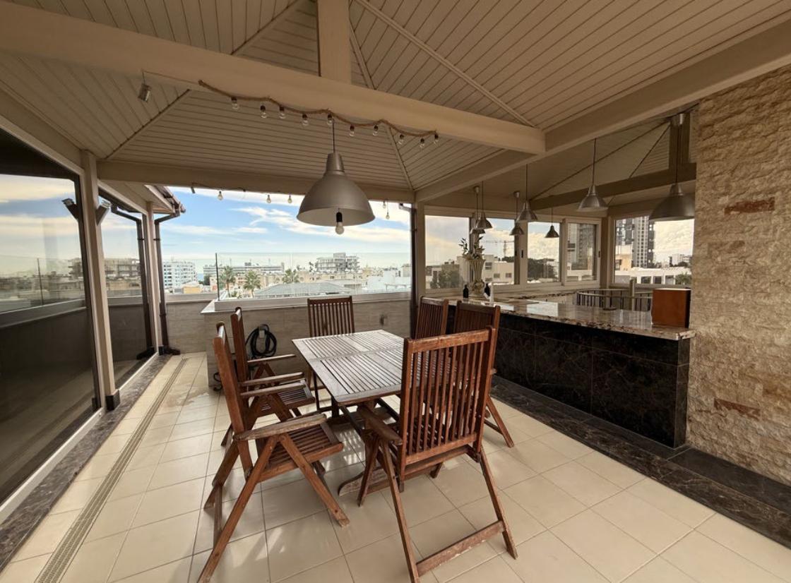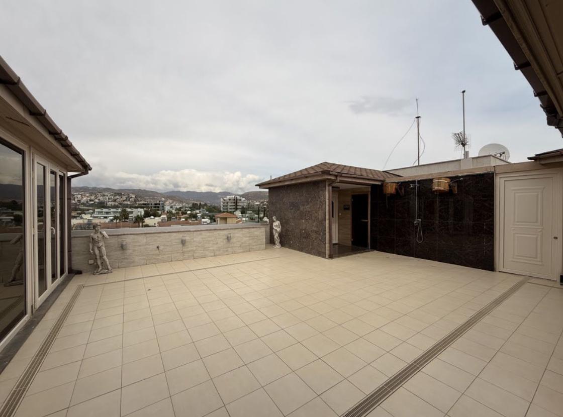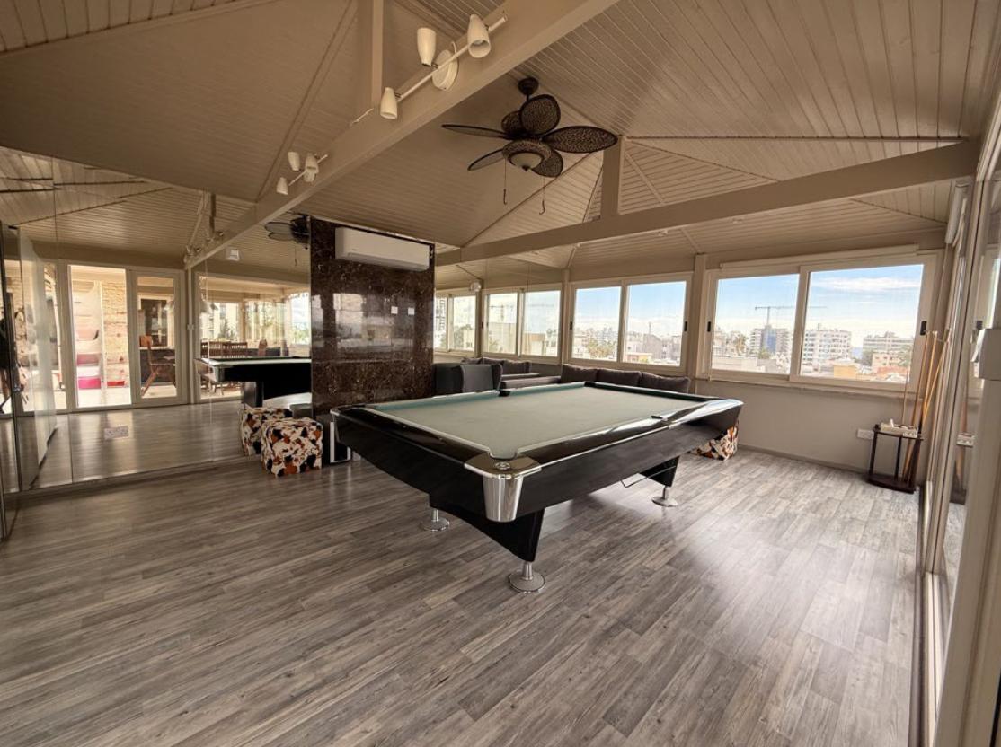 Three bedroom penthouse for rent in Potamos Germasogeias, Limassol. The penthouse includes two separate living areas, a dining room, 3 bathrooms, a rooftop relaxation area, a roof garden, a sauna and a billiard area. The residence is fully furnished with luxury, expensive furniture, is equipped with underfloor heating, a fireplace, and also has a master bedroom with a private bathroom. The property is located in the tourist area of Limassol, within walking distance from the sea, overlooking the mountains. The operated roof has a spacious roof garden with a relaxing relaxation area, and the penthouse includes two parking spaces in the garage.