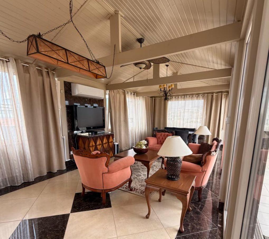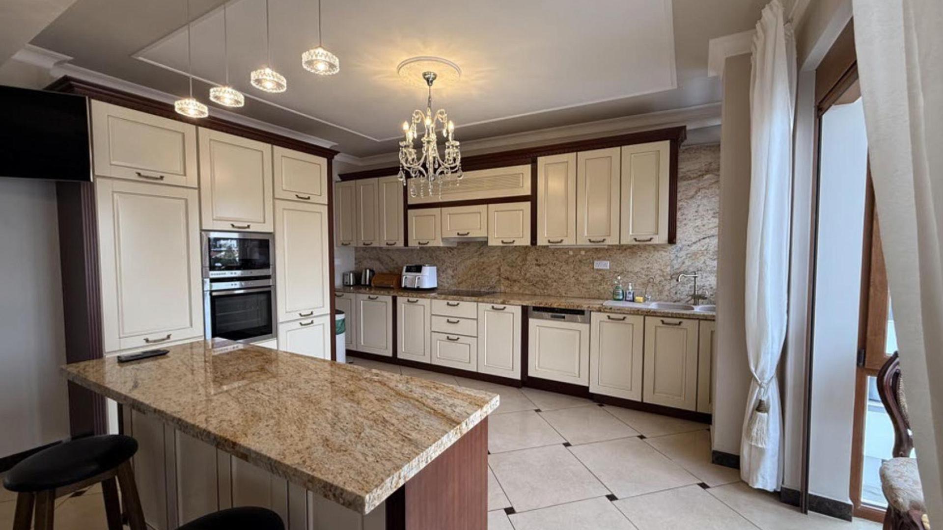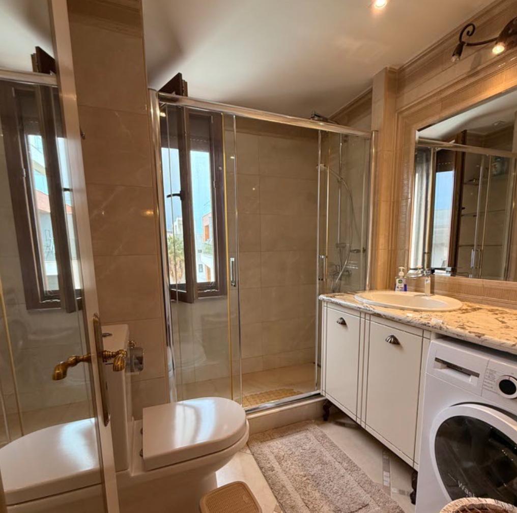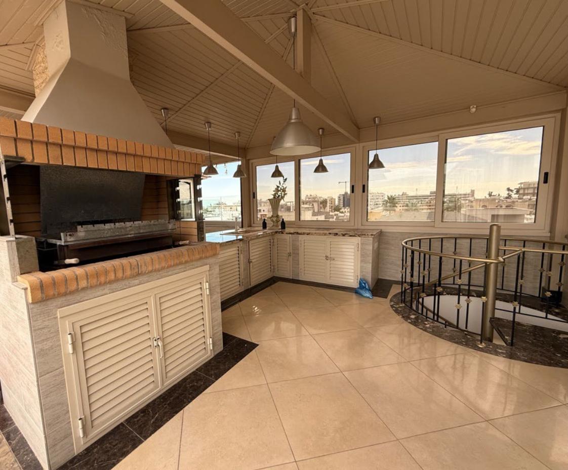 Three bedroom penthouse for rent in Potamos Germasogeias, Limassol. The penthouse includes two separate living areas, a dining room, 3 bathrooms, a rooftop relaxation area, a roof garden, a sauna and a billiard area. The residence is fully furnished with luxury, expensive furniture, is equipped with underfloor heating, a fireplace, and also has a master bedroom with a private bathroom. The property is located in the tourist area of Limassol, within walking distance from the sea, overlooking the mountains. The operated roof has a spacious roof garden with a relaxing relaxation area, and the penthouse includes two parking spaces in the garage.
