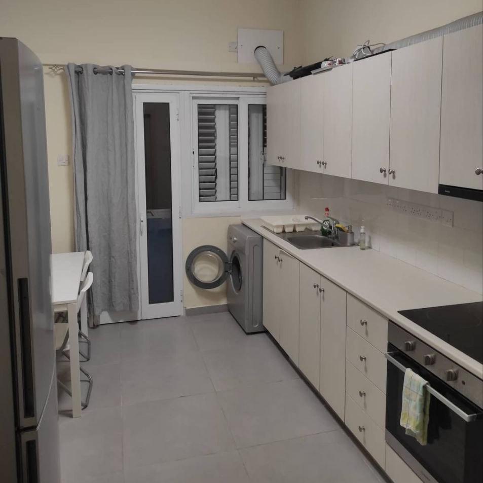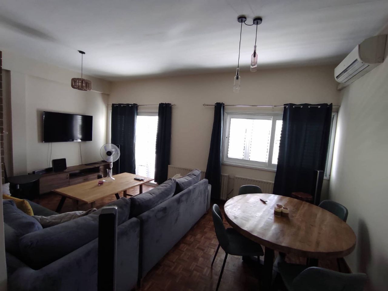 Three-bedroom apartment for rent in Strovolos, Nicosia, with a total area of 110 m2, located on the ground floor, fully renovated and furnished, with three bedrooms, oil central heating, air conditioning in all rooms, fireplace, fully equipped kitchen and balcony. The apartment has two covered parking spaces, access to the garden on the ground floor, as well as a smart TV. The apartment is available for occupancy from February 17th.