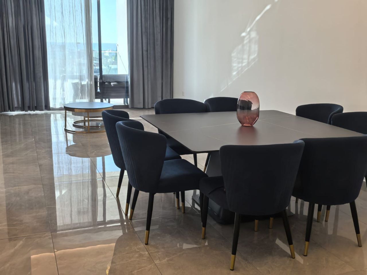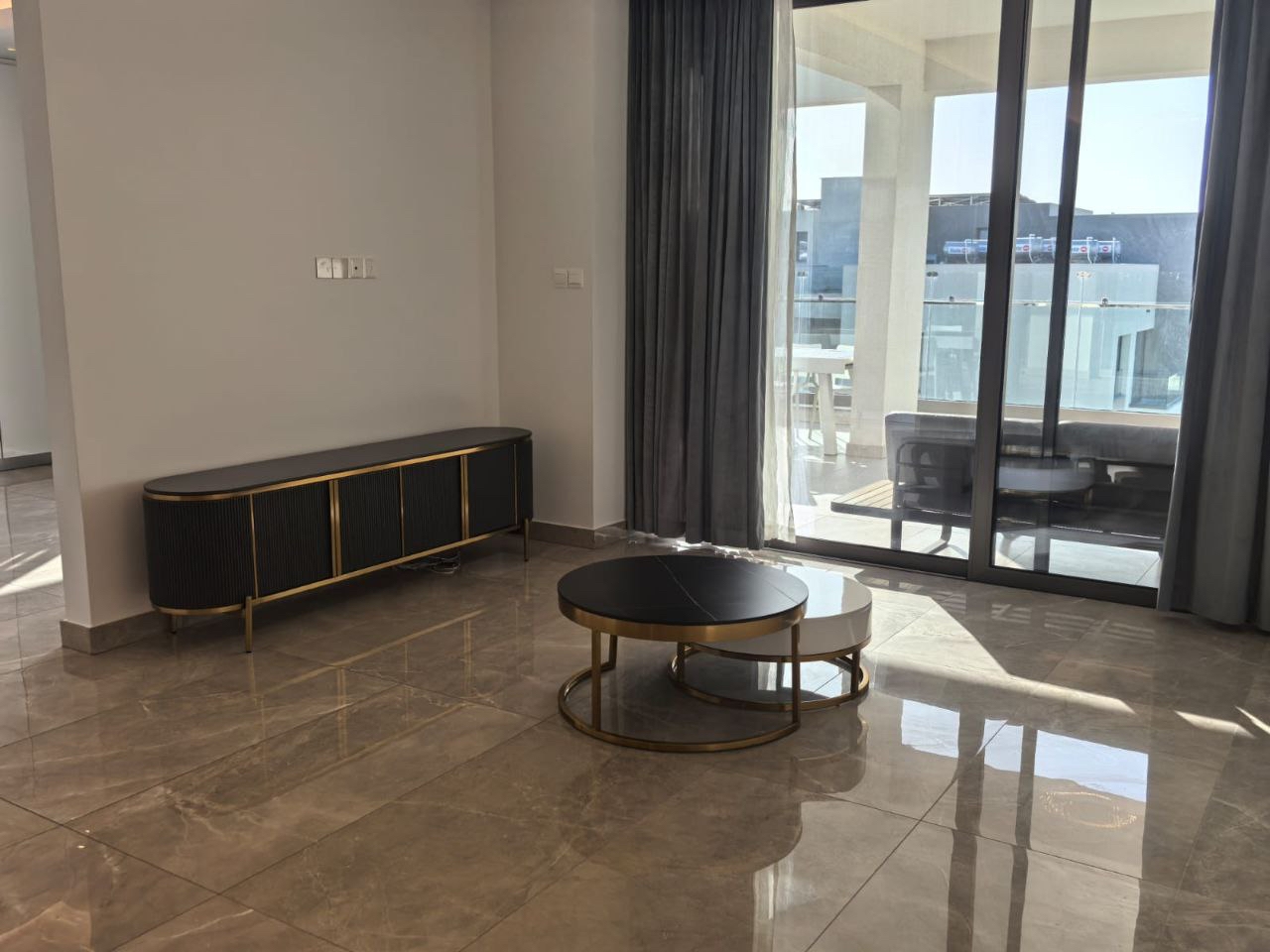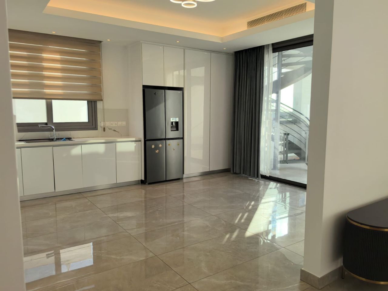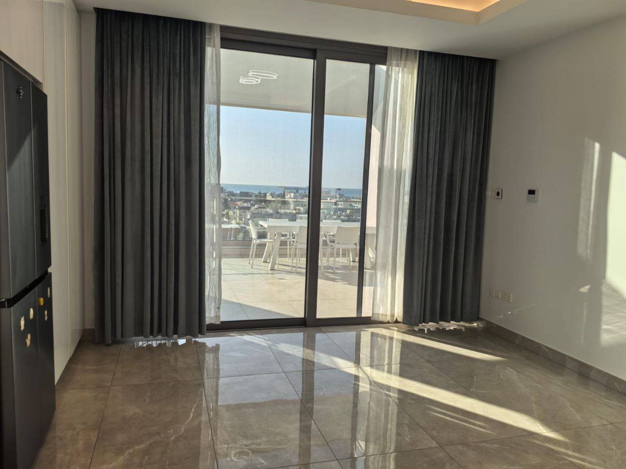 Three-bedroom penthouse of 143 m2 for rent in Germasogeia Columbia, Limassol. The penthouse includes three bedrooms and an additional room, one bathroom, a kitchen, a living room, a covered veranda of 31 m2, a storage room of 34 m2, two covered parking spaces, and an outdoor roof terrace of 124 m2. The total covered area is 231 m2, the total area is 23 m2. The property is equipped with underfloor heating, VRV air conditioning, a private rooftop pool and a gym. The penthouse is located just a 3-minute walk from all necessary amenities.