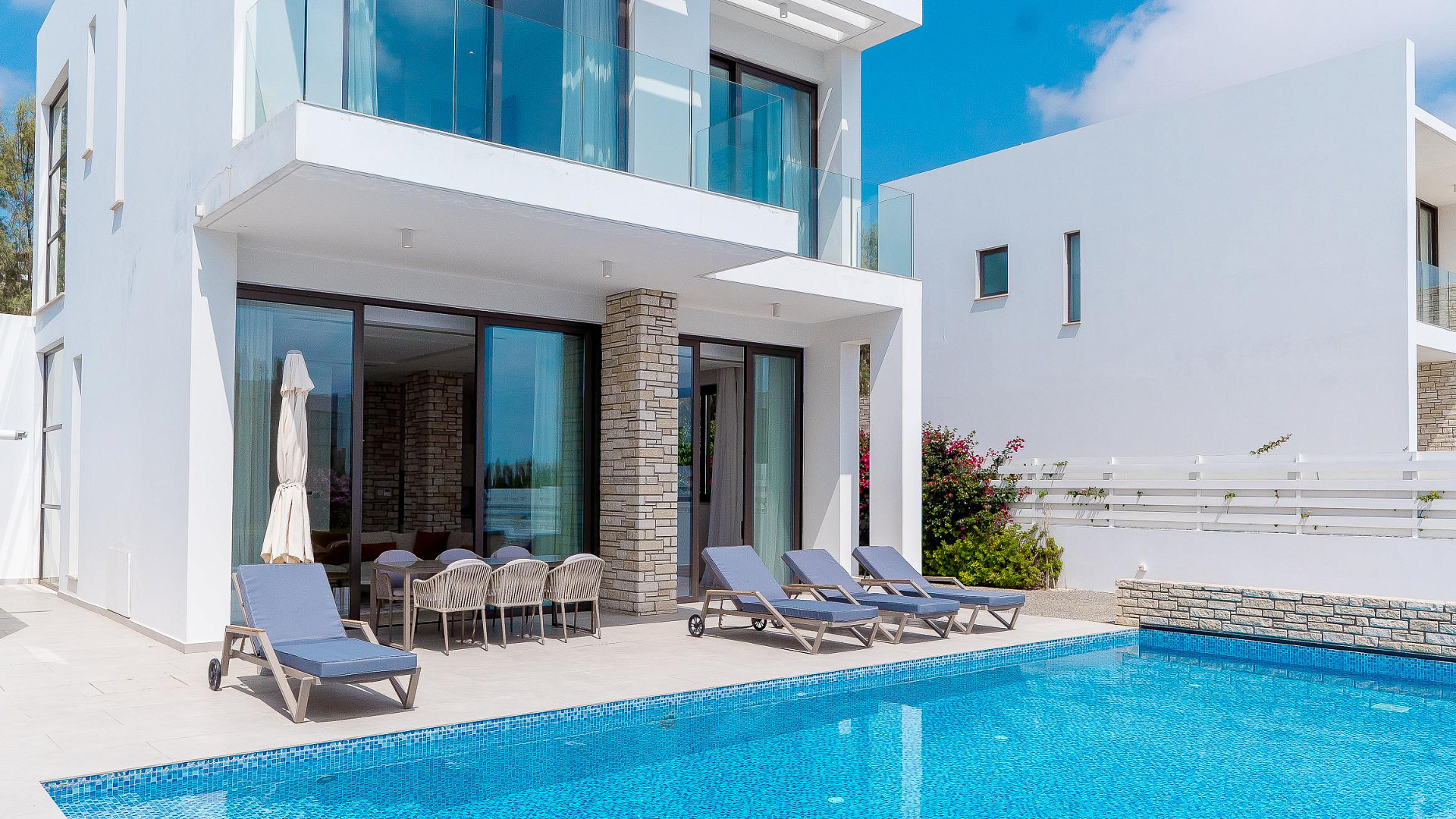 For rent a new villa in a gated complex. Swimming pool, garden, parking. Fully furnished, 150 meters from the sea.