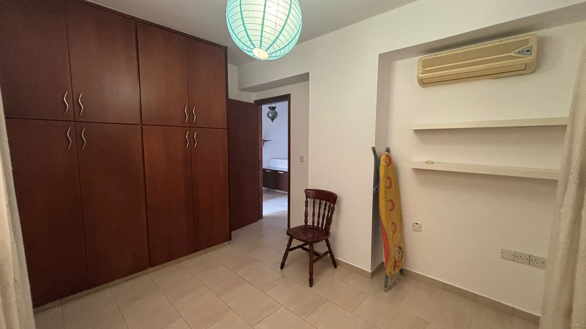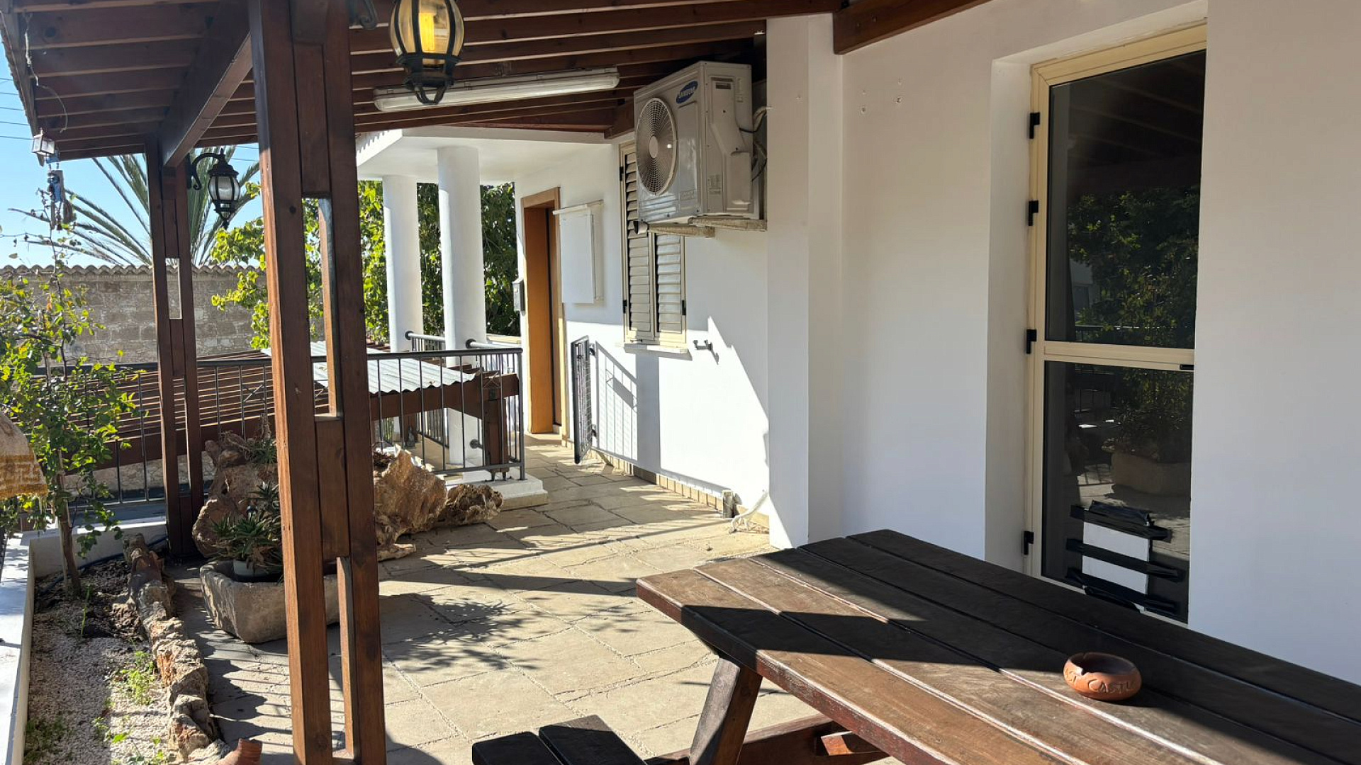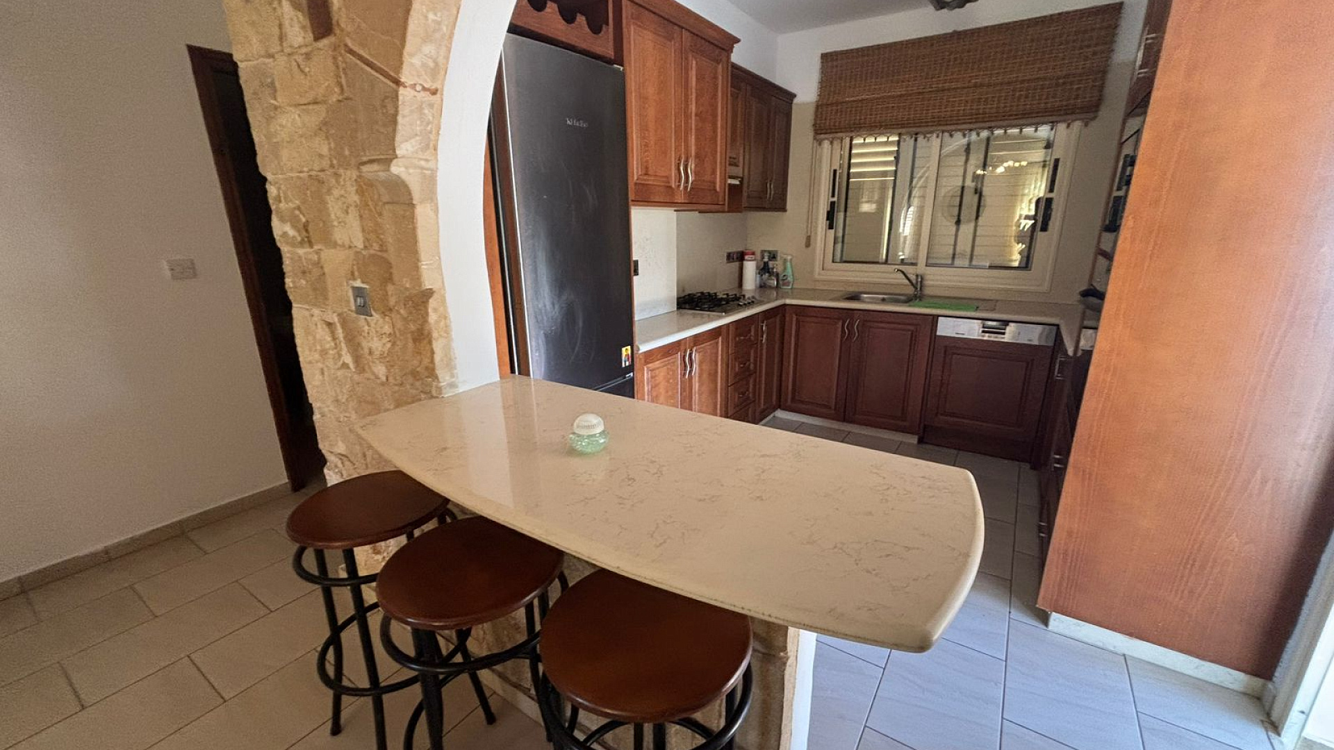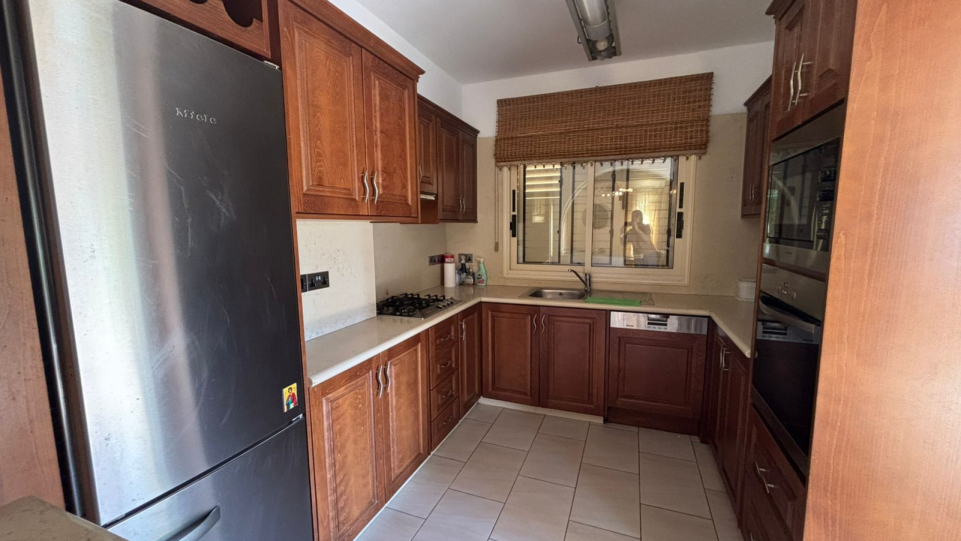 For rent a four-bedroom house with an area of 180 m2 on a plot of 200 m2 in the Tremithousa area, Paphos. The house includes one bedroom on the lower level and three bedrooms on the upper floor, three bathrooms, a kitchen, a living room and a parking space on a plot of 200 m2. The property is fully furnished and equipped with an air conditioning system in all rooms.