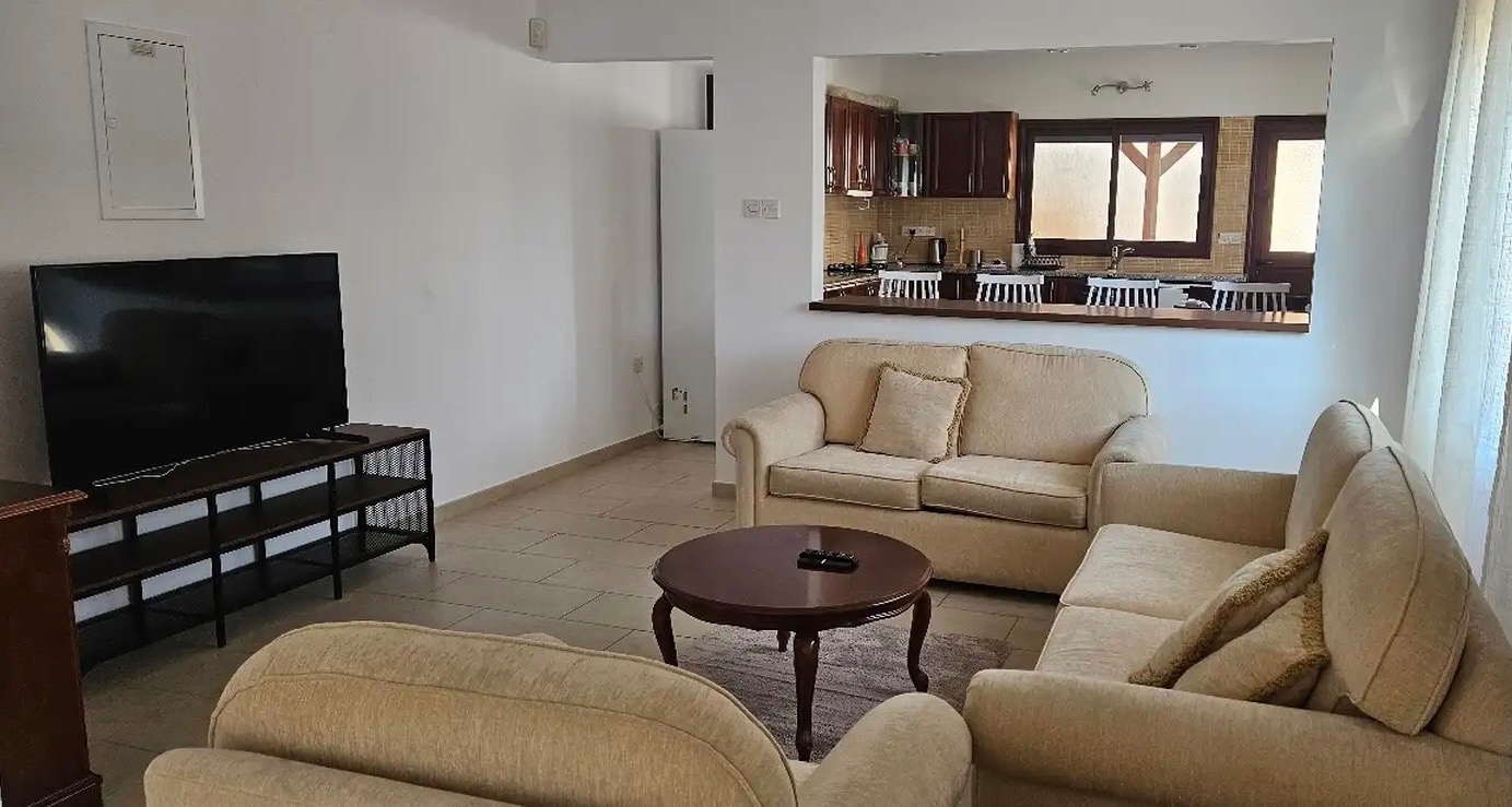 For rent a four-bedroom semi-detached house of 150 m2 on a plot of 185 m2 in the area of Palodeia, Limassol. The house includes four bedrooms, two bathrooms, three toilets, a large living room with modern finishes, an open-plan kitchen with a counter for 4 people, a balcony, a pantry and additional living areas. One of the bedrooms has its own balcony, and the outside room can be used as an office, clinic, guest room or maid's room. The house is fully furnished and equipped with household appliances: washing machine, oven, microwave, dishwasher, gas stove, new refrigerator, 65" TV, air conditioners in all rooms (including kitchen). New blinds, curtains and modern lighting have been installed, and a fan and ventilation system are provided on the balcony. The plot has a private rear patio, a side garden and a spacious access area that can be used as parking or as a multifunctional space. The house is located next to a supermarket, kindergarten, church and other infrastructure, as well as 5-7 minutes drive from private schools Island, Lighthouse, Pascal and Heritage.