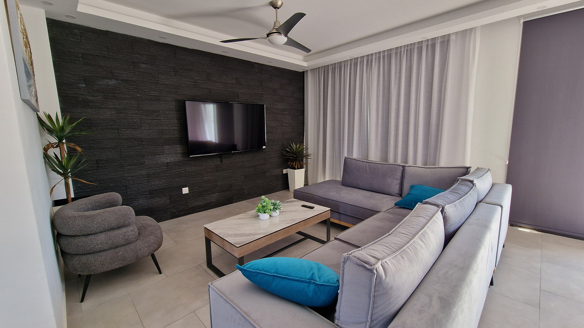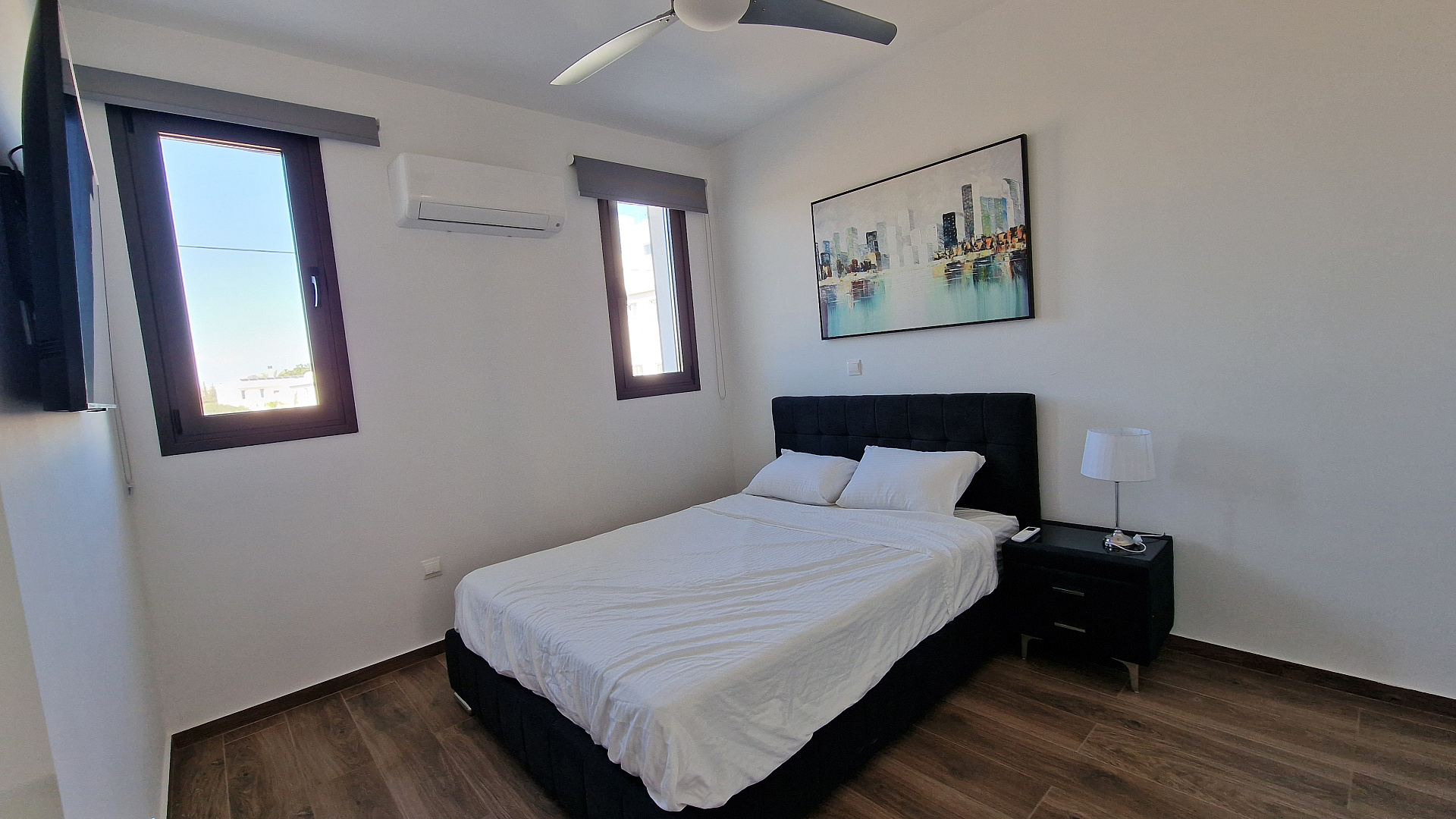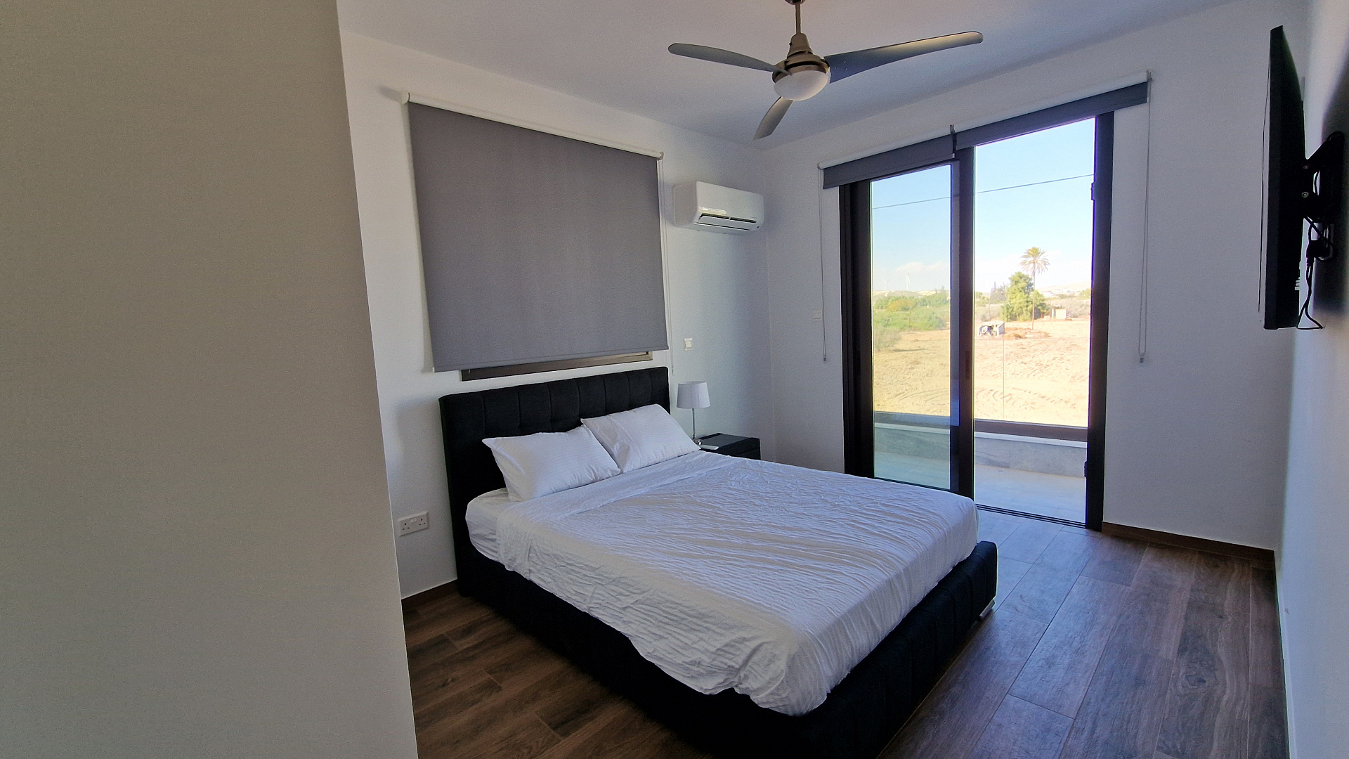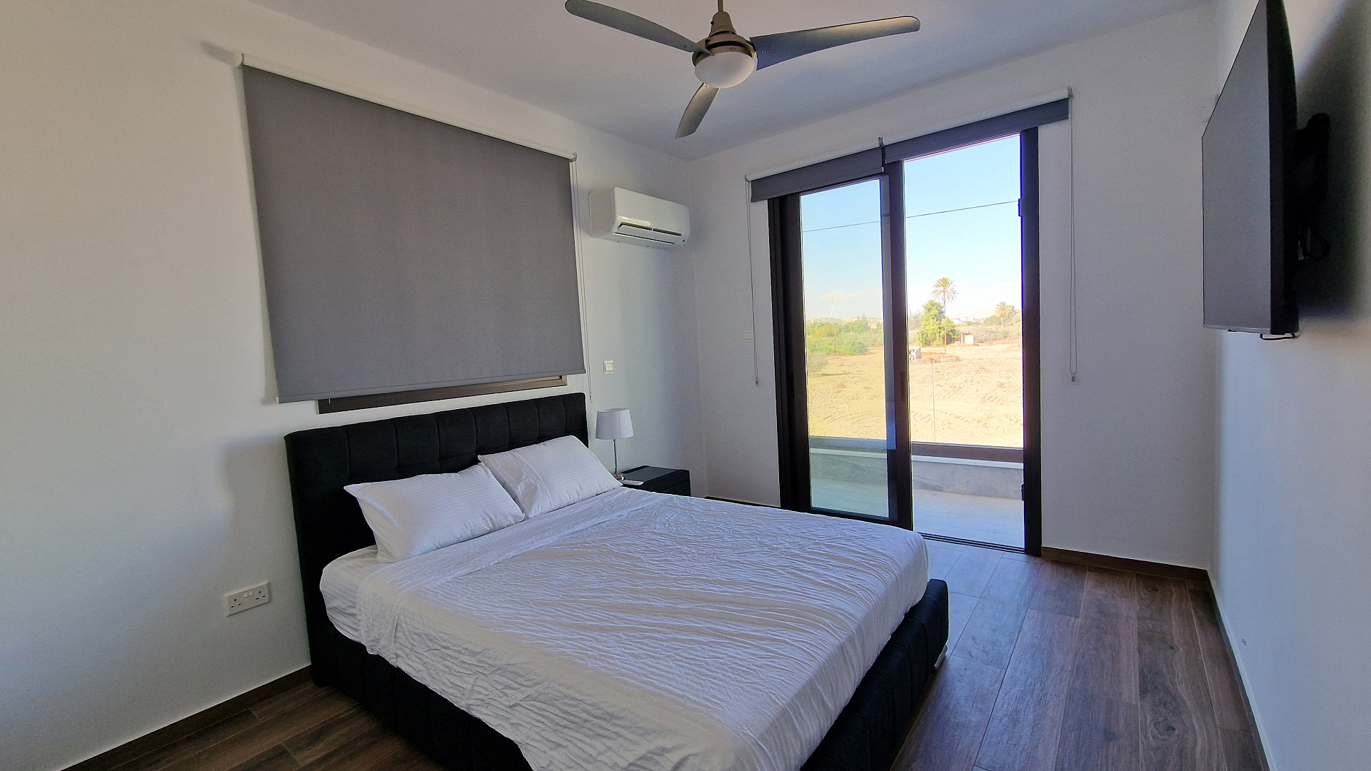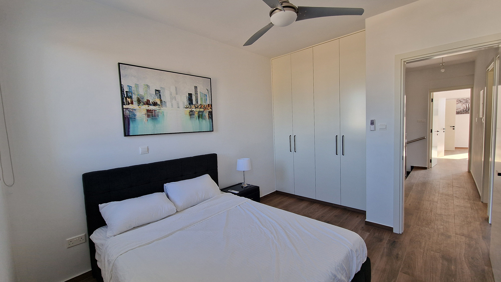 3 bedroom villa with a large swimming pool for rent in Livadia, Larnaca. The villa includes 3 bedrooms, 1 studio for an au pair (1 bedroom, study, kitchen, full appliances), 3 bathrooms, 1 additional bathroom in the studio, a spacious living room, a covered balcony on the ground floor with a barbecue area, a large garden (432 m2). The kitchen is fully equipped with all appliances. The house is minimally furnished, there are air conditioners in all rooms, TVs. A covered parking space is available for cars. The villa is located in the village of Livadia, within walking distance of all amenities.