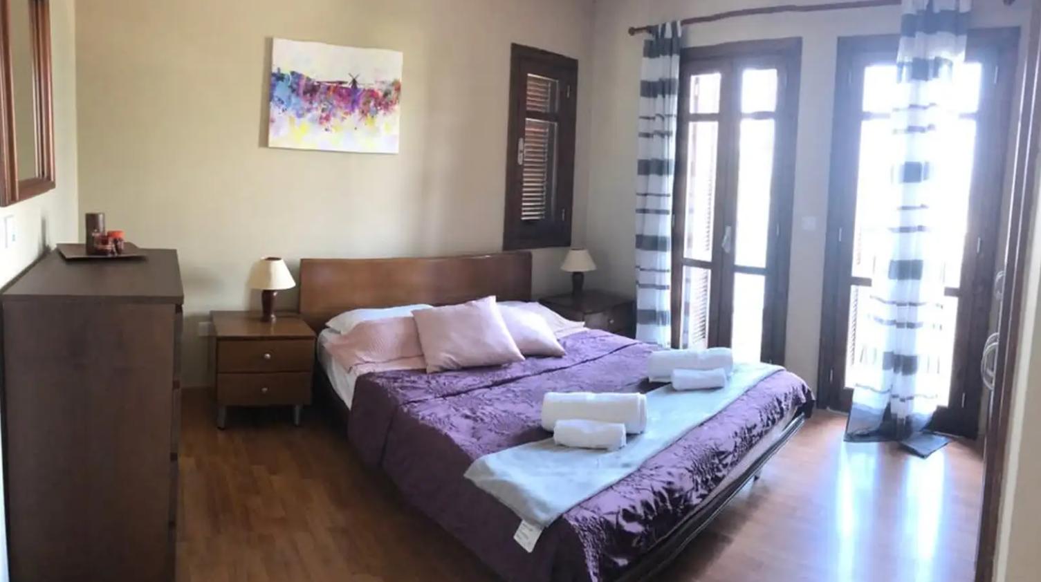 One-bedroom apartment for rent in Kouklia Paphos area with a total area of 79 m2, located on the ground floor and fully furnished. The apartments are fully air-conditioned in all areas, include one bathroom and a fully equipped kitchen, as well as two balconies with beautiful mountain views and a communal swimming pool. The property offers access to well-maintained communal gardens and an outdoor parking space. Year of construction 2012, energy efficiency class B.