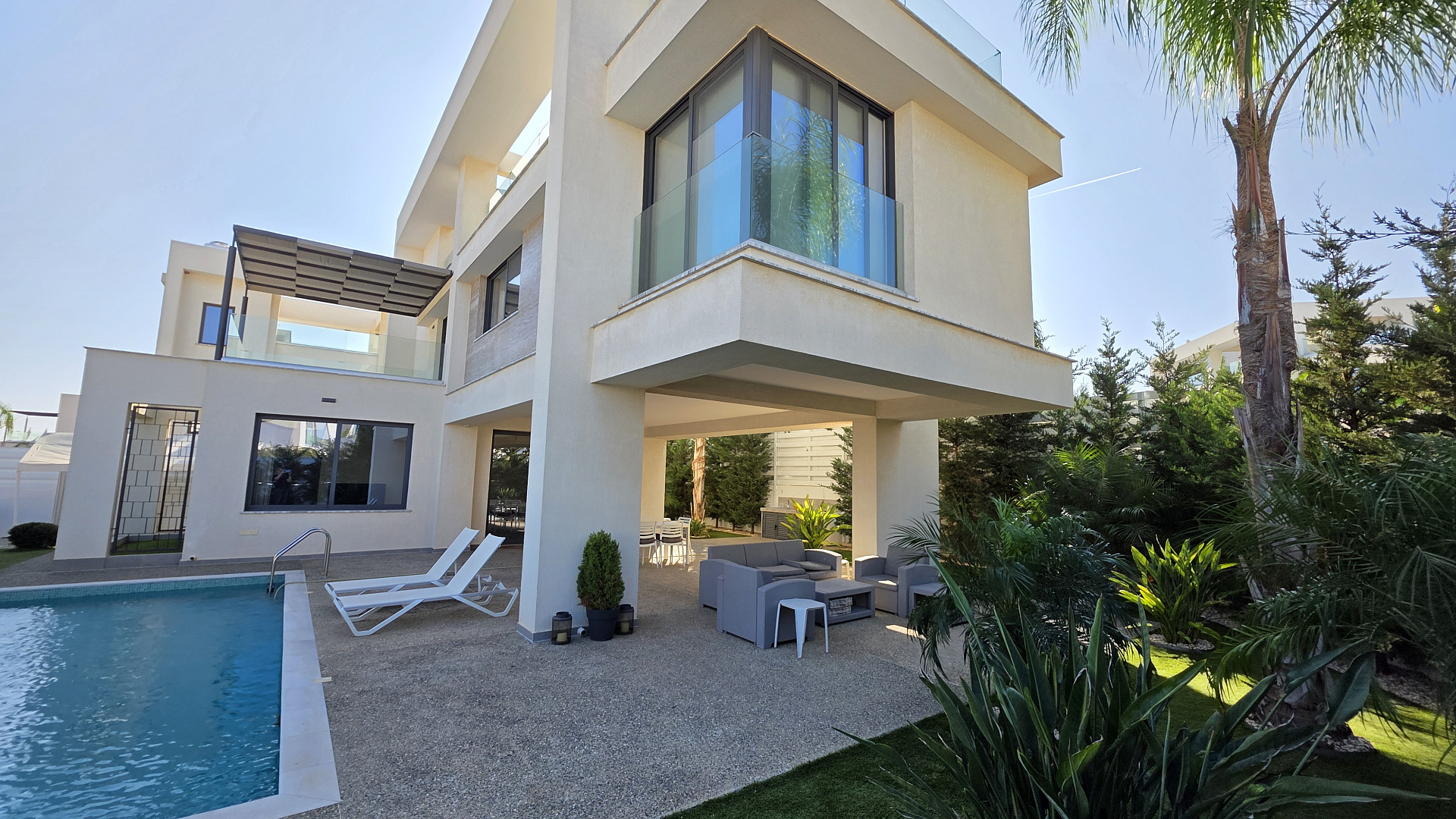 A three-bedroom villa for rent in the Pernera Protaras area with a well-maintained plot, landscaping and a private swimming pool. Inside there is a spacious living room with panoramic windows, a fully equipped kitchen and three elegant bedrooms with high-quality finishes. The villa provides a high level of privacy and comfort, and the beaches, marina, restaurants and premium infrastructure are just a few minutes away.