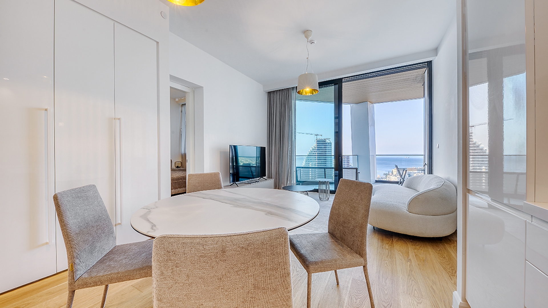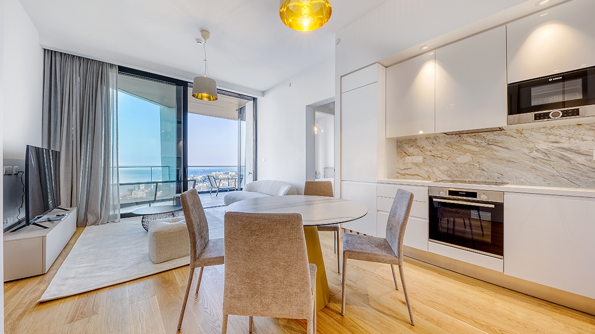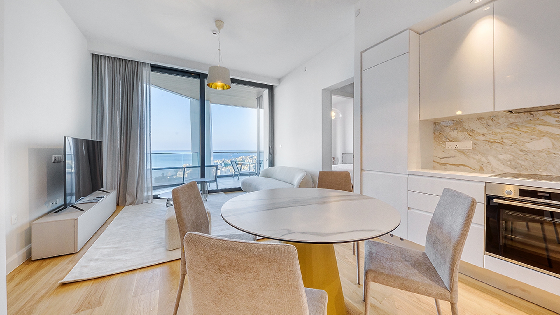 Two-bedroom apartment of 74 m2 for rent in Potamos Germasogeias, Limassol. The apartment includes 2 bedrooms and 2 bathrooms, as well as a covered veranda of 17 m2. The apartment is located on the 18th floor. There is 1 parking space on the territory of the complex. The residence is located in an upscale project that offers residents concierge service, a SPA area, an outdoor swimming pool, an indoor heated pool, a gym, a tennis court, green areas and underground parking. The building has energy efficiency of class A+ and a ceiling height of 3.15 m. The complex is located just 300 m from the sea, in the sought-after tourist area of Limassol, close to sandy beaches, shops and restaurants.