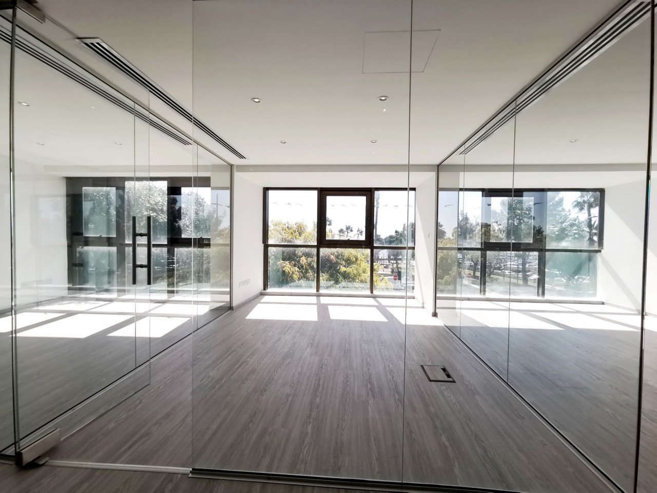Commercial premises for rent in Limassol Marina area in Limassol with an area of 125 m2, with one toilet room, built in 2023. The office is located on the first line of the sea overlooking the sea, within walking distance of all amenities — restaurants, cafes, shops and bus stops. Modern glass partitions are installed inside, a structured cabling system is installed, a fully equipped kitchen, air conditioners, an alarm system and access control.