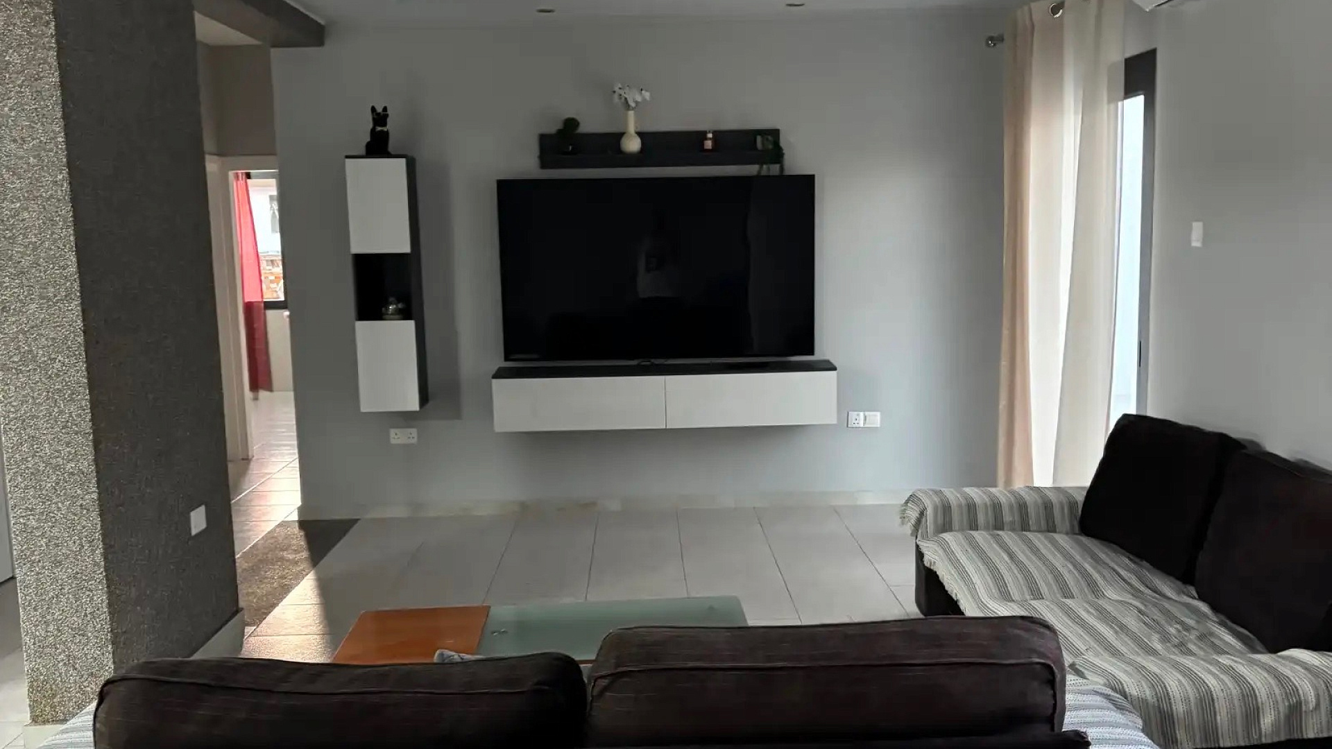 For rent a three-bedroom house with an area of 140 m2 on a plot of 140 m2 in the area of Parekklisia, Limassol. The house includes three bedrooms, two bathrooms, a kitchen, a living room and a pantry. The property is fully furnished and equipped with household appliances, including air conditioning in all rooms. The house is located in a quiet residential area with easy access to Limassol's infrastructure; it has a garden and outdoor parking.