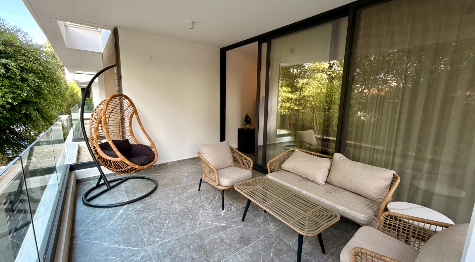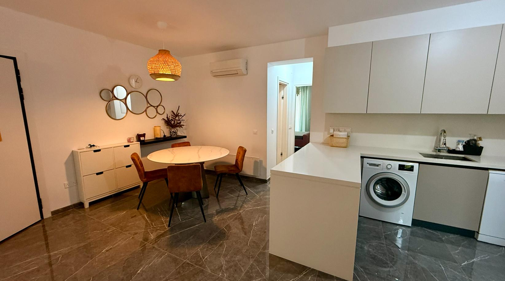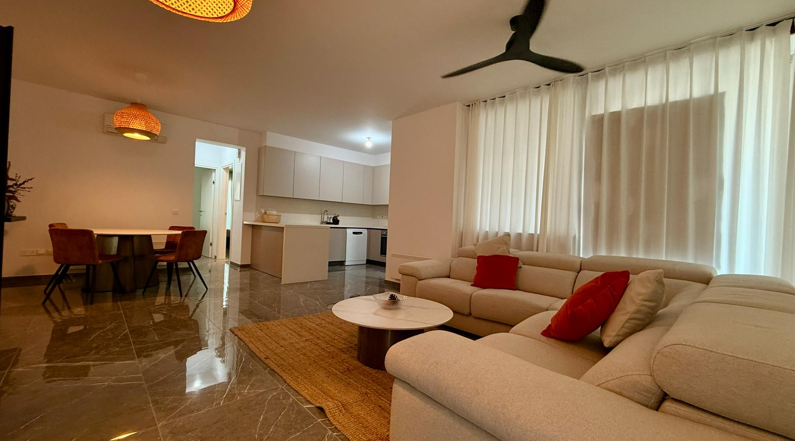 Double apartment for rent in Agios Nektarios Limassol with an area of 88 m2, located on the ground floor of a modern building built in 2024 with energy efficiency class A. The apartment is fully furnished and includes a living room combined with a modern kitchen, two bedrooms, each with its own bathroom, as well as an additional guest bathroom. There are large verandas. The apartment has air conditioning in all rooms, a fireplace, a balcony, a storage room, an alarm system. The building has an elevator, as well as a covered parking and a communal garden. The location is within walking distance of shops, pharmacies, schools.