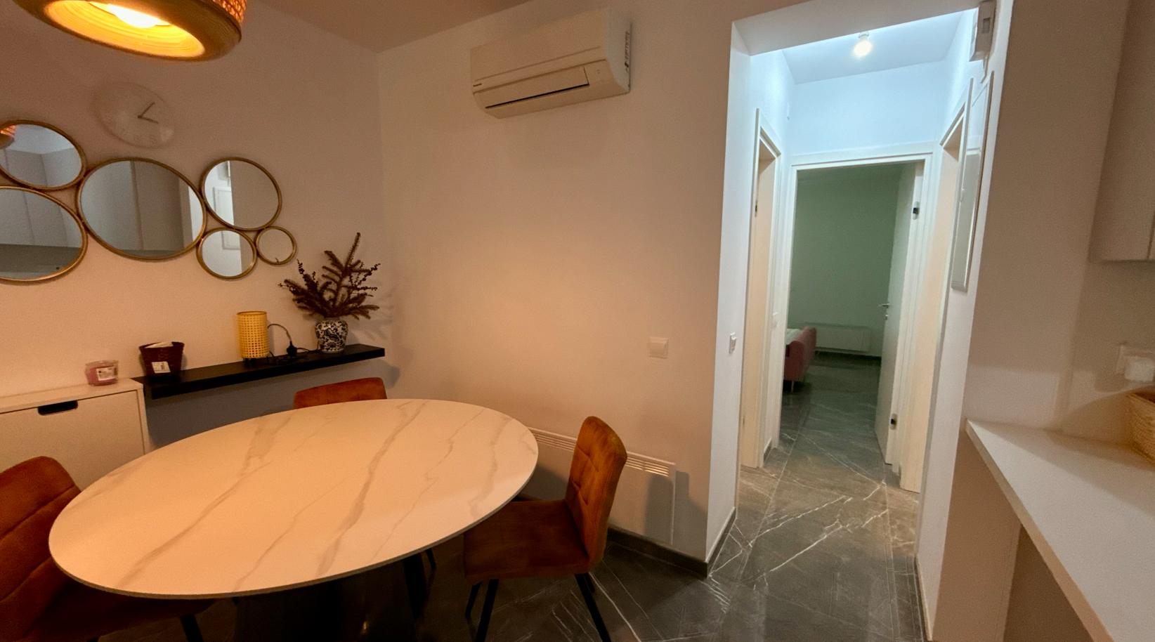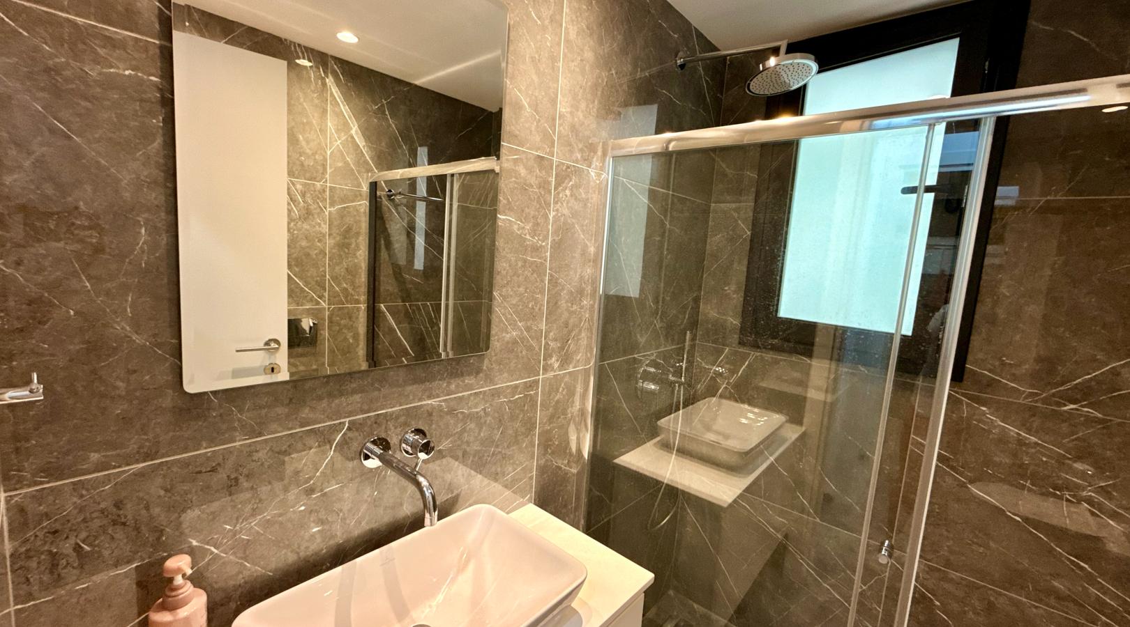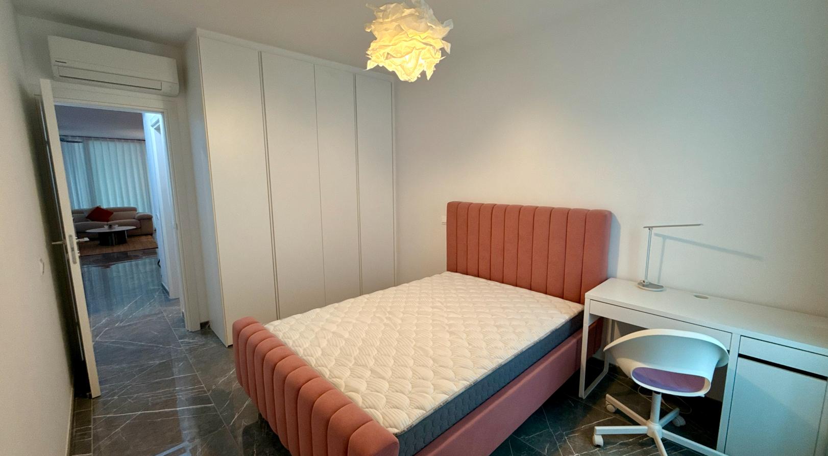 Double apartment for rent in Agios Nektarios Limassol with an area of 88 m2, located on the ground floor of a modern building built in 2024 with energy efficiency class A. The apartment is fully furnished and includes a living room combined with a modern kitchen, two bedrooms, each with its own bathroom, as well as an additional guest bathroom. There are large verandas. The apartment has air conditioning in all rooms, a fireplace, a balcony, a storage room, an alarm system. The building has an elevator, as well as a covered parking and a communal garden. The location is within walking distance of shops, pharmacies, schools.