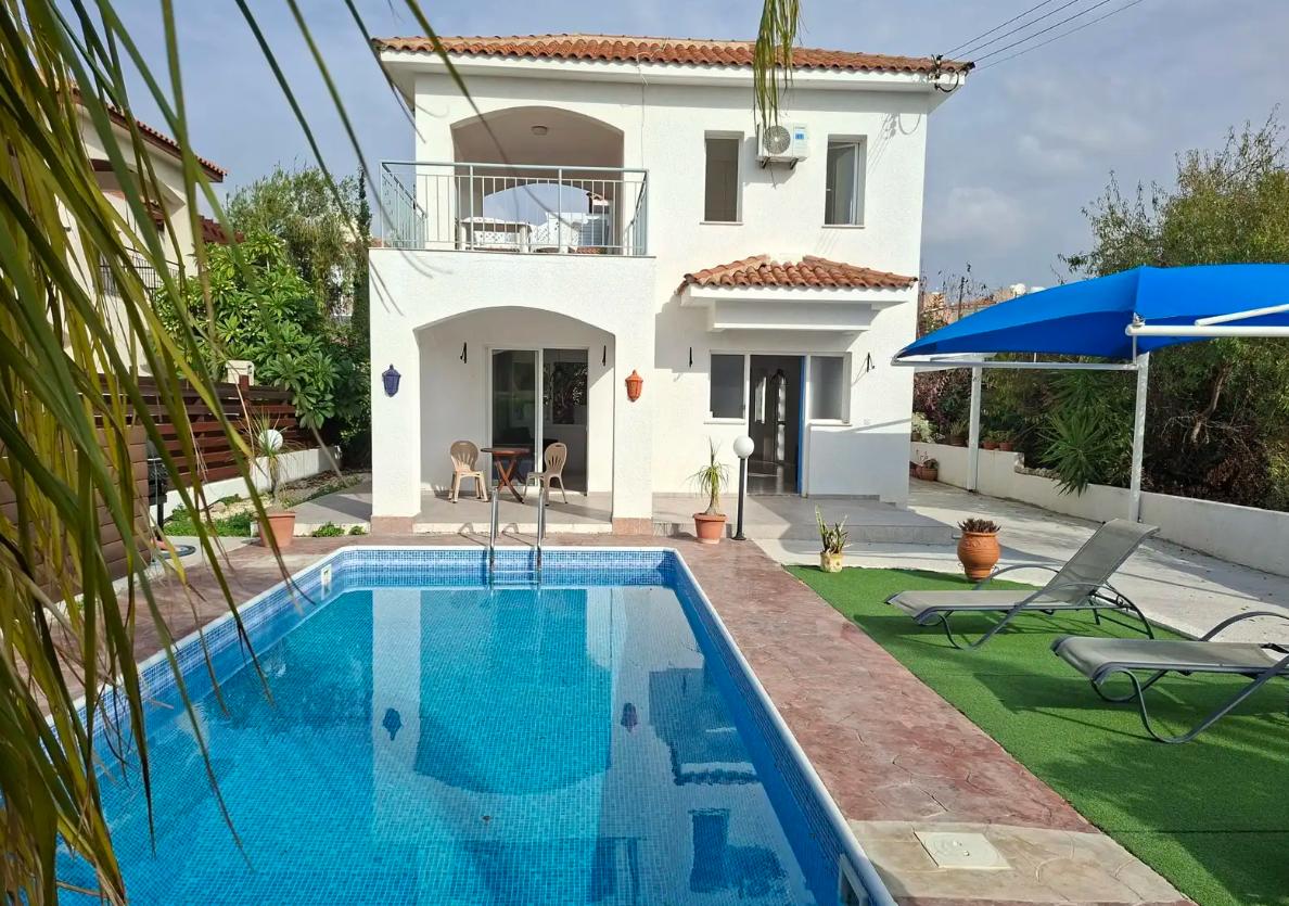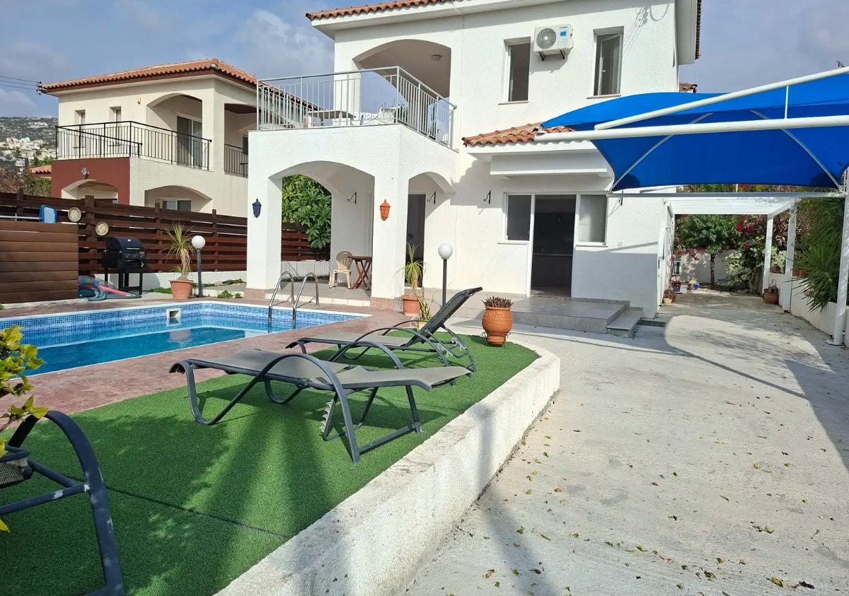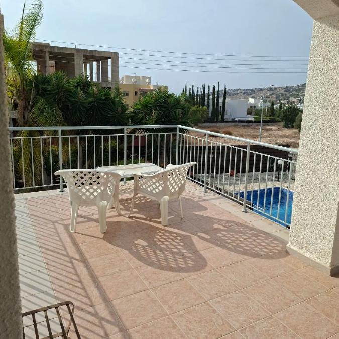 Three—bedroom villa for rent in Pegeia Paphos is a spacious furnished villa of 160 m2 on a plot of 430 m2, built in 2009 and equipped with air conditioning in all rooms. The villa has three bedrooms and two bathrooms, has a private swimming pool, a well-kept garden, a balcony and a covered parking, pets are allowed.