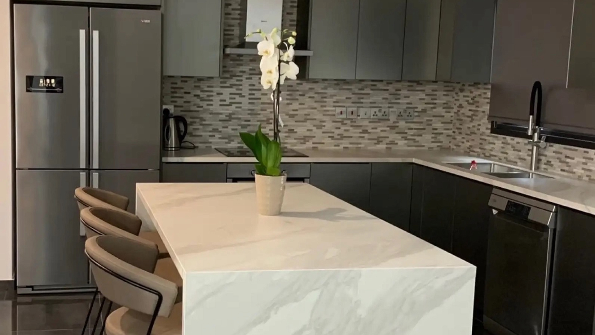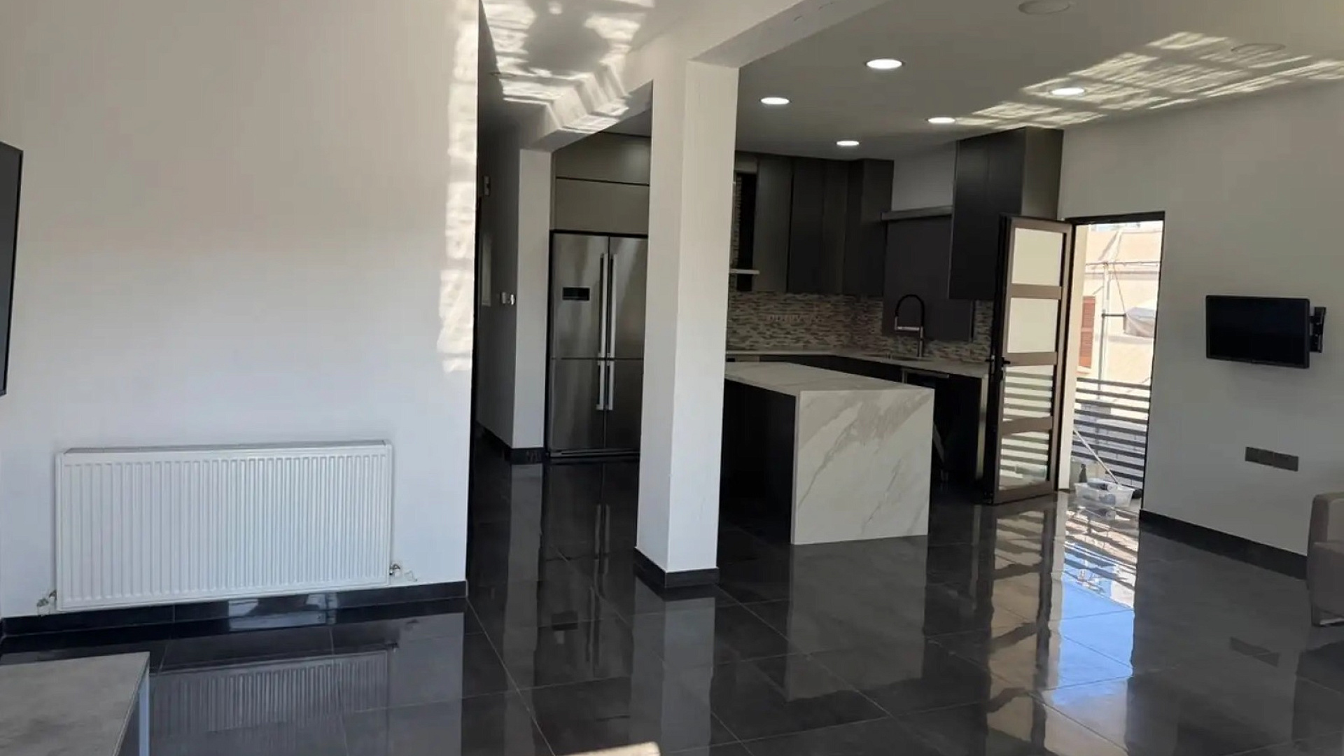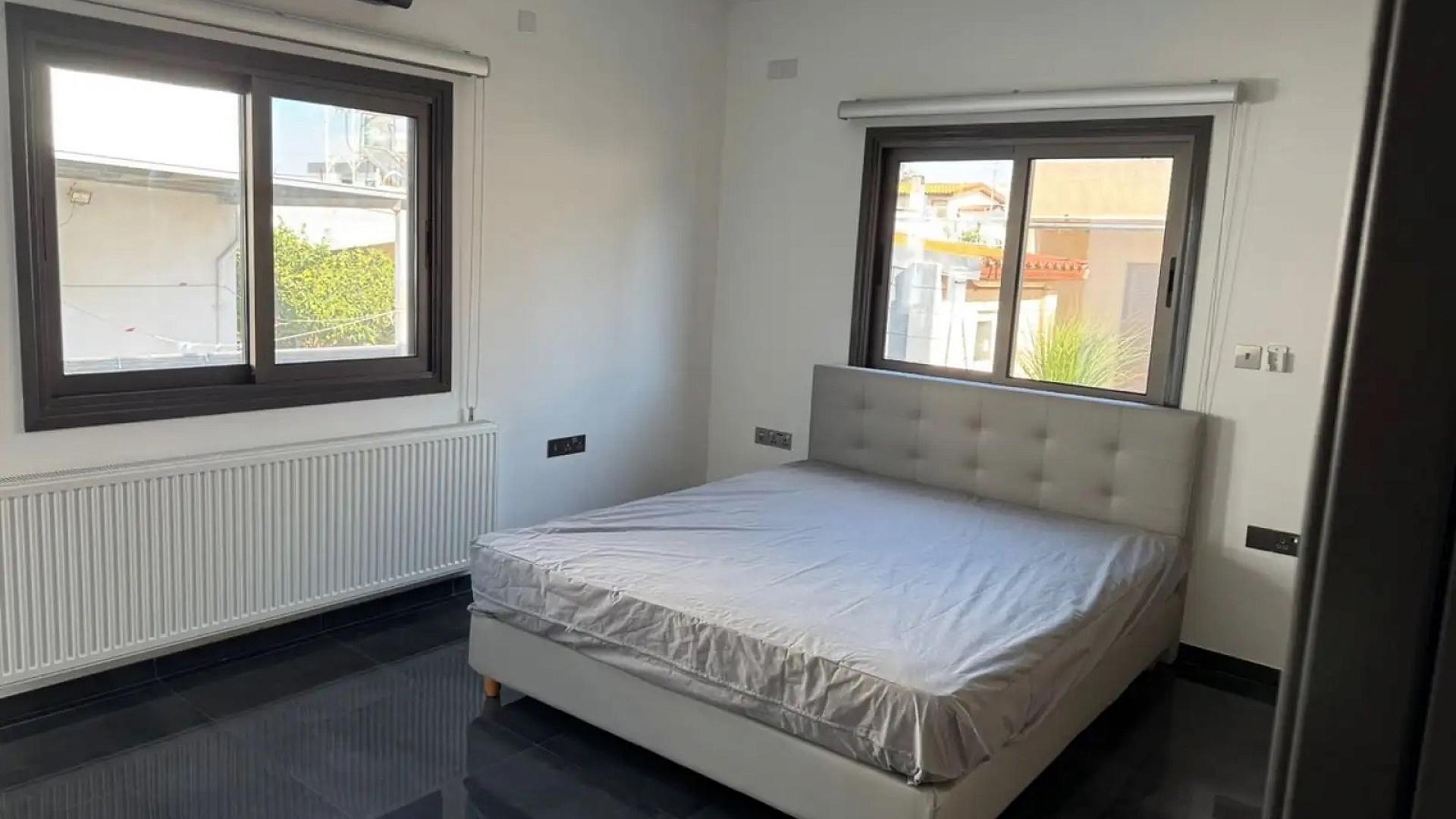 Four-bedroom house of 205 m2 for rent in Lakatameia, Nicosia. The house includes four bedrooms, three bathrooms, two fully equipped kitchens, a living room, a balcony, a pantry, a separate office, a laundry room with a washing machine and a place to install a dryer, as well as separate maid's quarters with their own entrance, kitchen and bathroom. The property is partially furnished: there is a modern sofa, a coffee table, a 170×200 bed, a work desk with a chair, an outdoor table and six chairs, as well as a 55" TV. The house has five air conditioners, diesel central heating and modern household appliances. Parking spaces are provided, one of which is covered. The residence is located in the peaceful Lakatameia area with easy access to schools, supermarkets and motorway access.