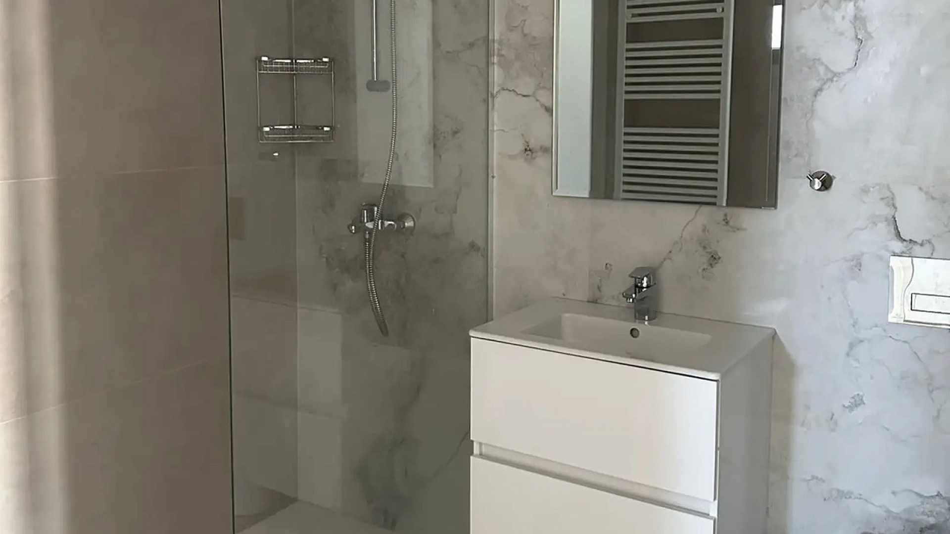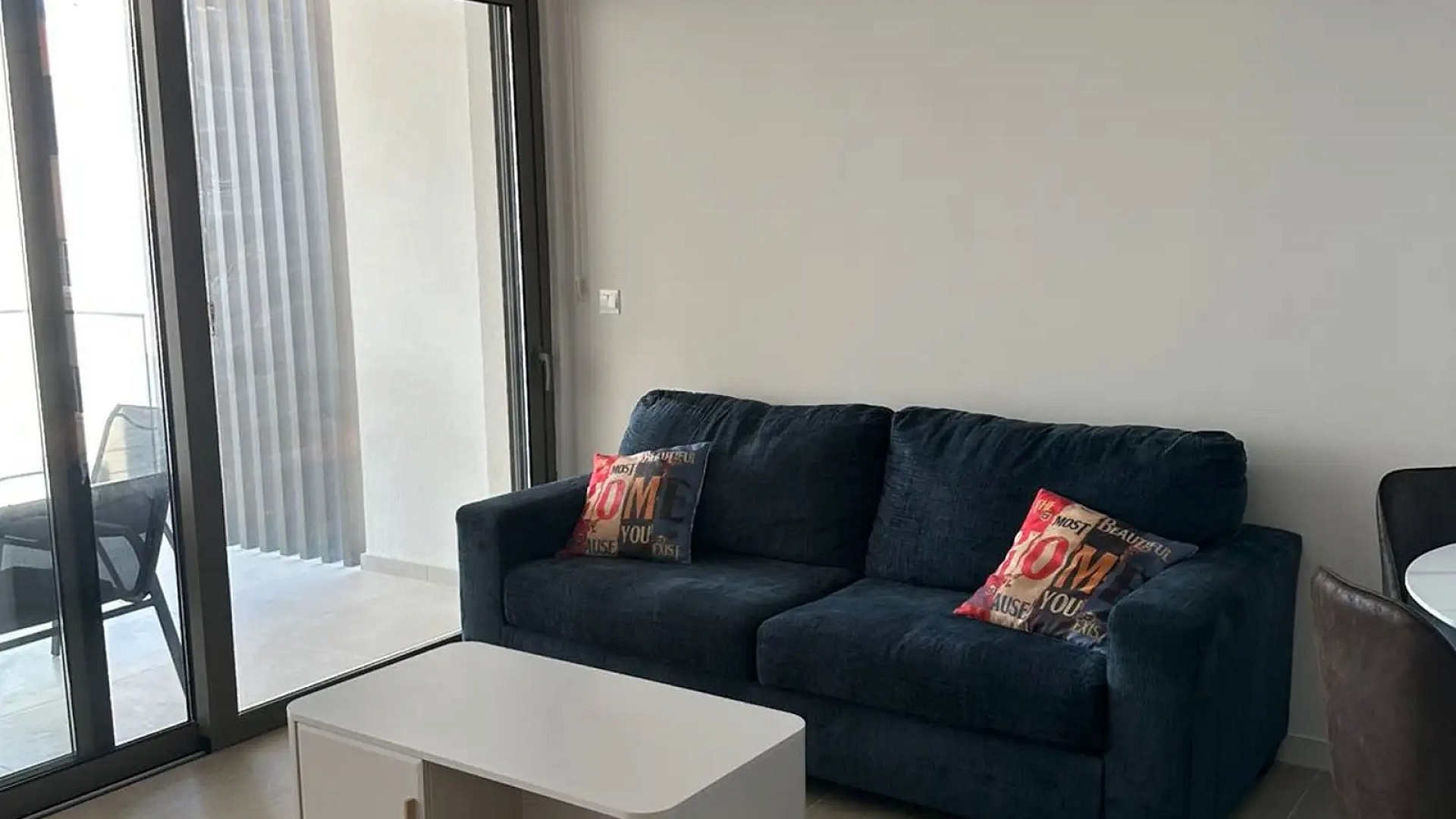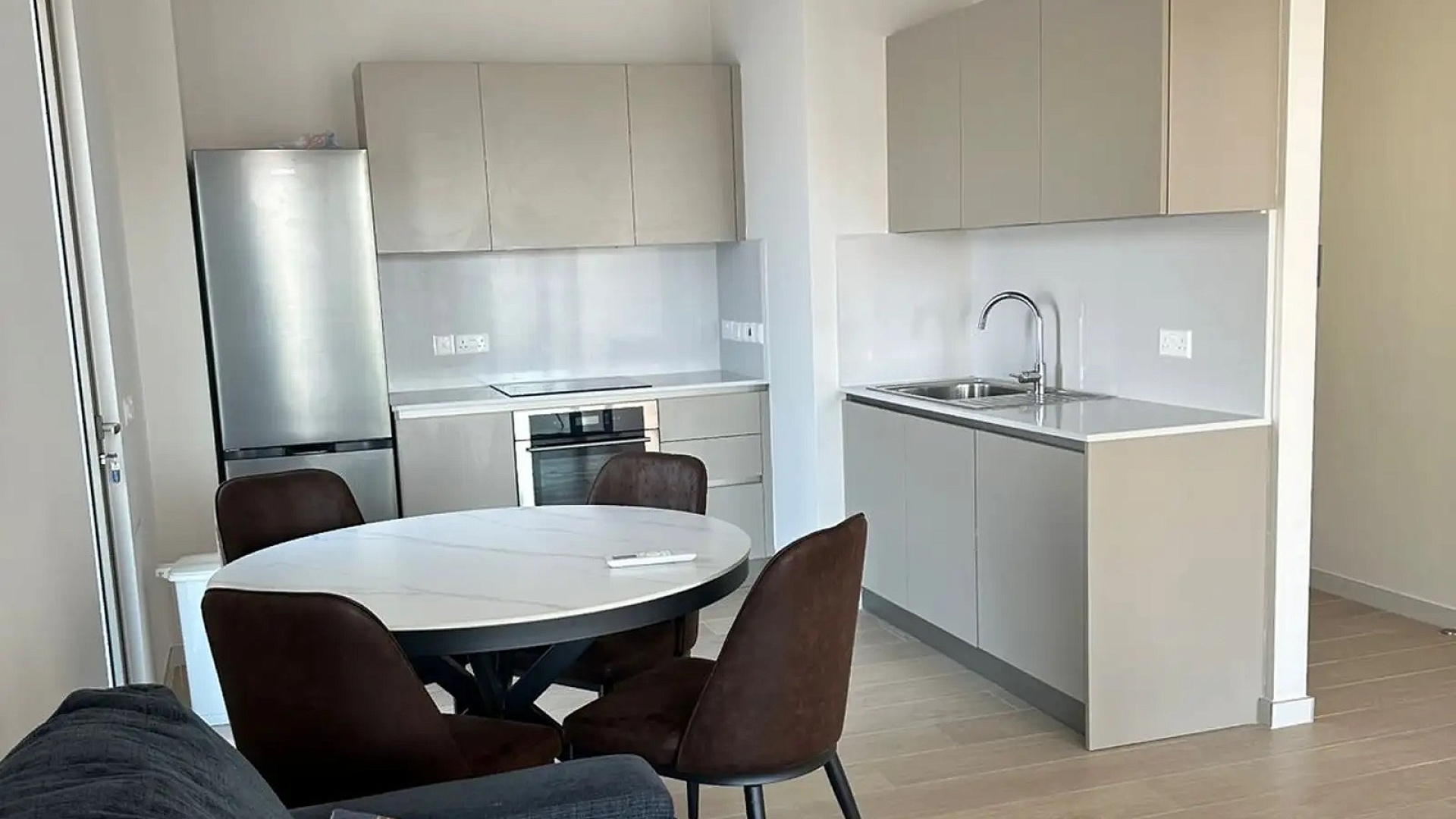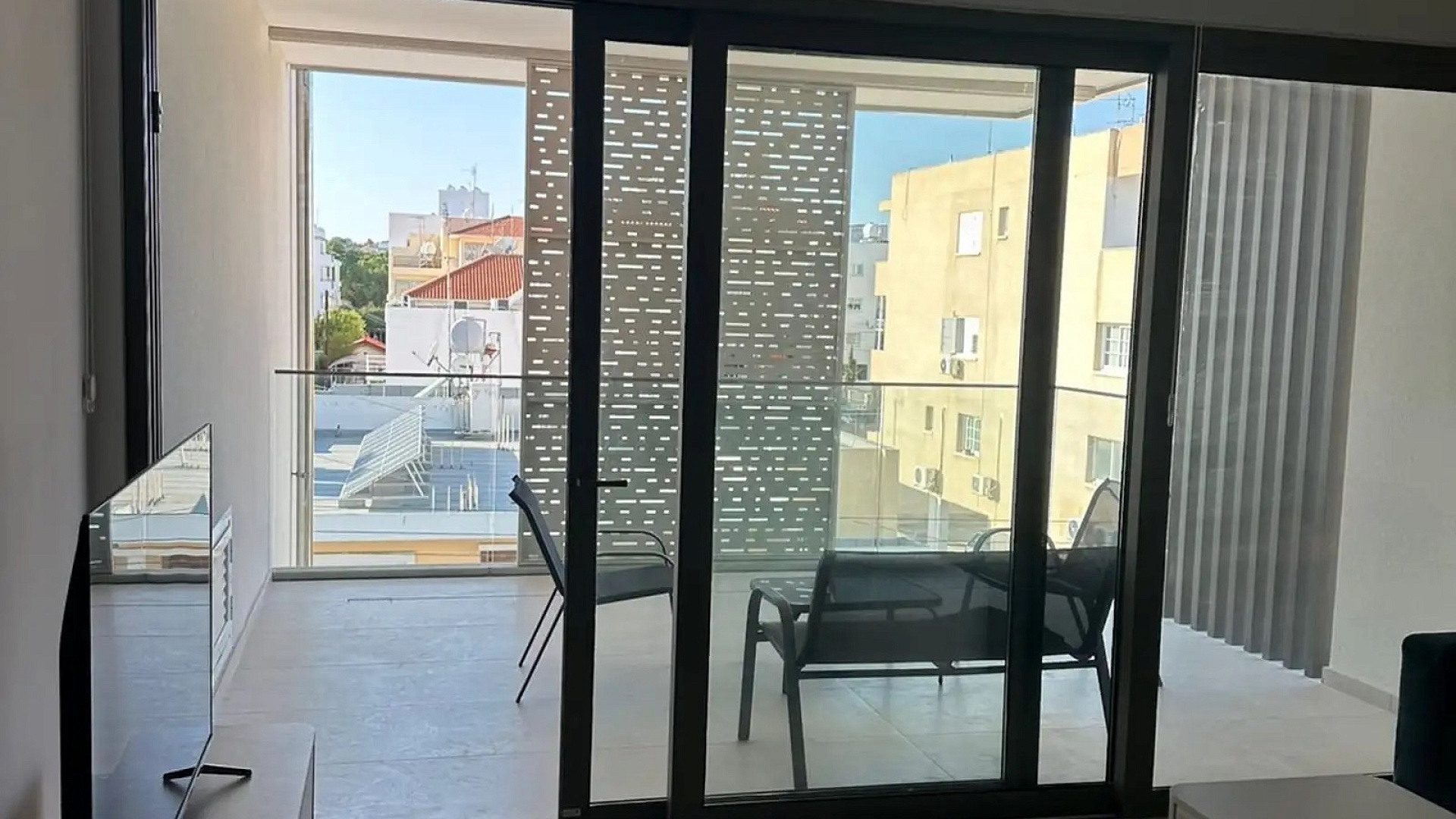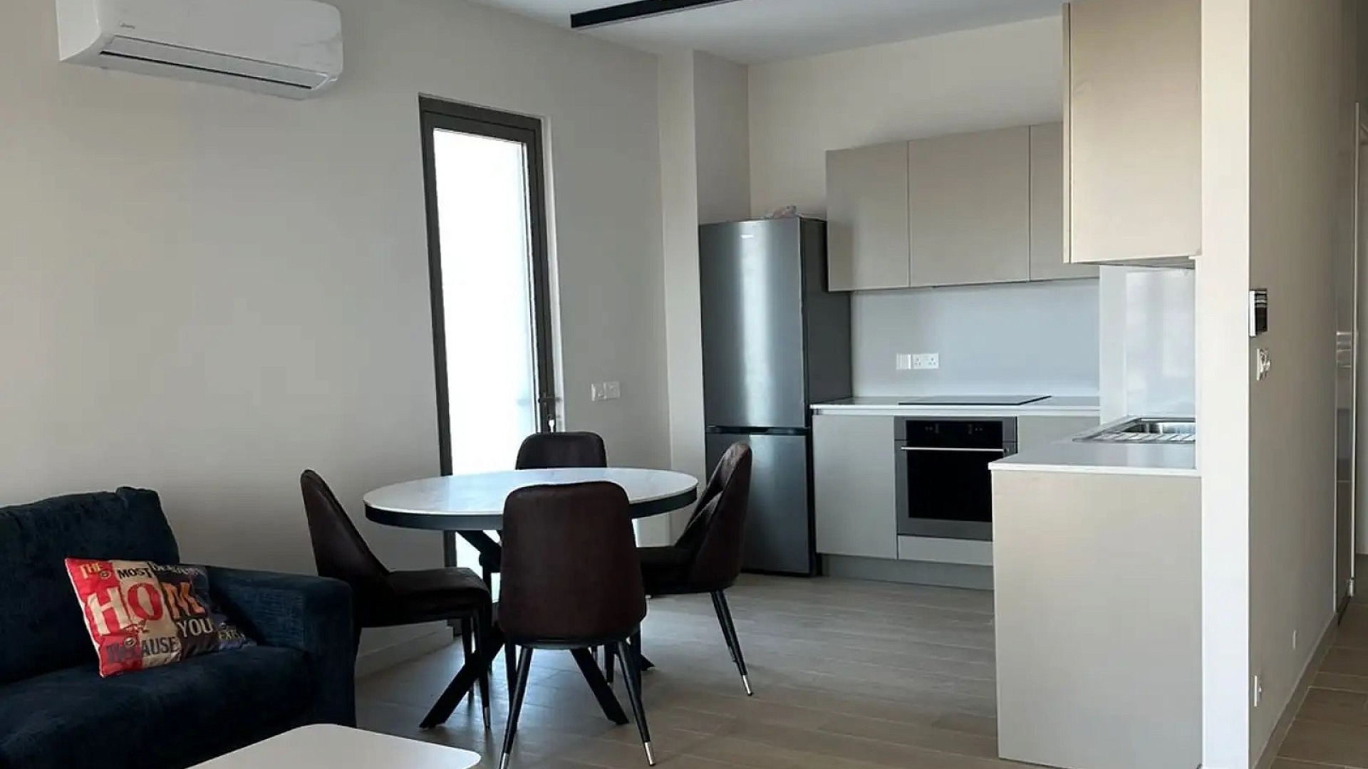 Two-bedroom apartment of 100 m2 for rent in Egkomi, Nicosia. The apartment has two bedrooms, two bathrooms, including an en-suite, an open kitchen combined with a living and dining room, as well as a spacious covered veranda and a storage room. The apartment is located on the 2nd floor. The apartments are fully furnished and equipped with a full air conditioning system, alarm system. The accommodation is located close to UNIC and The Mall of Egkomi, which provides quick access to educational and shopping facilities.